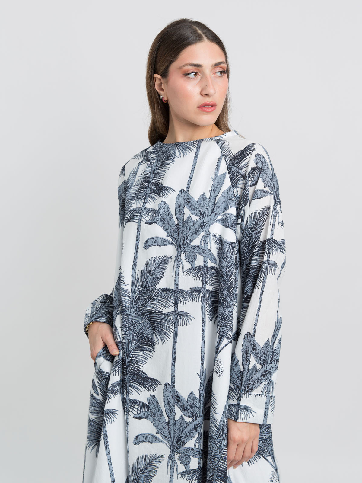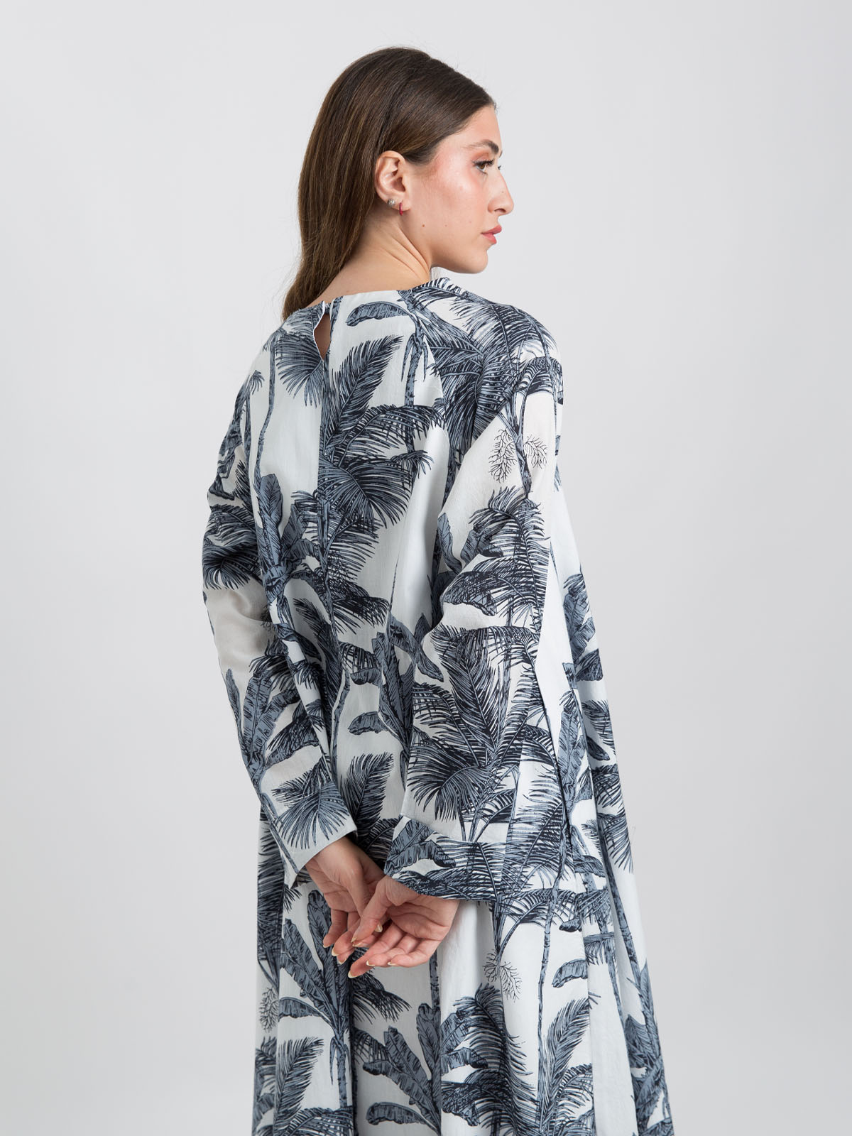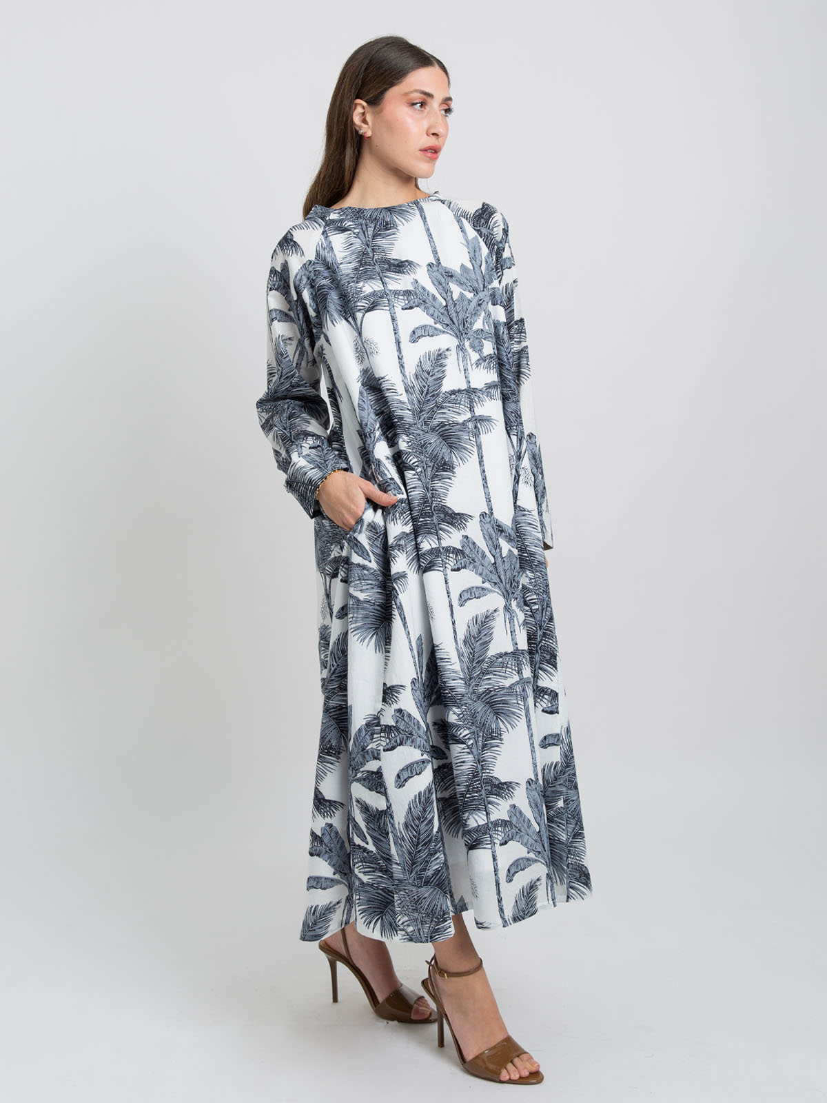 Half Cloche Long Sleeves Jalabiya Ankle Length in Printed Cotton Fabric