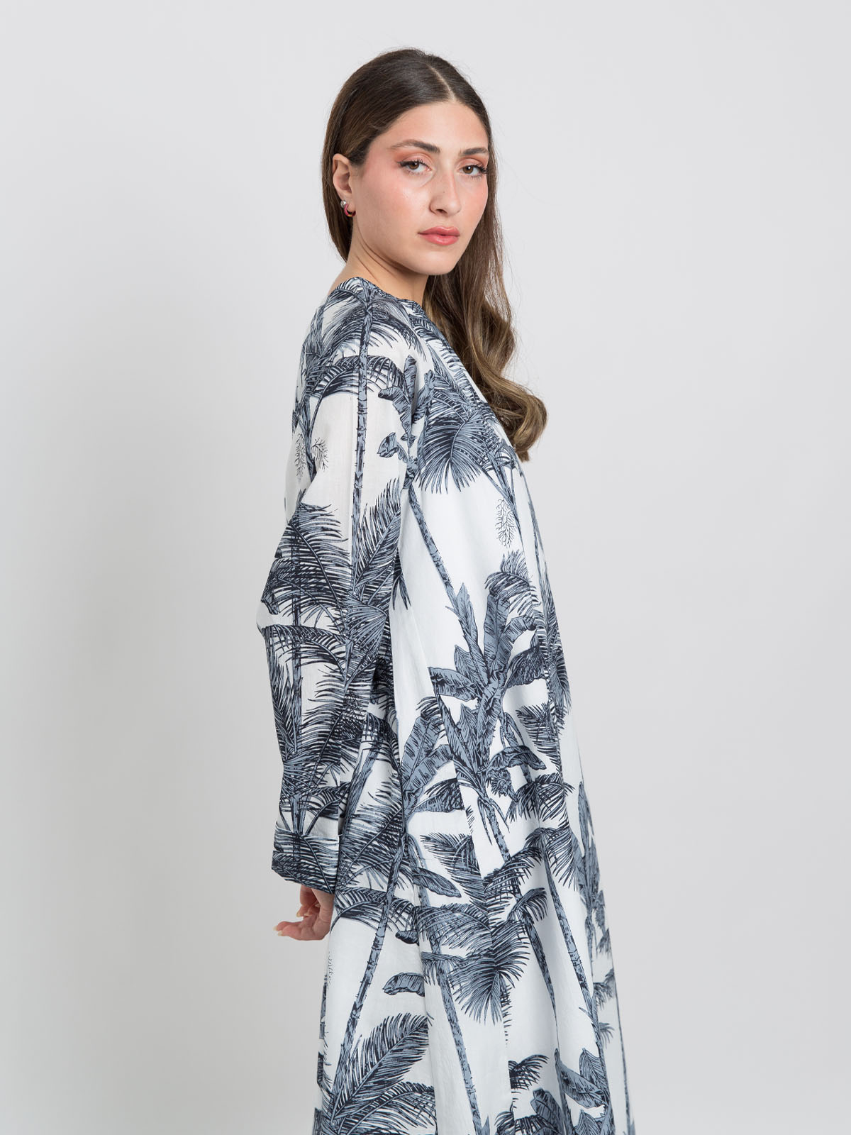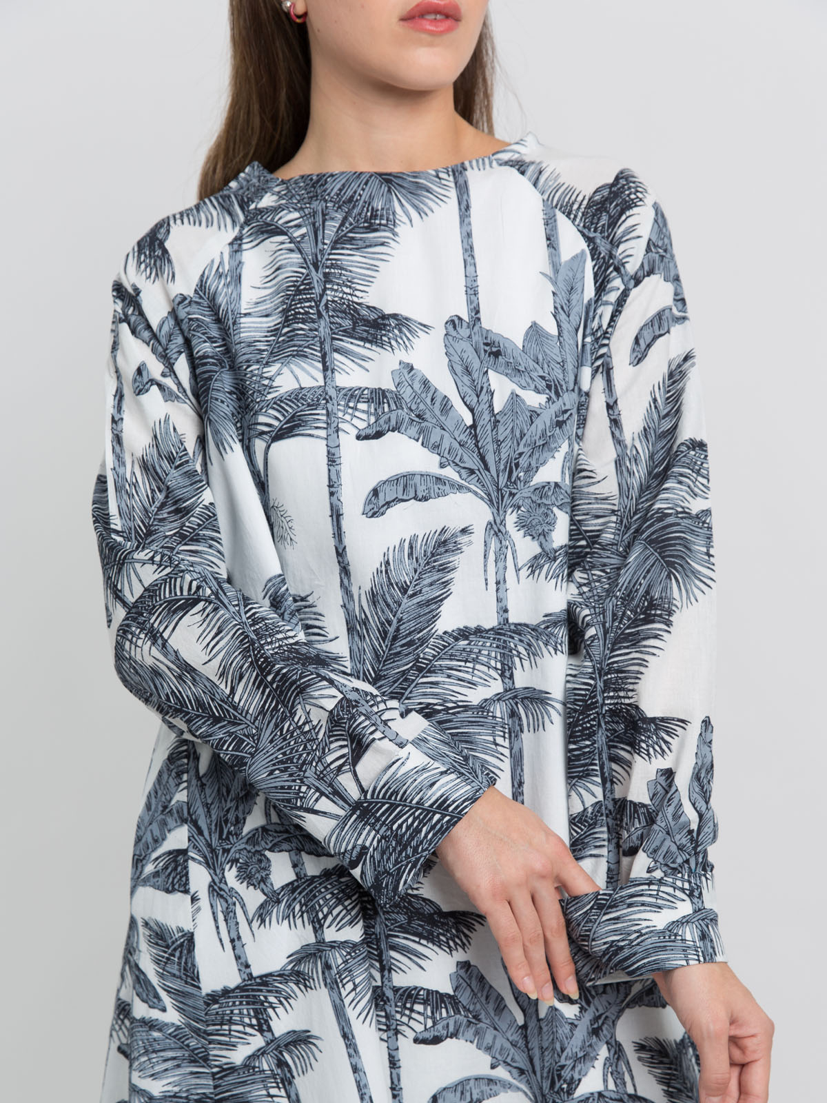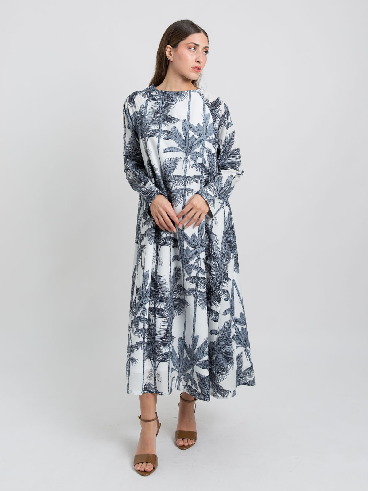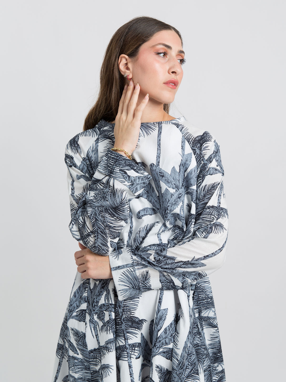 Half Cloche Long Sleeves Jalabiya Ankle Length in Printed Cotton Fabric