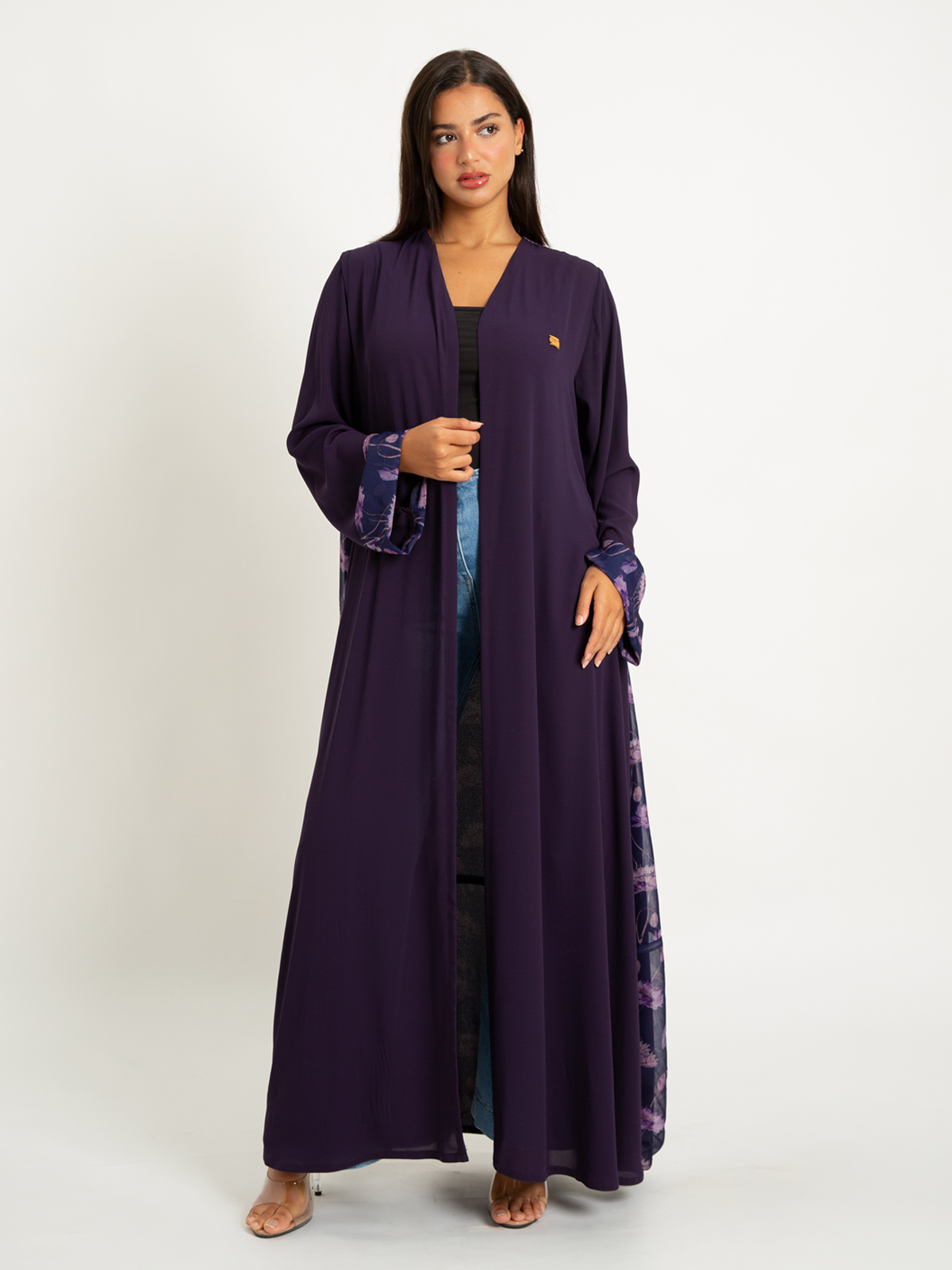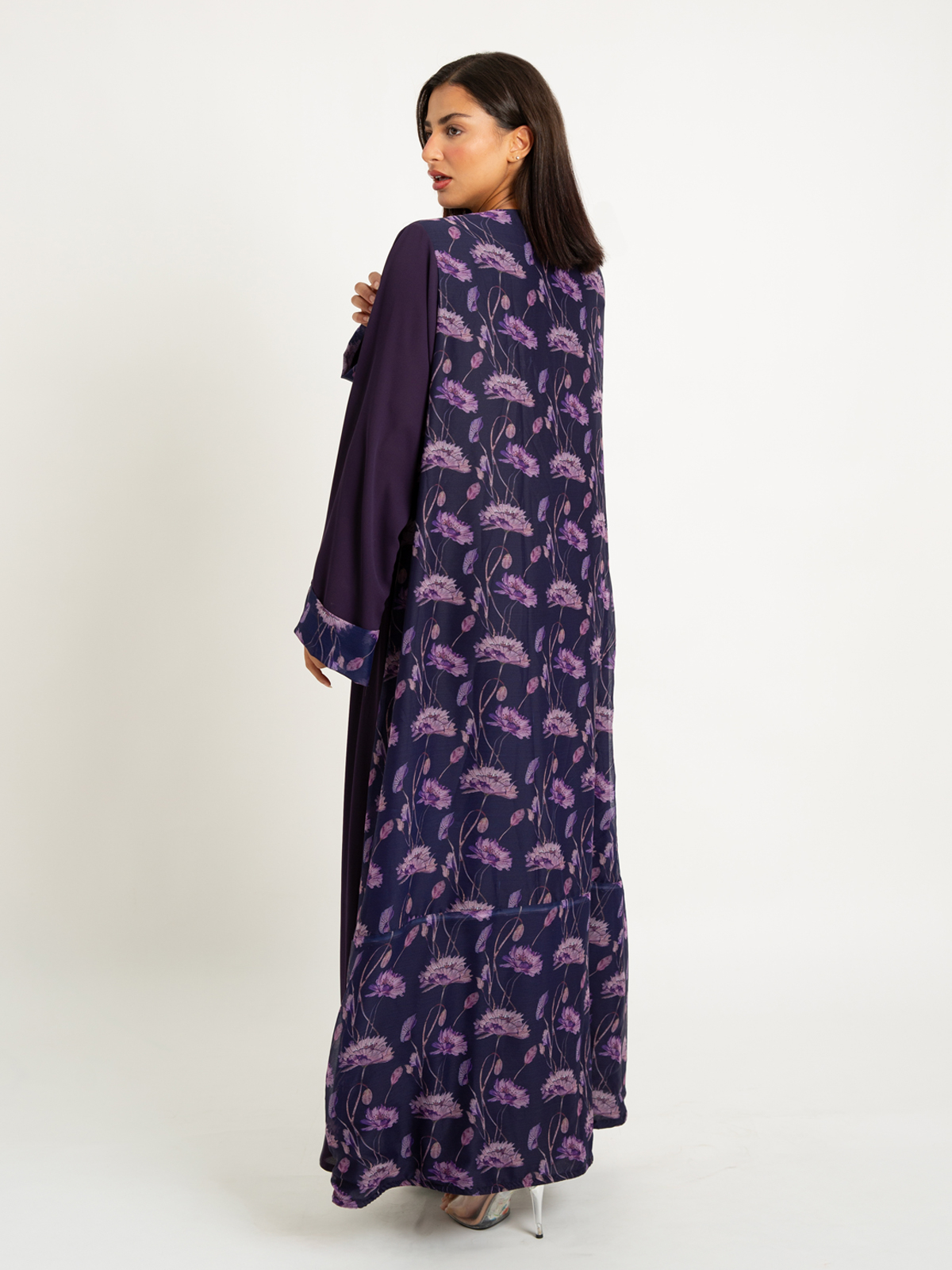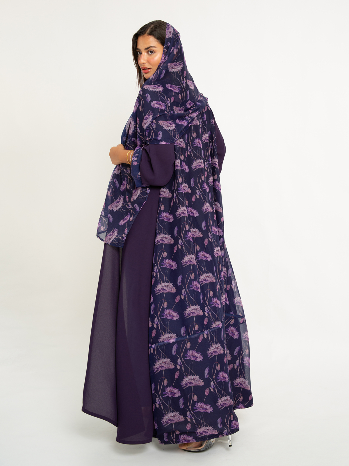 Half Cloche A-Cut Long Open Abaya in Printed Cotton Fabric