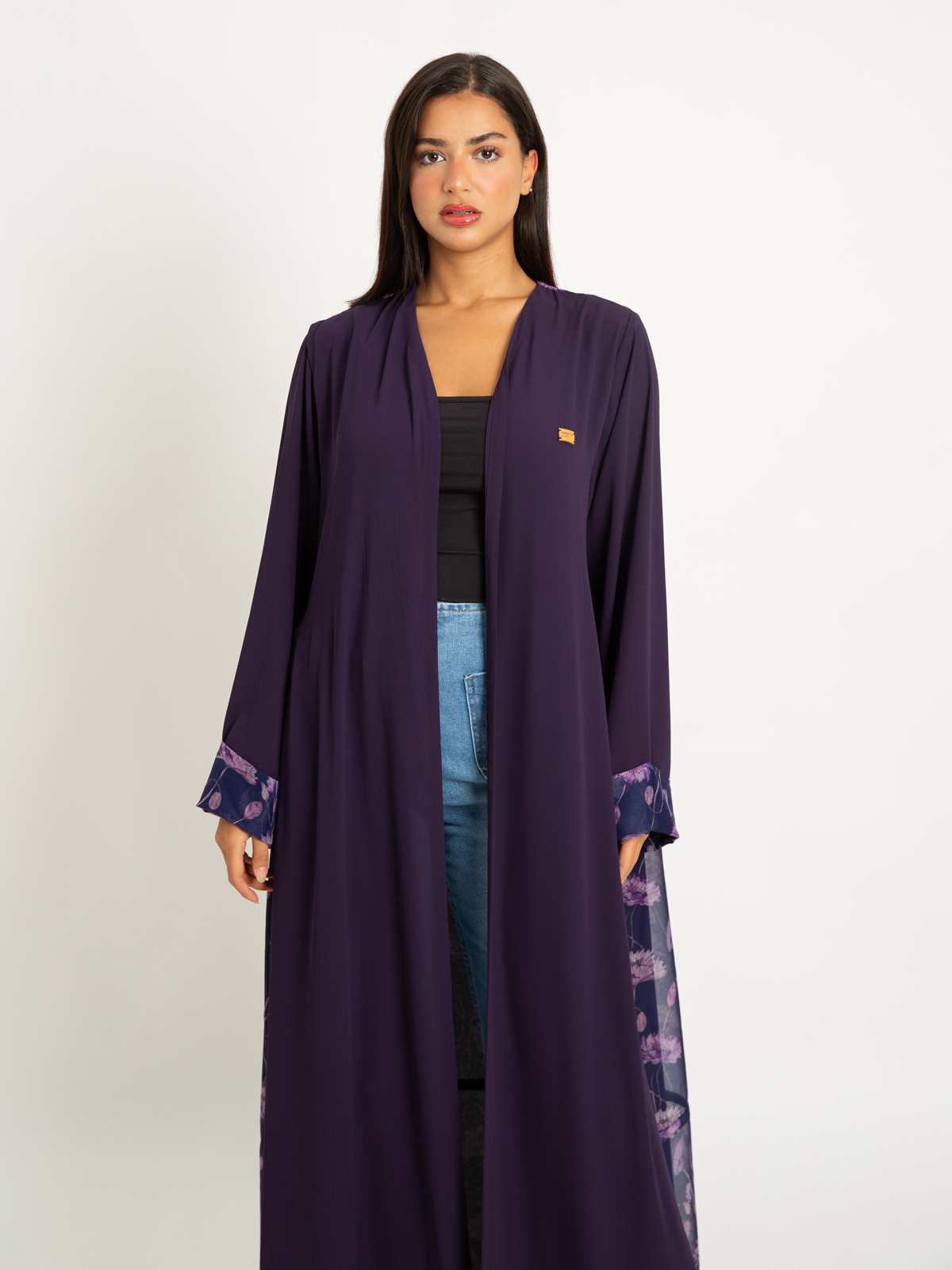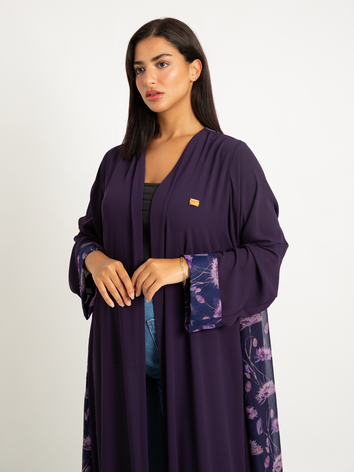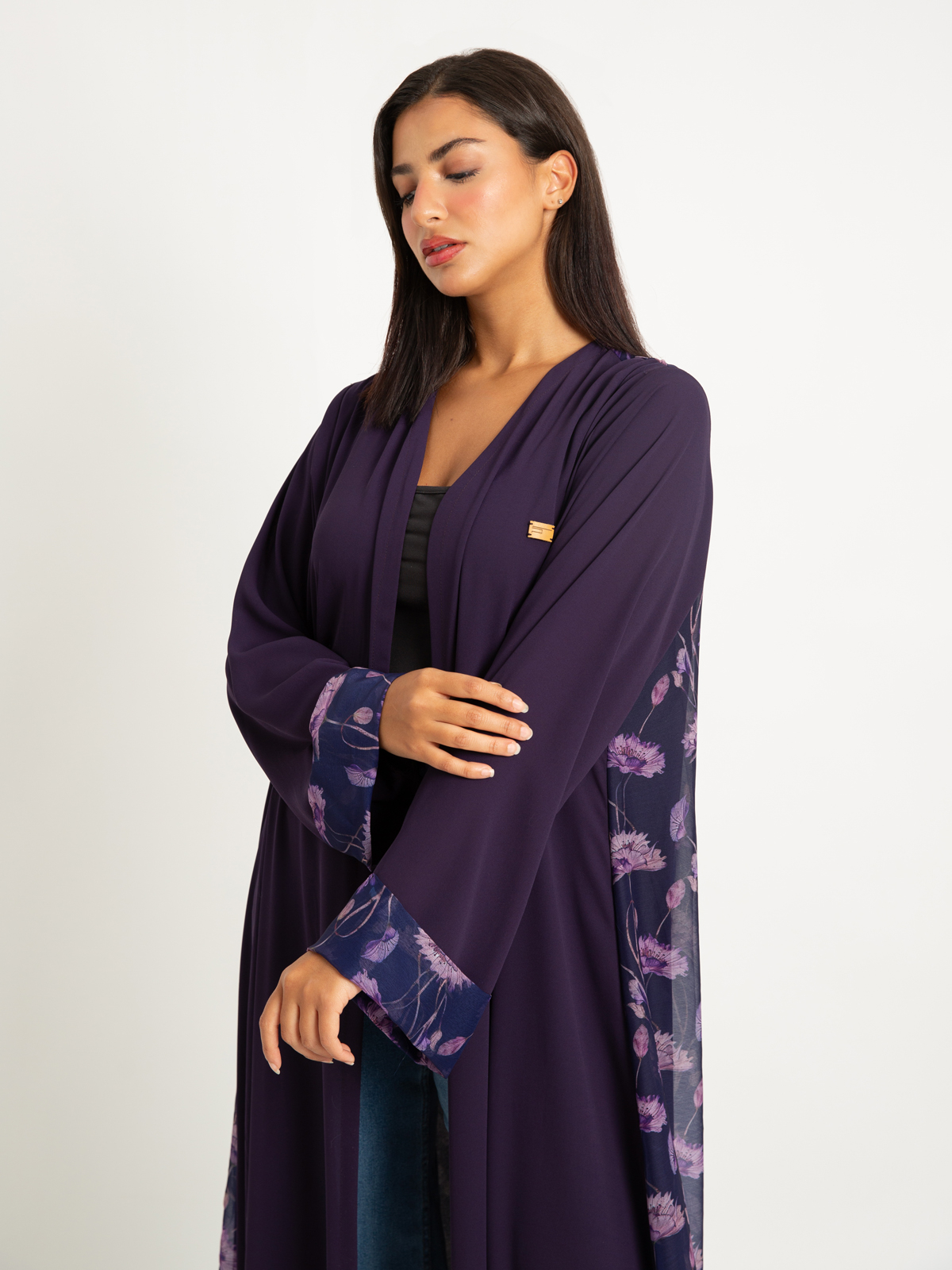 Half Cloche A-Cut Long Open Abaya in Printed Cotton Fabric
