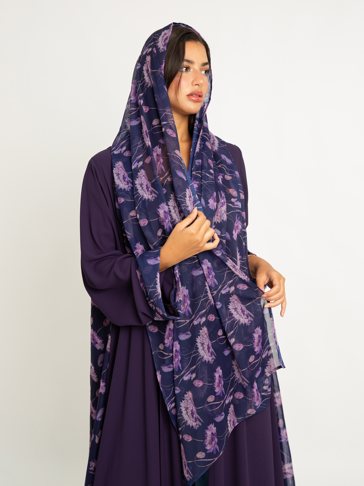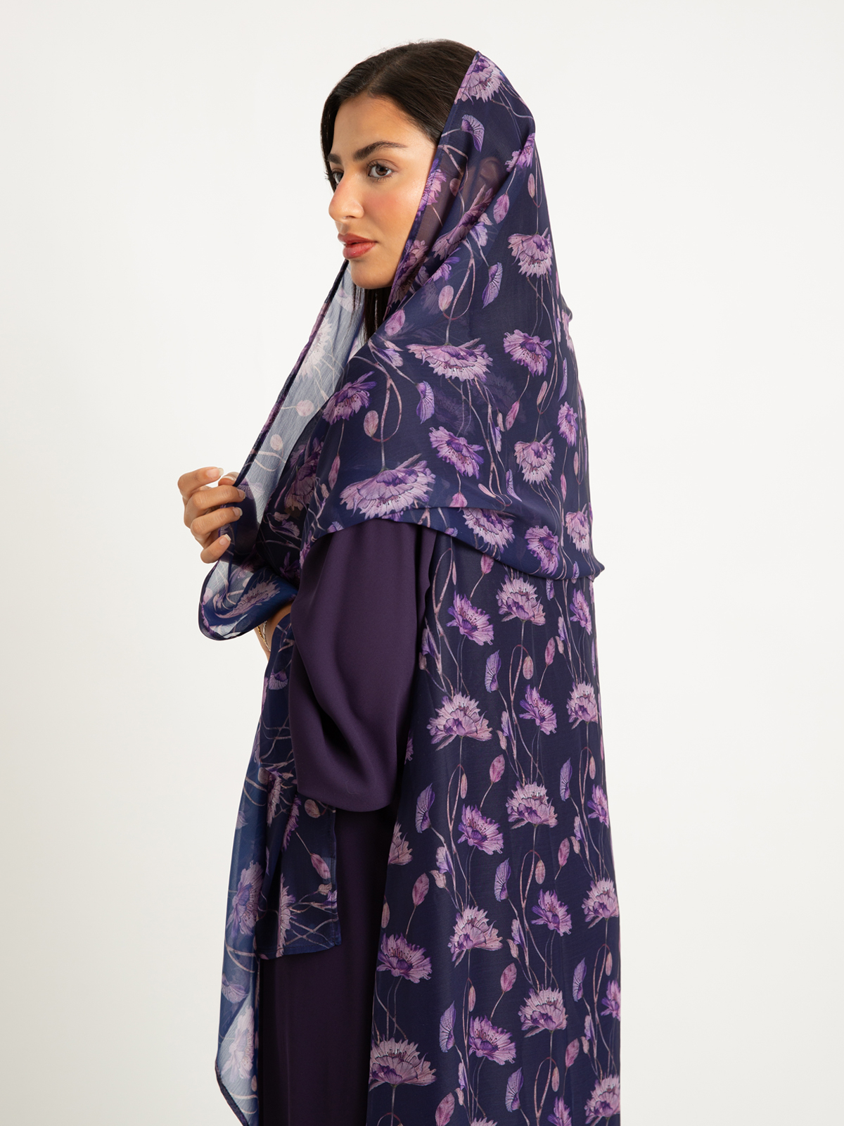 Abaya comes with its matching chiffon Tarha (Headscarf).