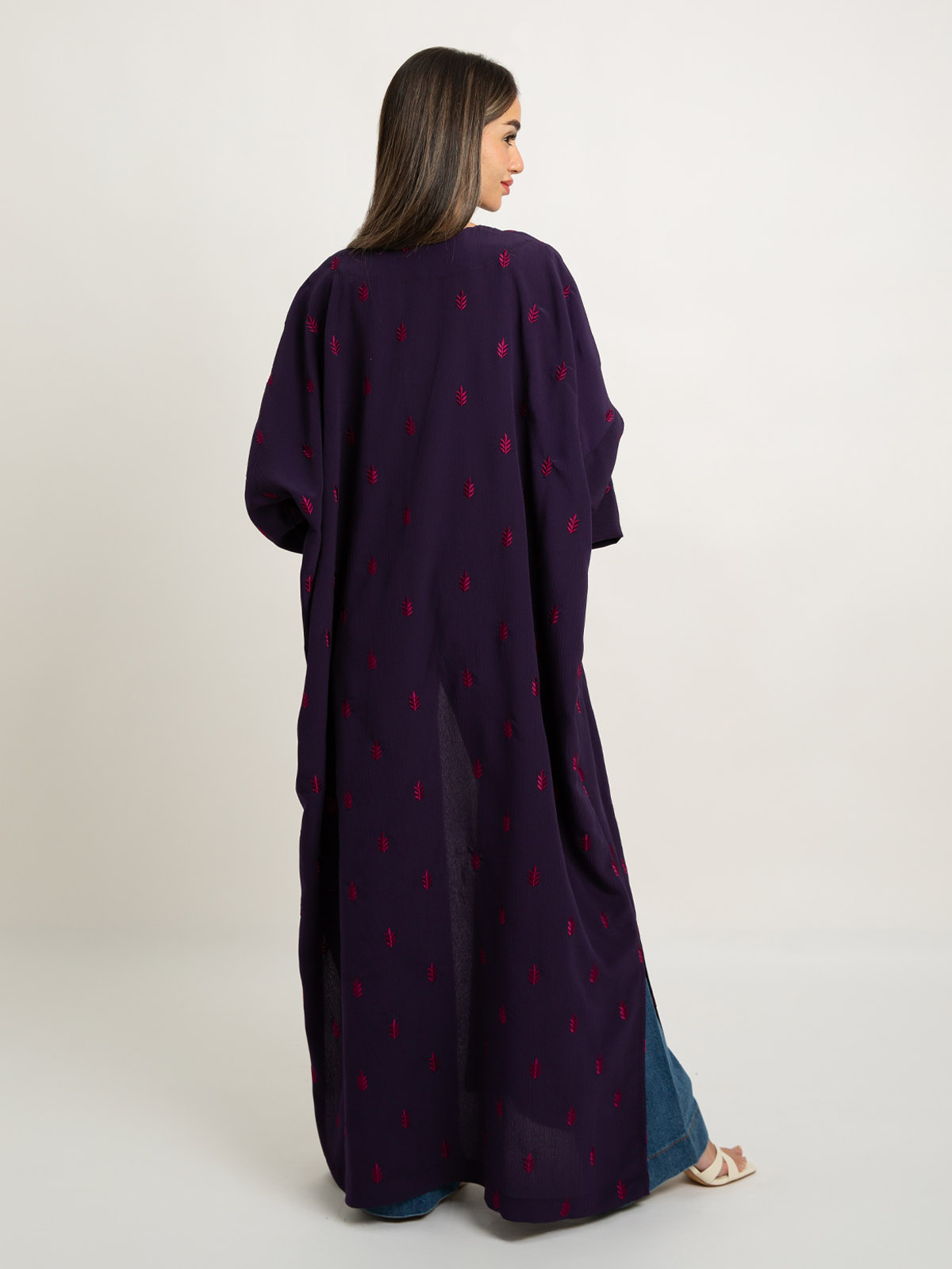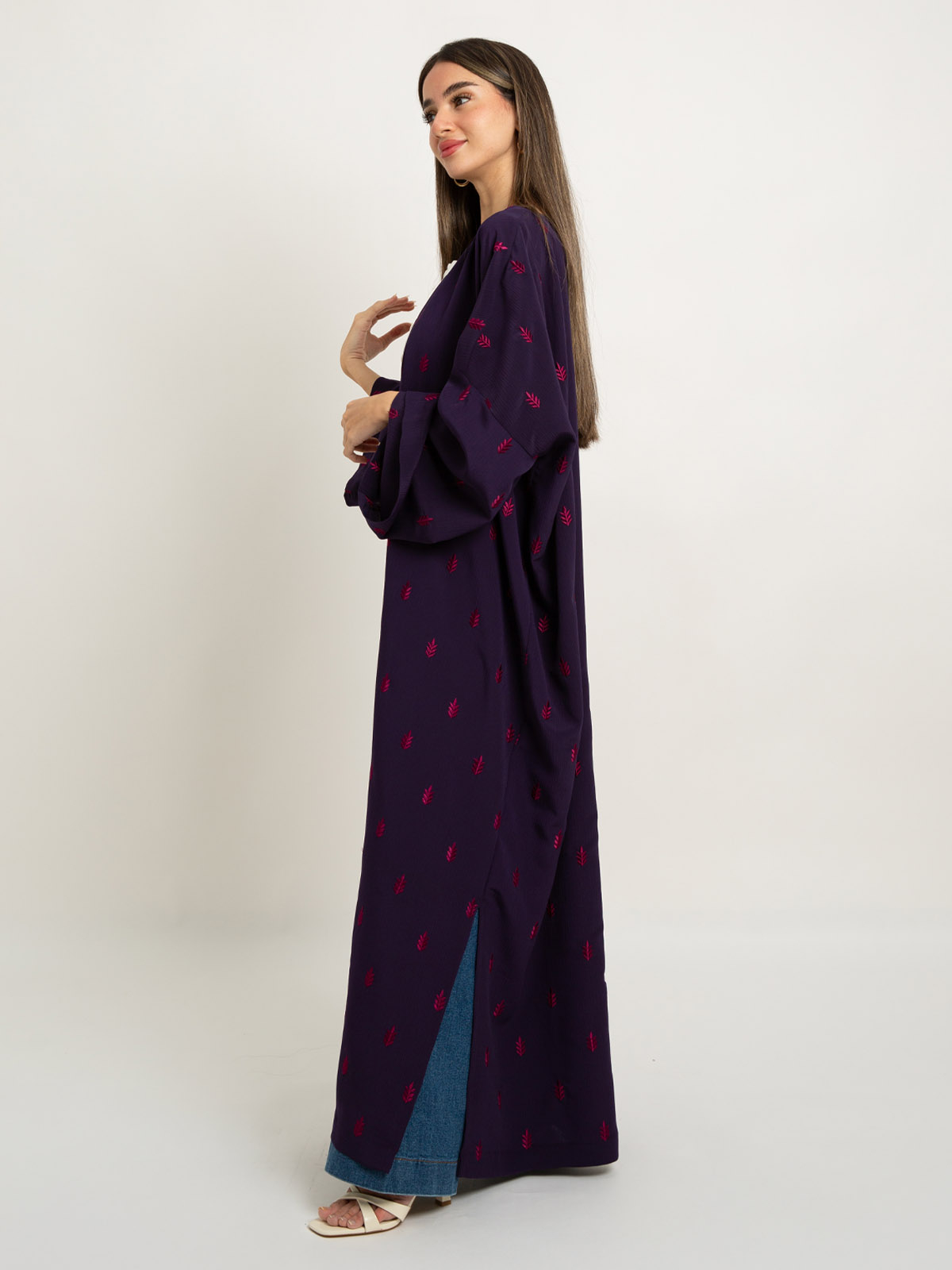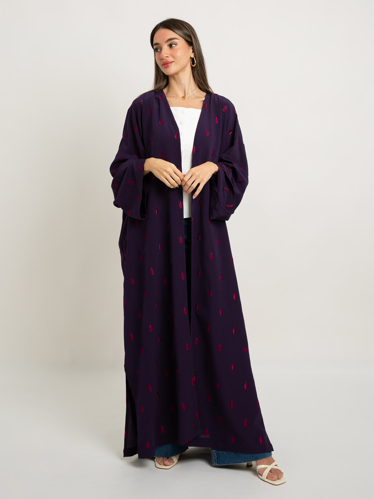 Long Wide-fit Open Abaya in Embroidered Yoryu Fabric