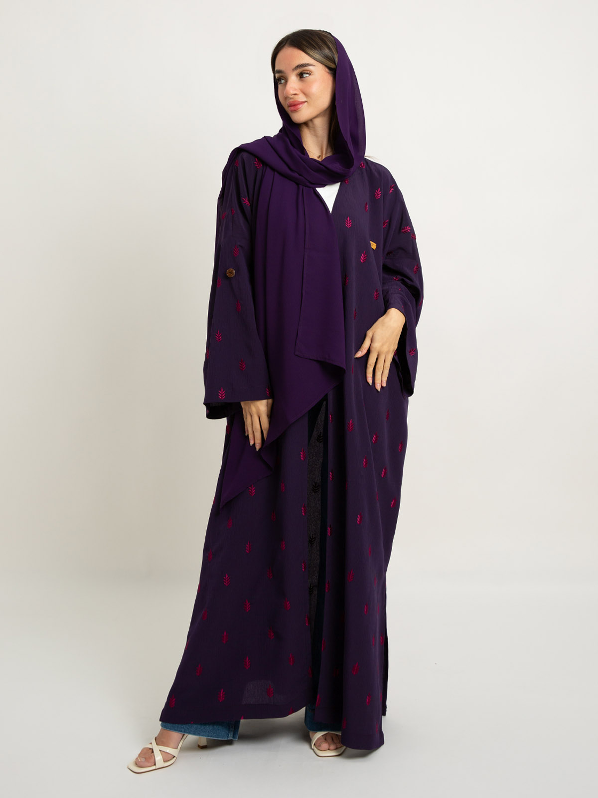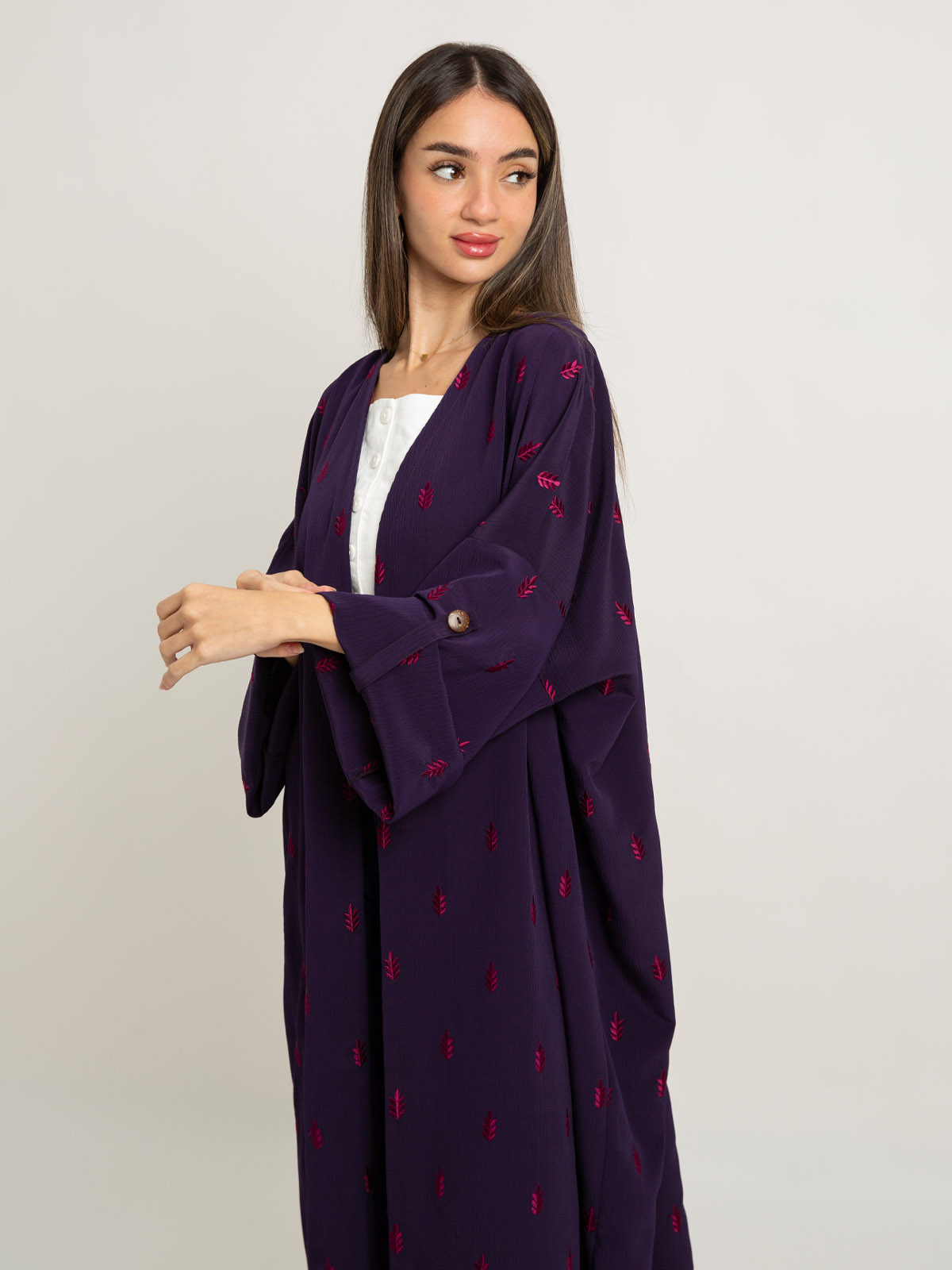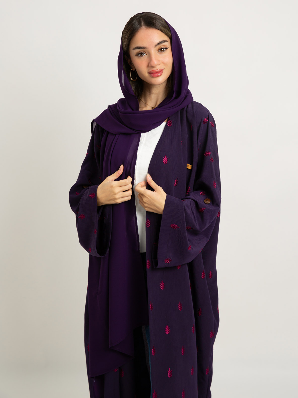 Long Wide-fit Open Abaya in Embroidered Yoryu Fabric