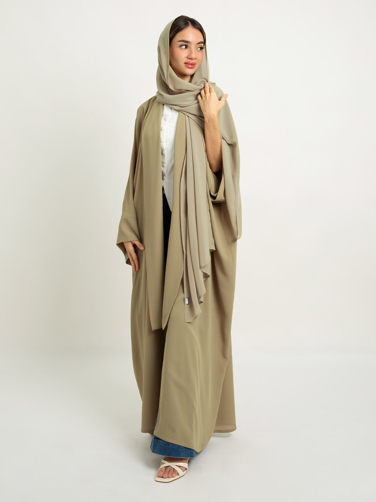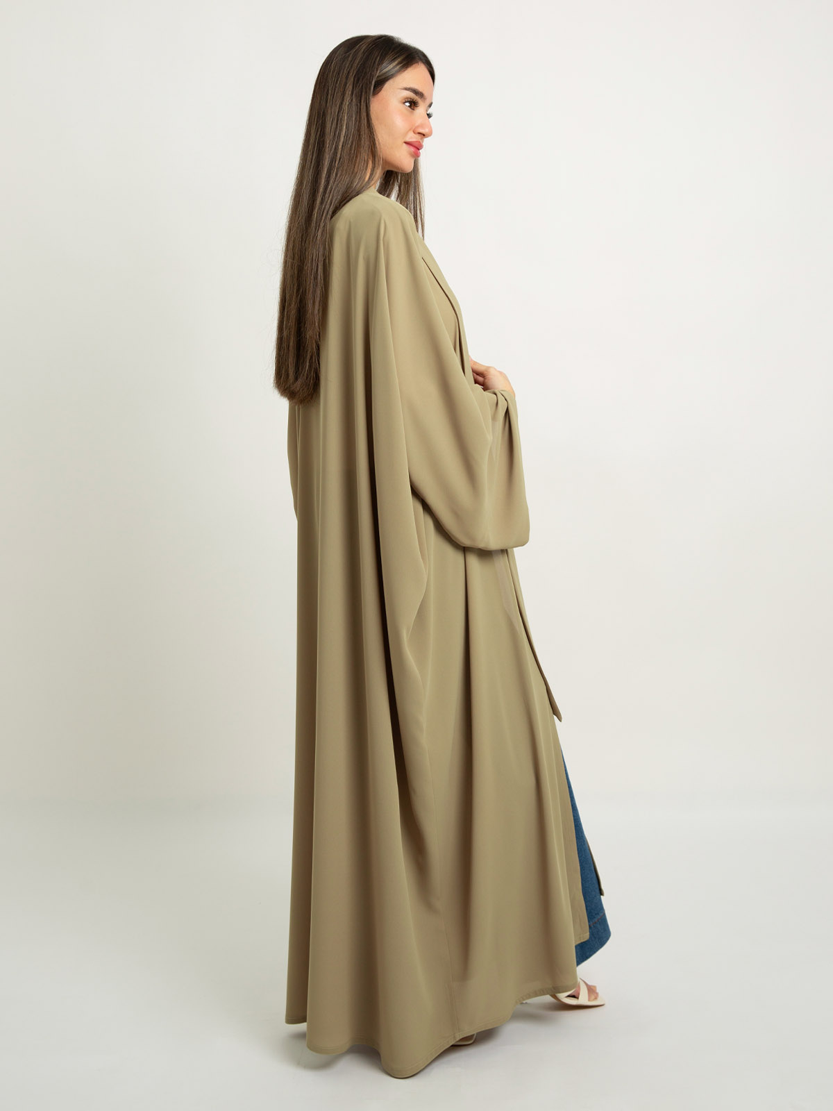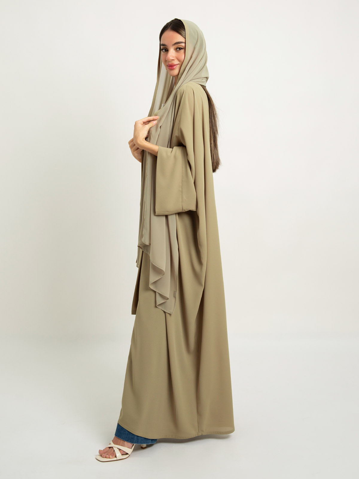 Plain Flowstyle Wide-Fit Long Open Abaya in Light Fabric