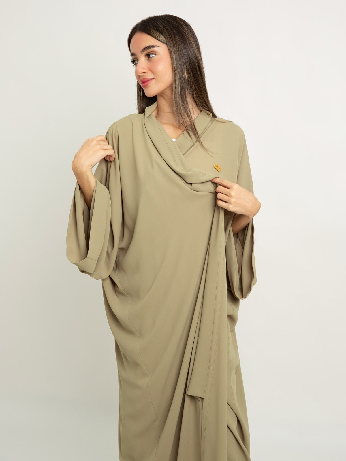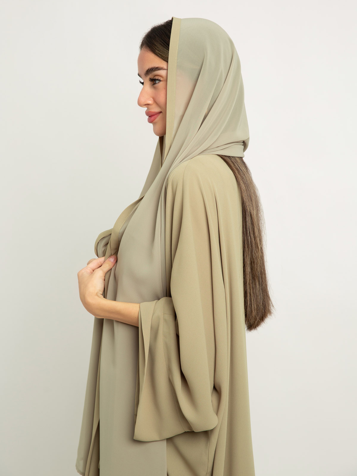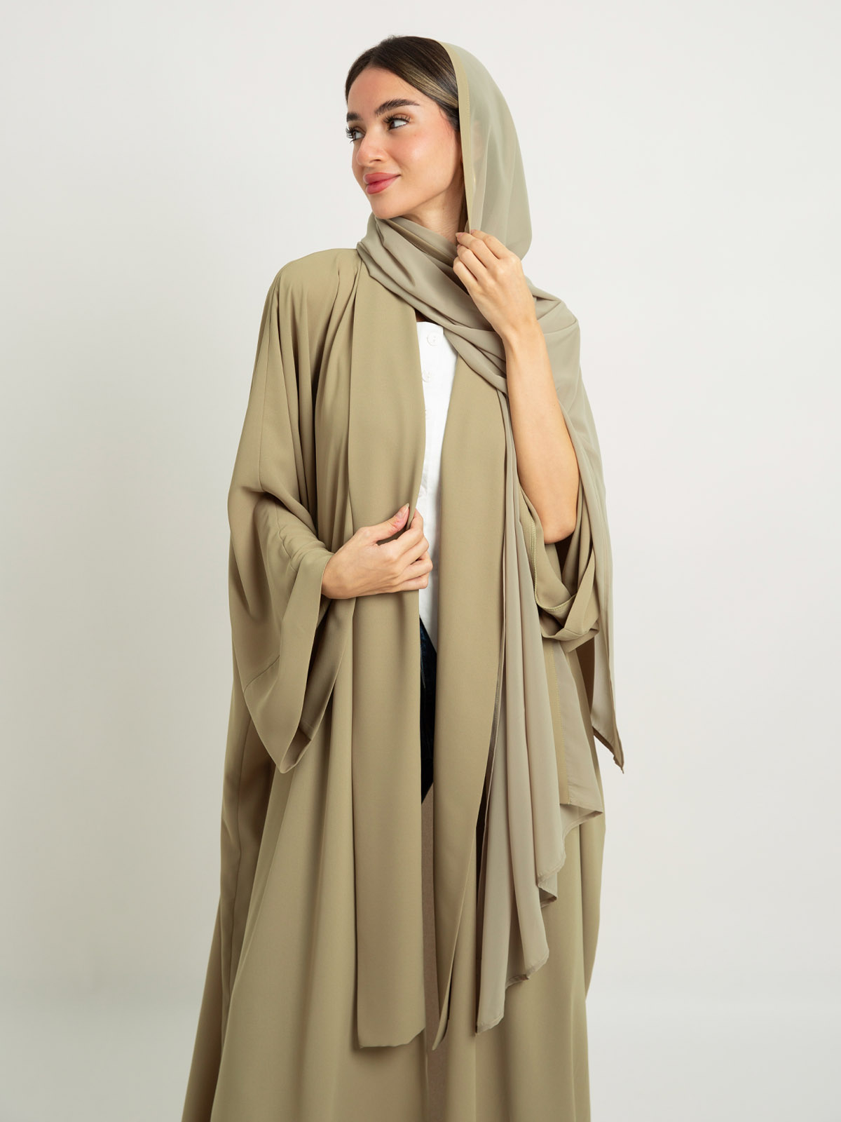 Plain Flowstyle Wide-Fit Long Open Abaya in Light Fabric