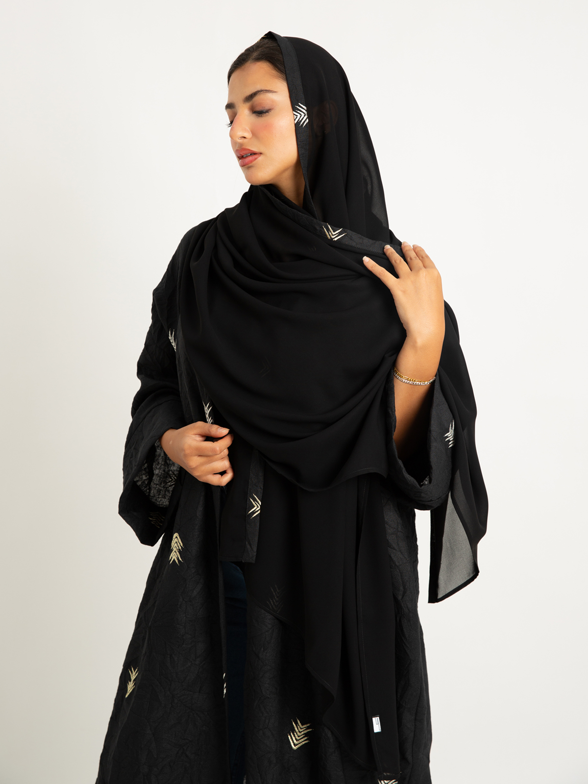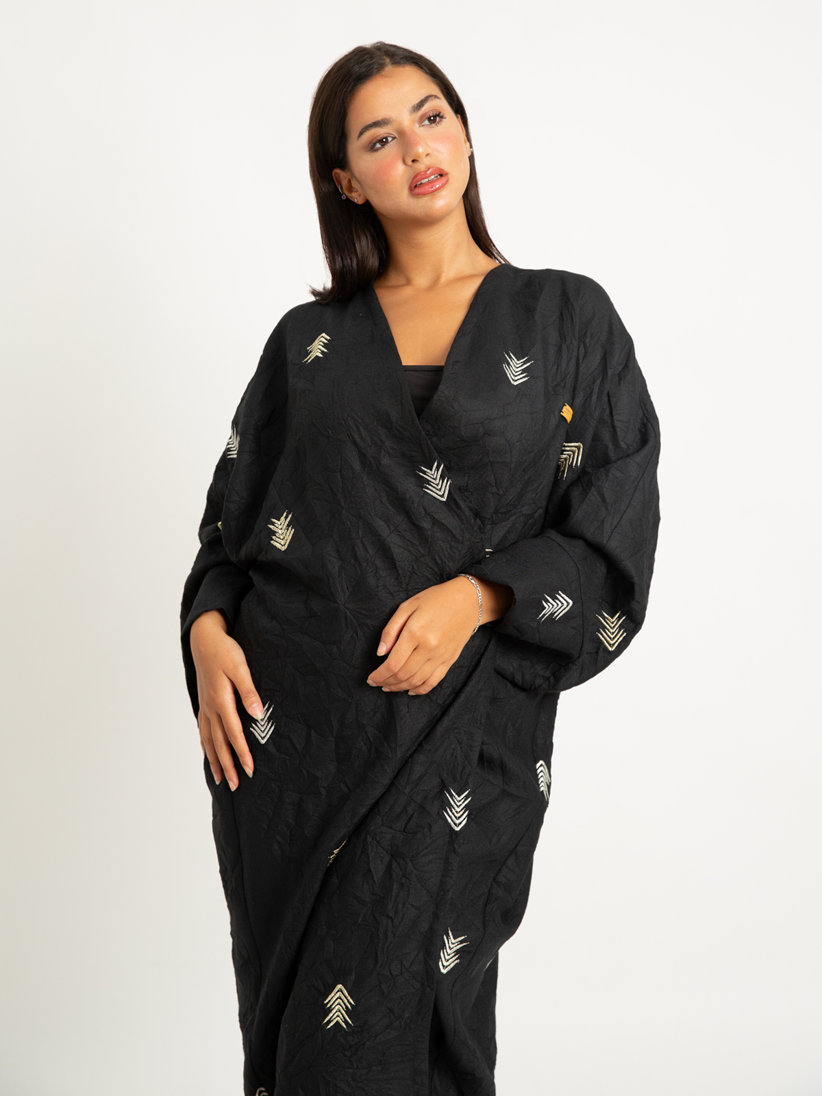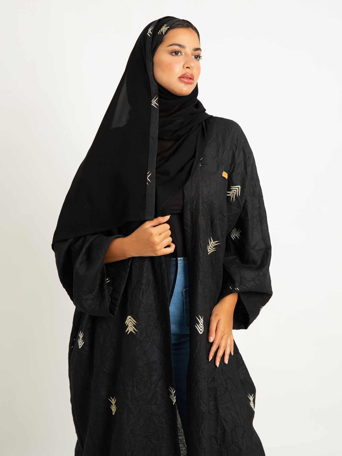 Meet our new Arrow Embroidered Abaya, designed for everyday ease with a bold, elegant touch.Covered with soft, arrow-inspired embroidery all over the abaya, it adds a modern edge to a timeless black look.