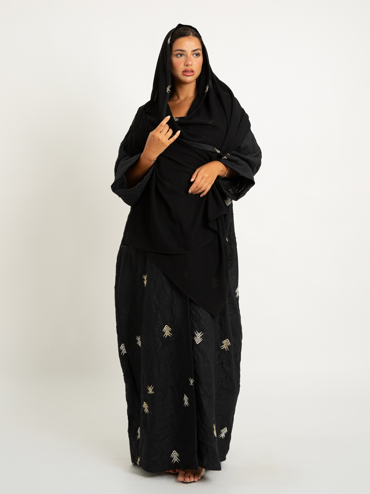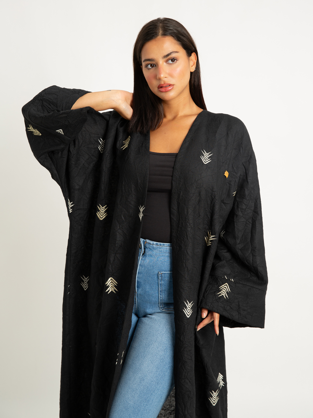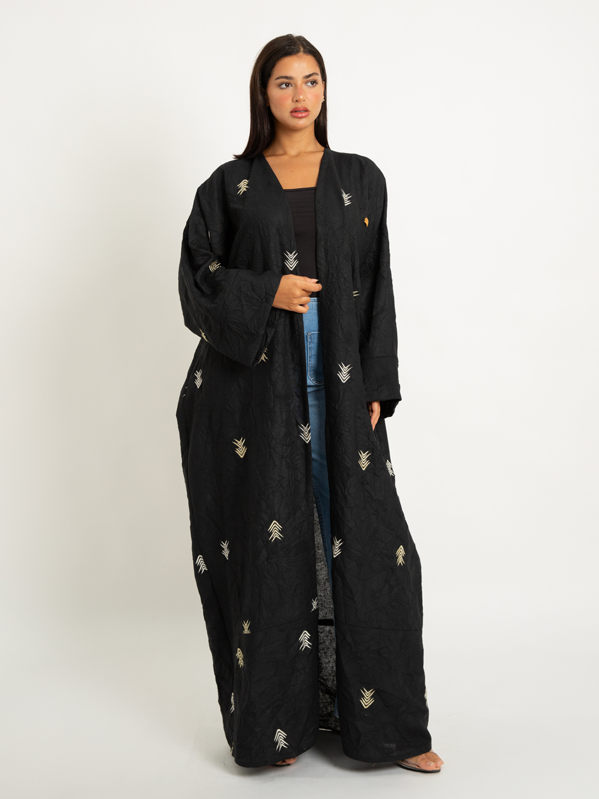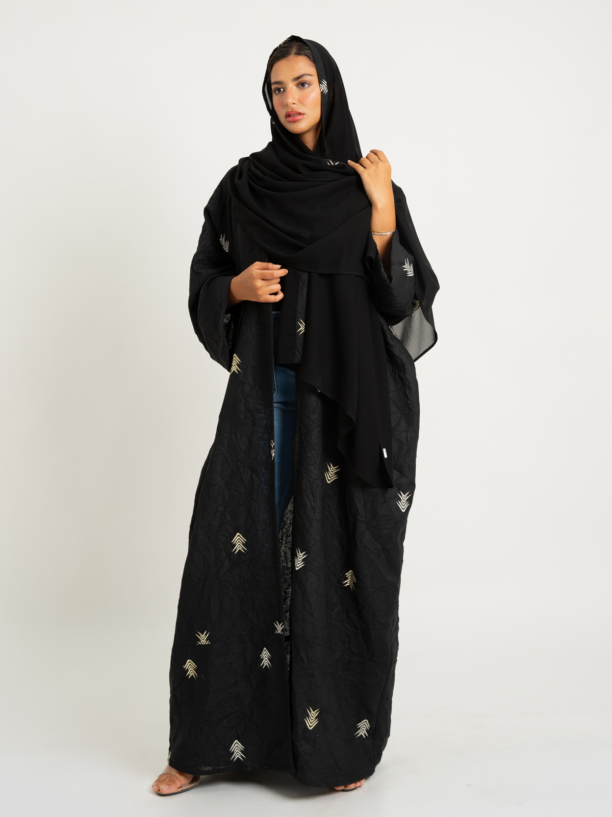 Meet our new Arrow Embroidered Abaya, designed for everyday ease with a bold, elegant touch.Covered with soft, arrow-inspired embroidery all over the abaya, it adds a modern edge to a timeless black look.