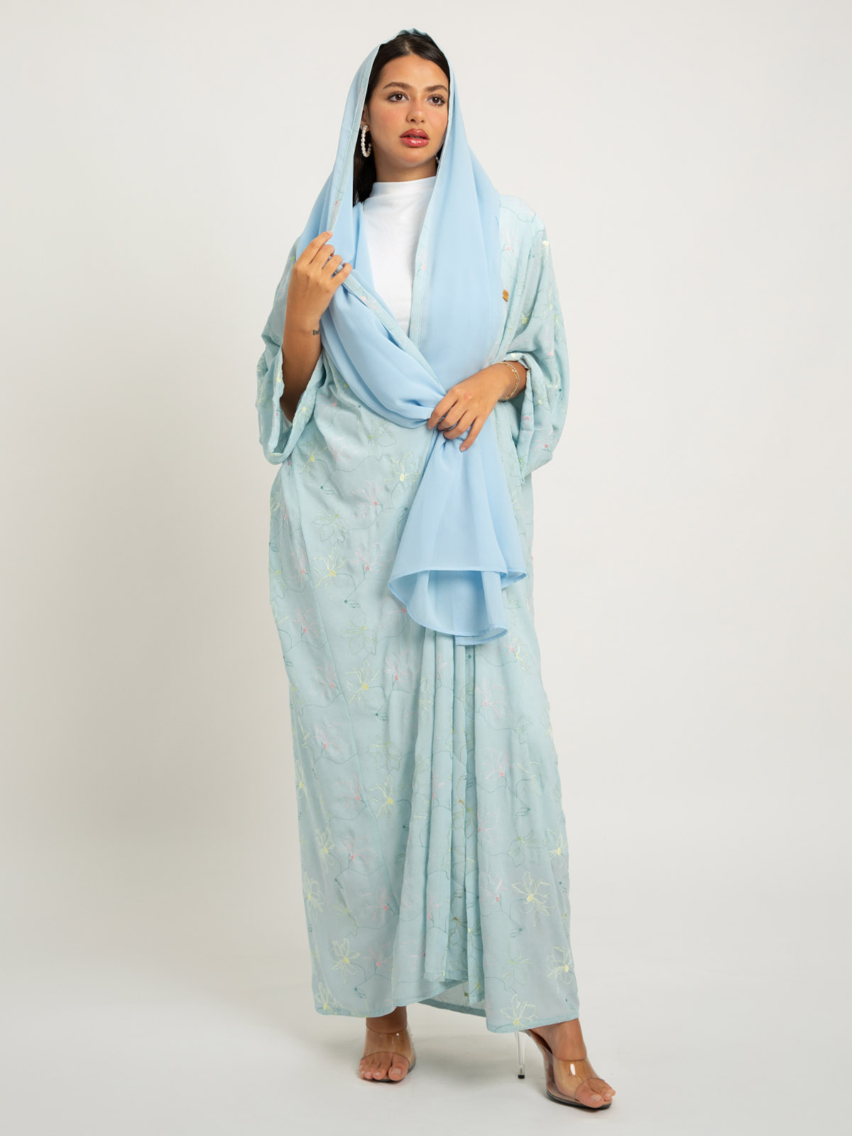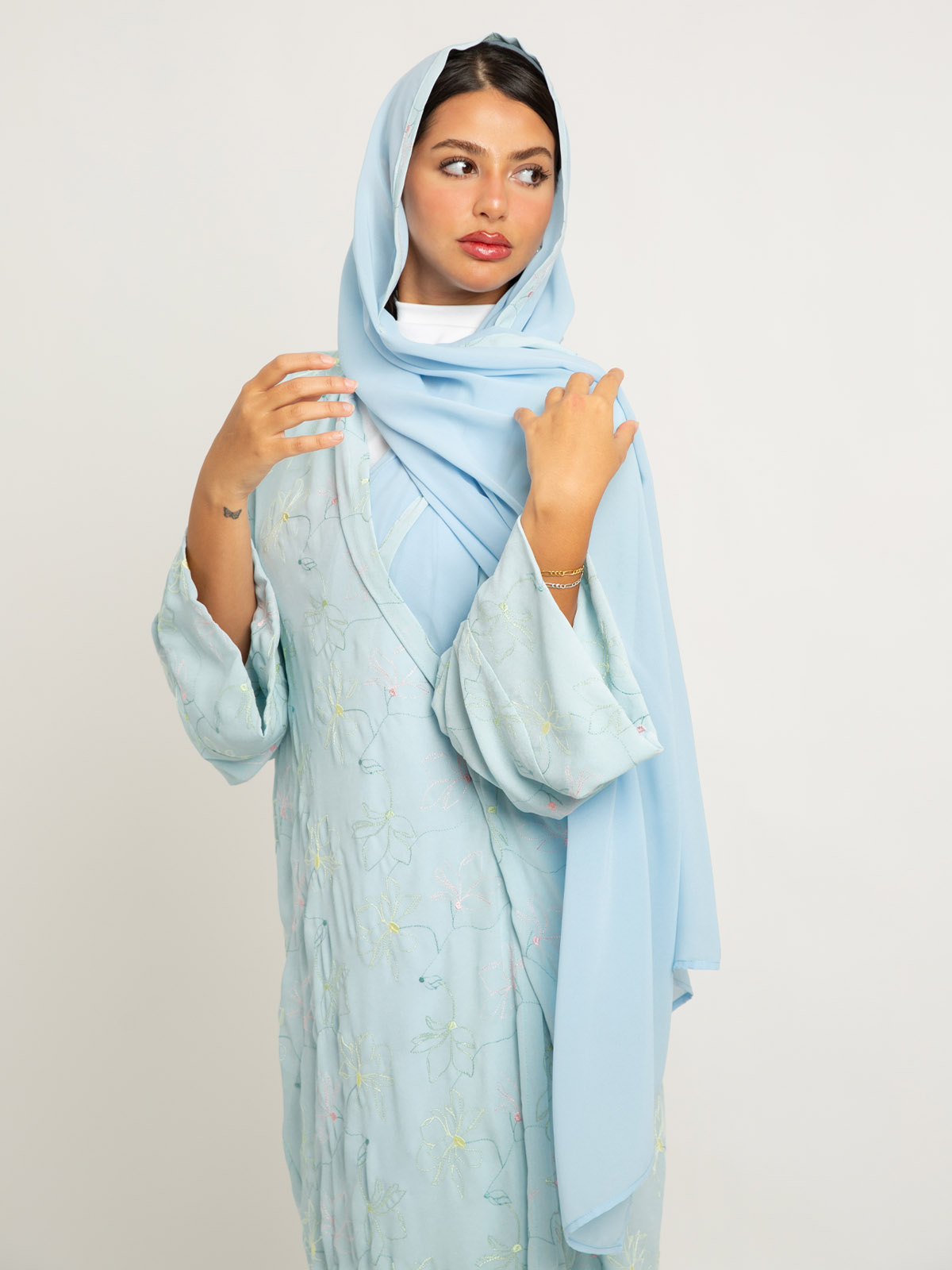 A limited edition that captures every moment of growth and elegance you’ve shared with us. A full embroidered wide-fit abaya made from lightweight chiffon fabric that flows with ease, this abaya offers comfort and effortless summer elegance.