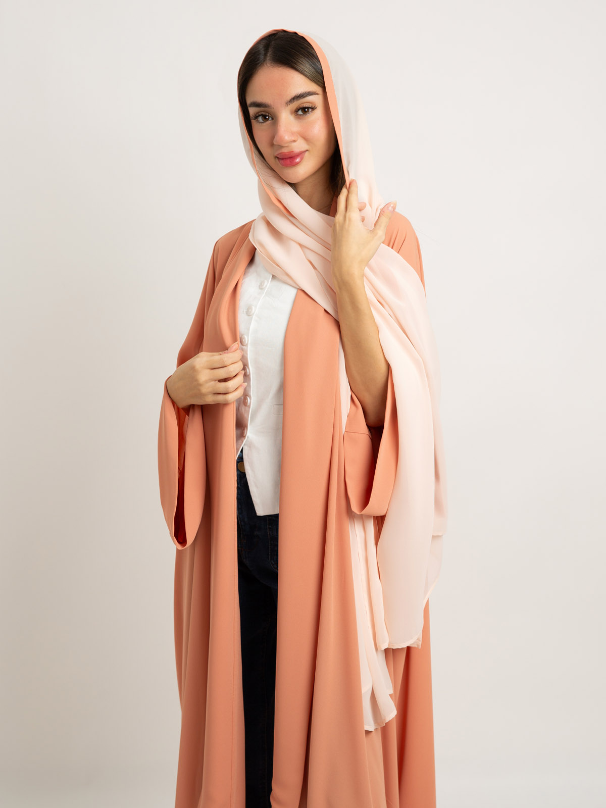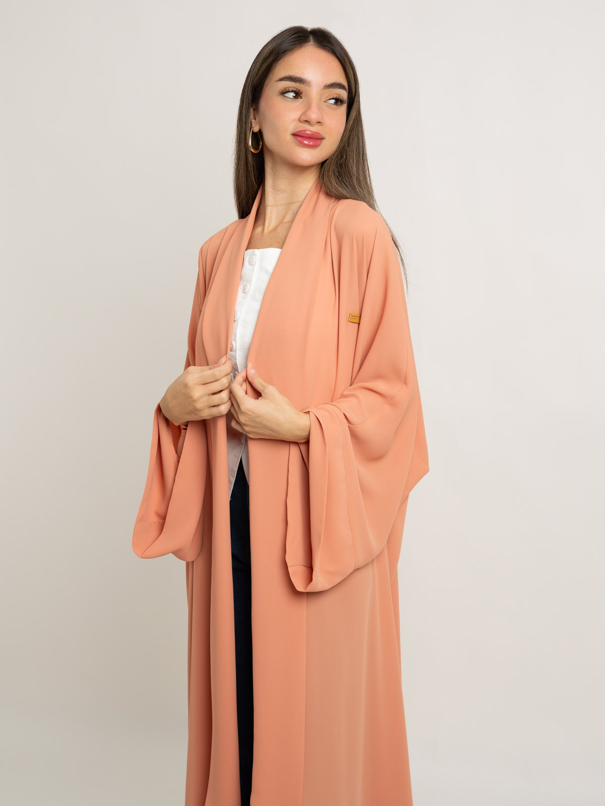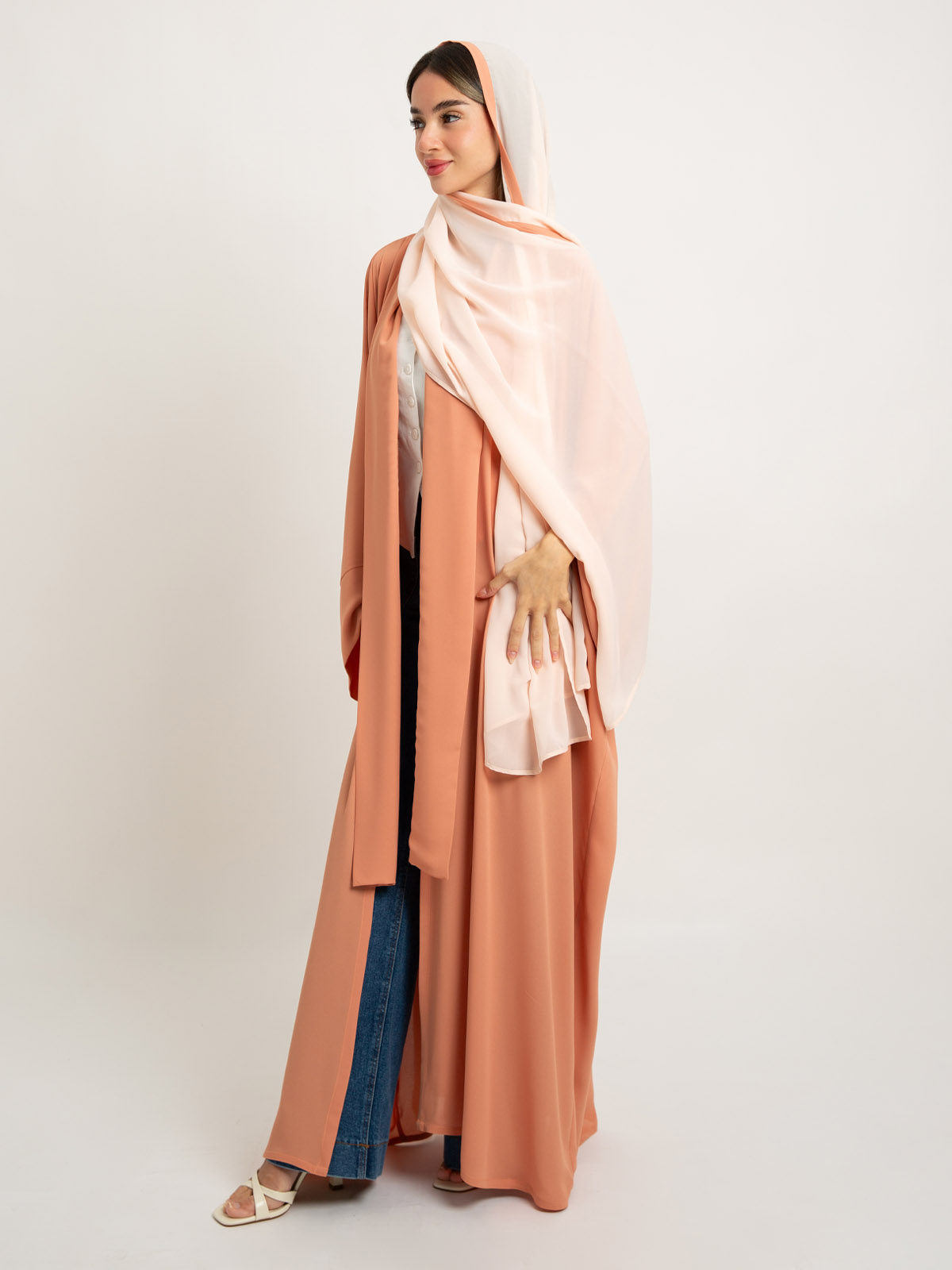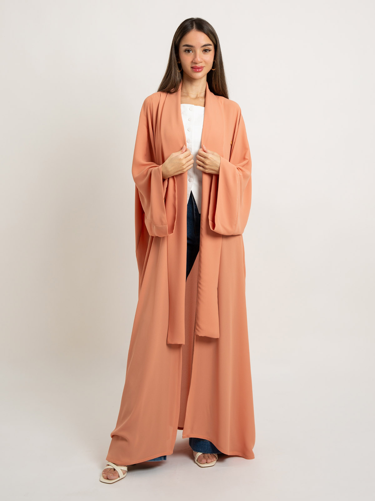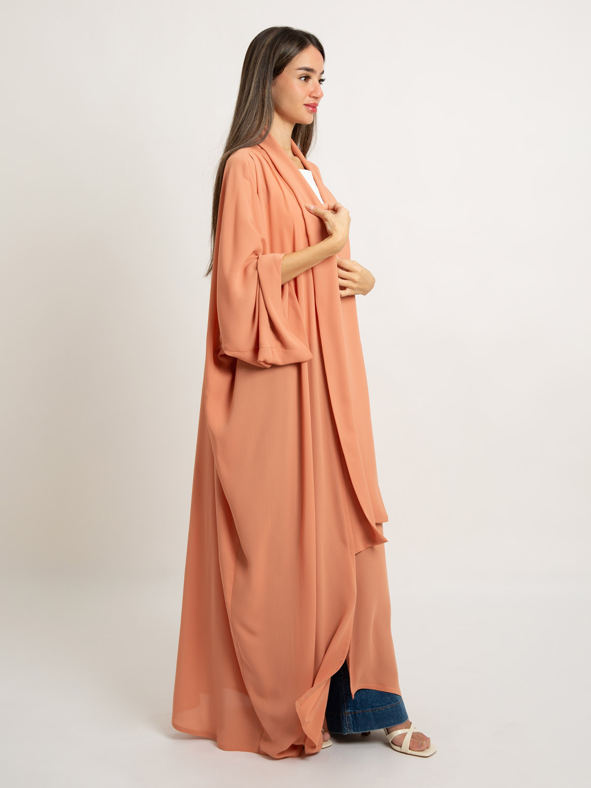 Plain Flowstyle Wide-Fit Long Open Abaya in Light Fabric