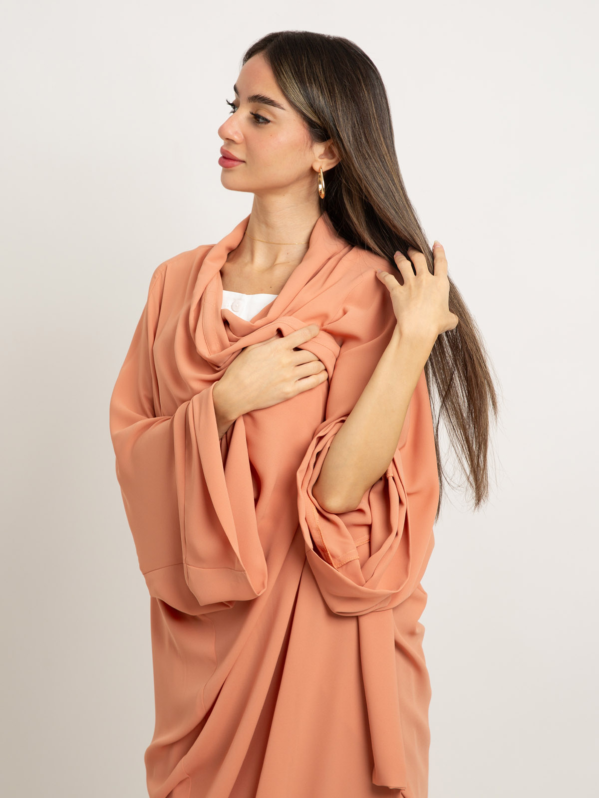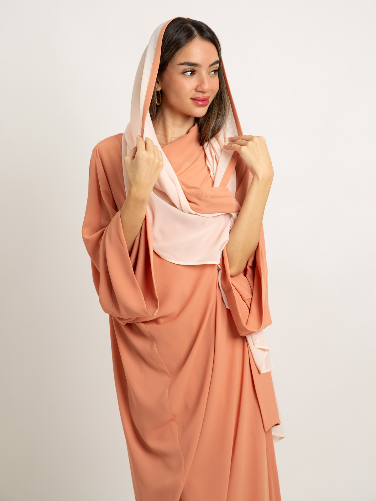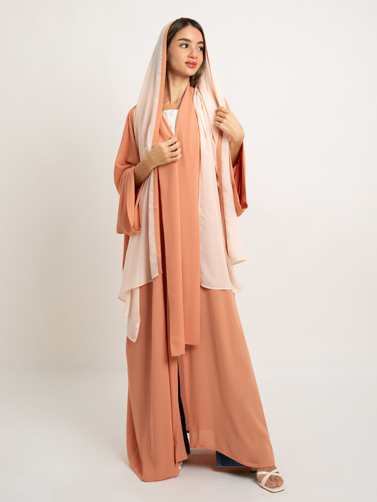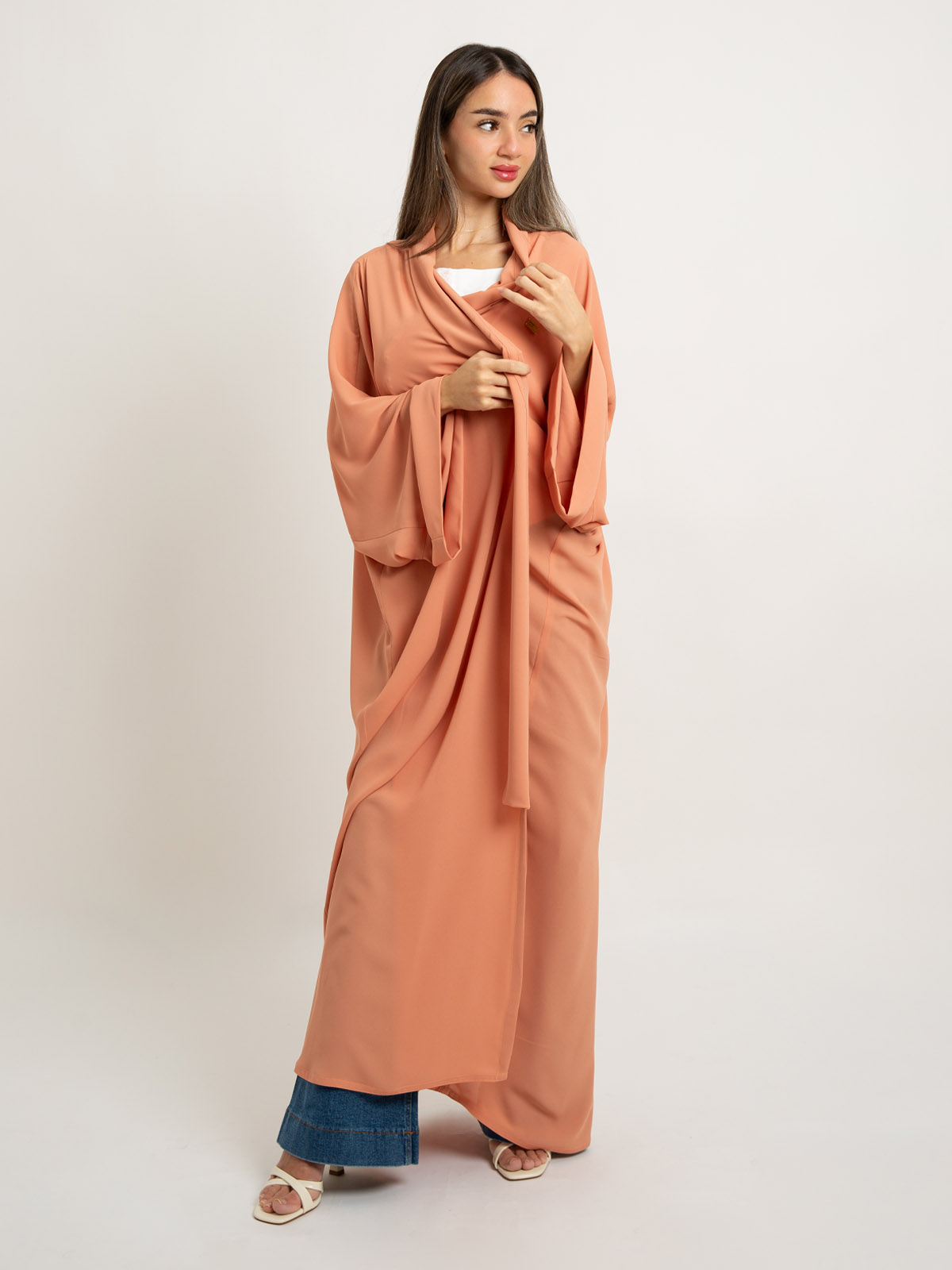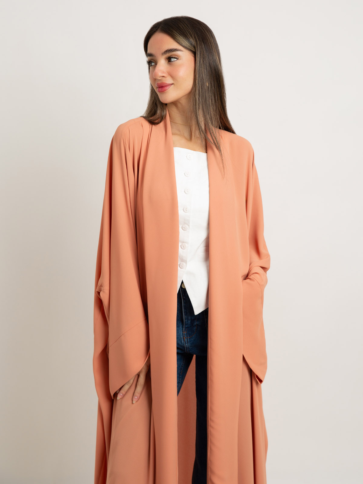 Plain Flowstyle Wide-Fit Long Open Abaya in Light Fabric