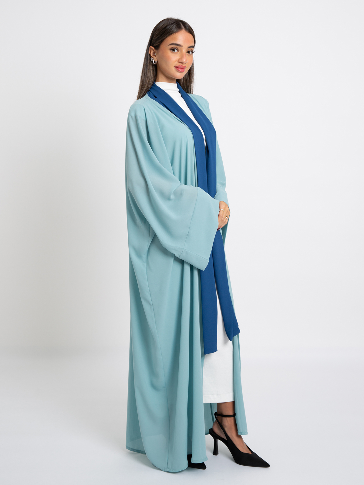 Plain Flowstyle Wide-Fit Long Open Abaya / Light Fabric