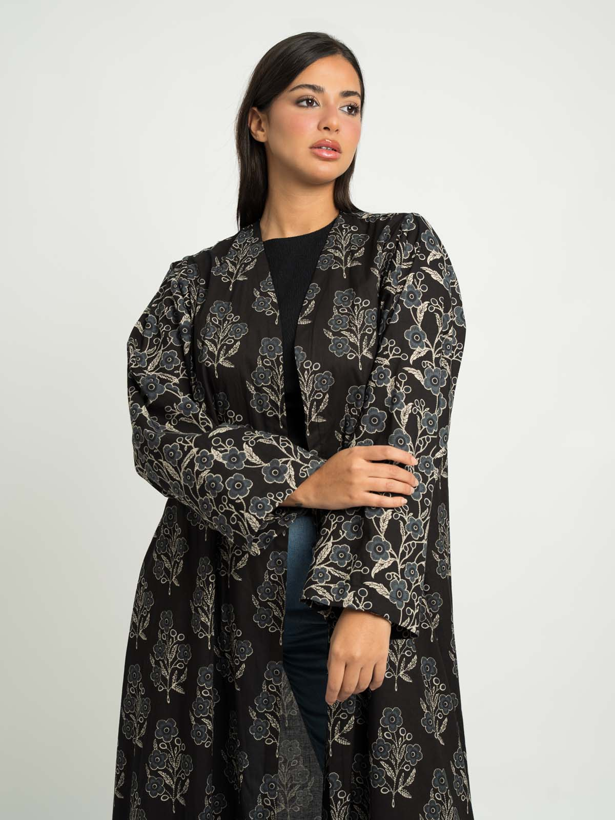 Half Cloche A-Cut Long Open Abaya in Printed Cotton Fabric
