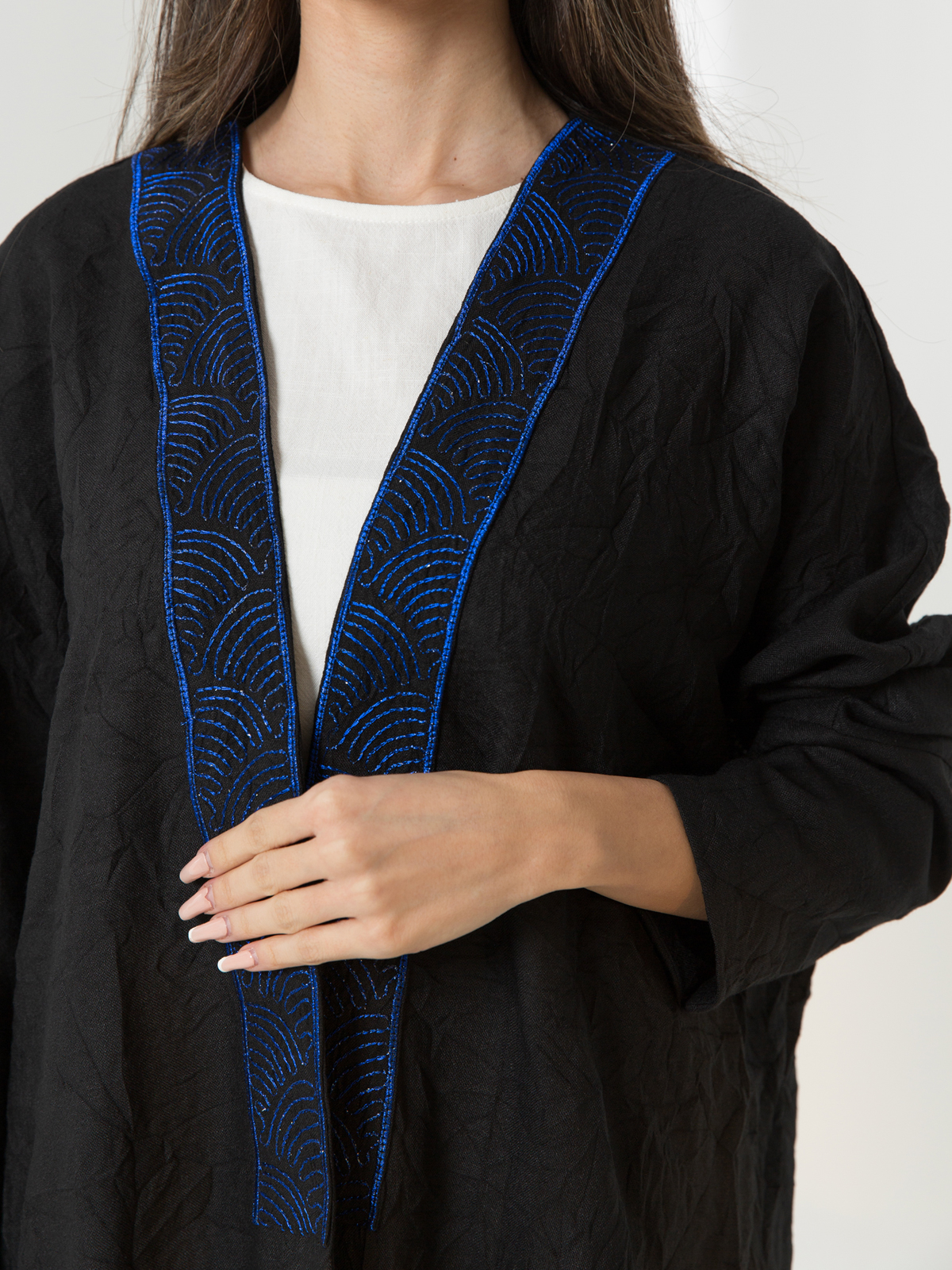 Half Bisht with Kulfa Long Open Abaya in Linen Fabric