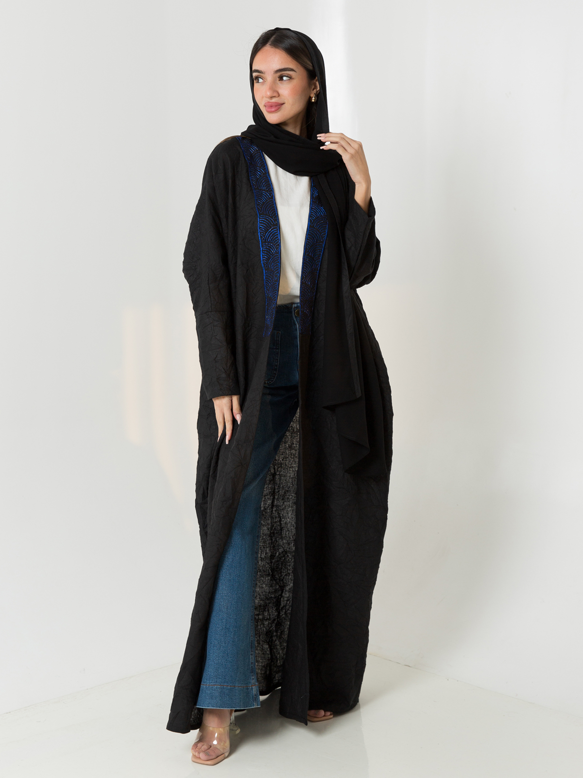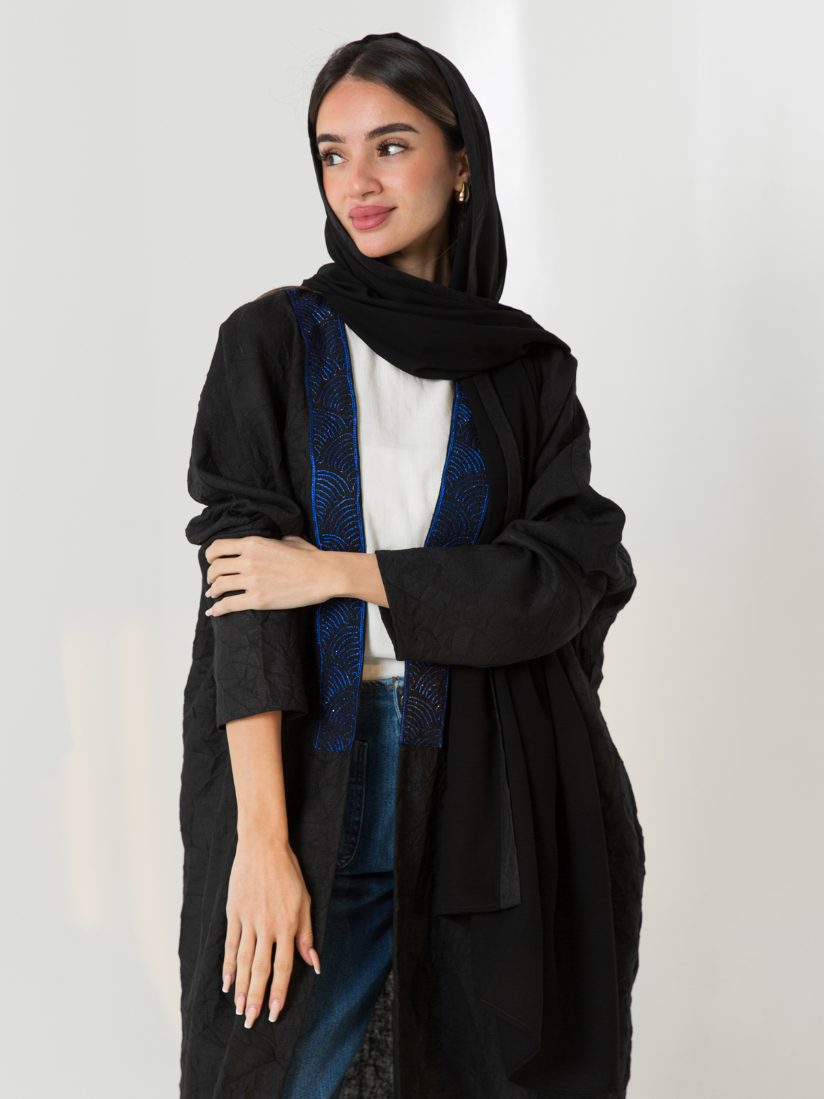 Black Indigo Wiggle Waves Half Bisht Abaya