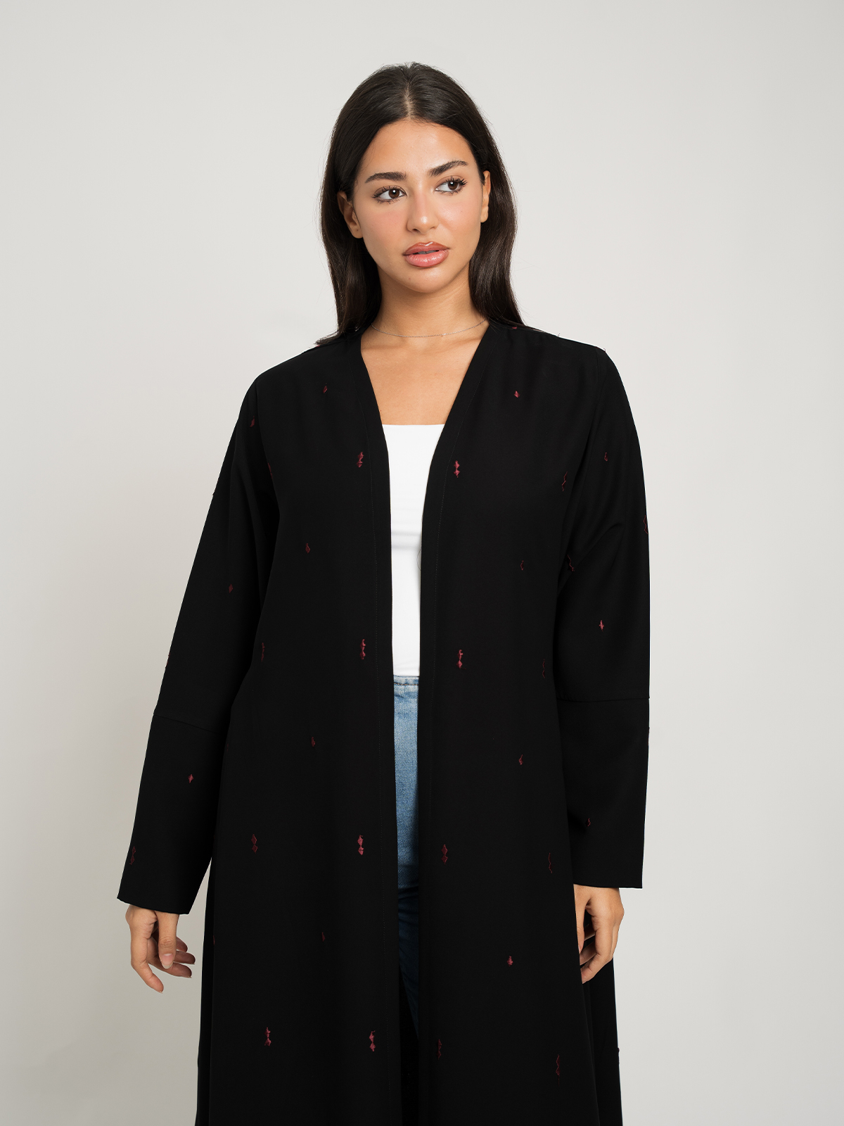 Half Cloche A-Cut Long Open Abaya in Embroidered Crepe Fabric