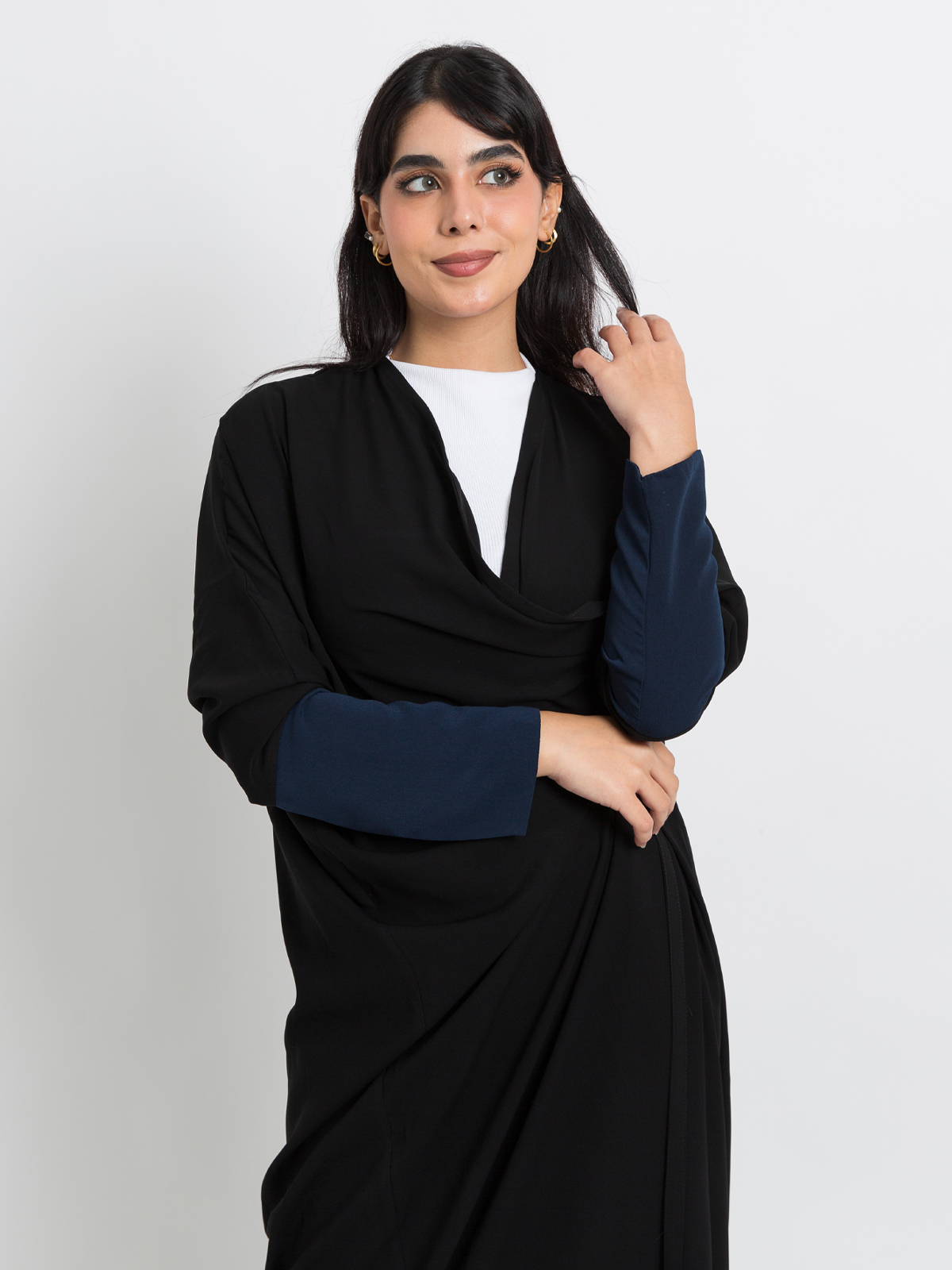 Black on Navy Half Bisht Abaya