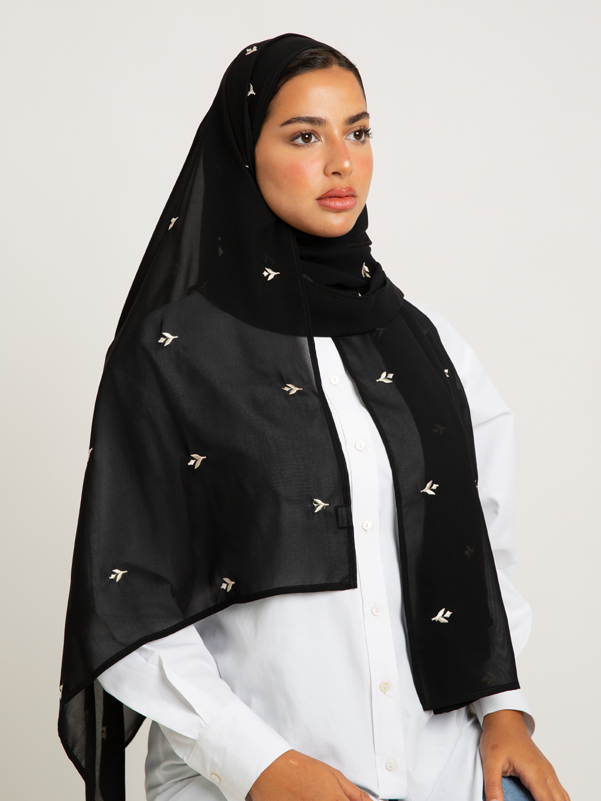 Petal Trace Embroidery Laser Chiffon Hijab – New Tarha by Kaafmeem!