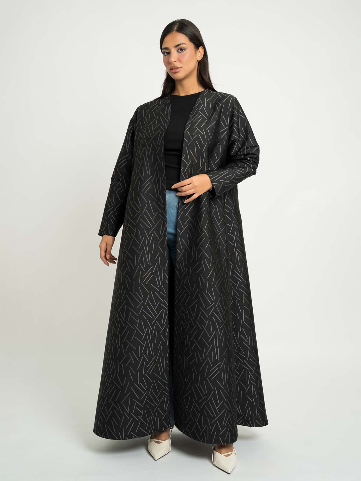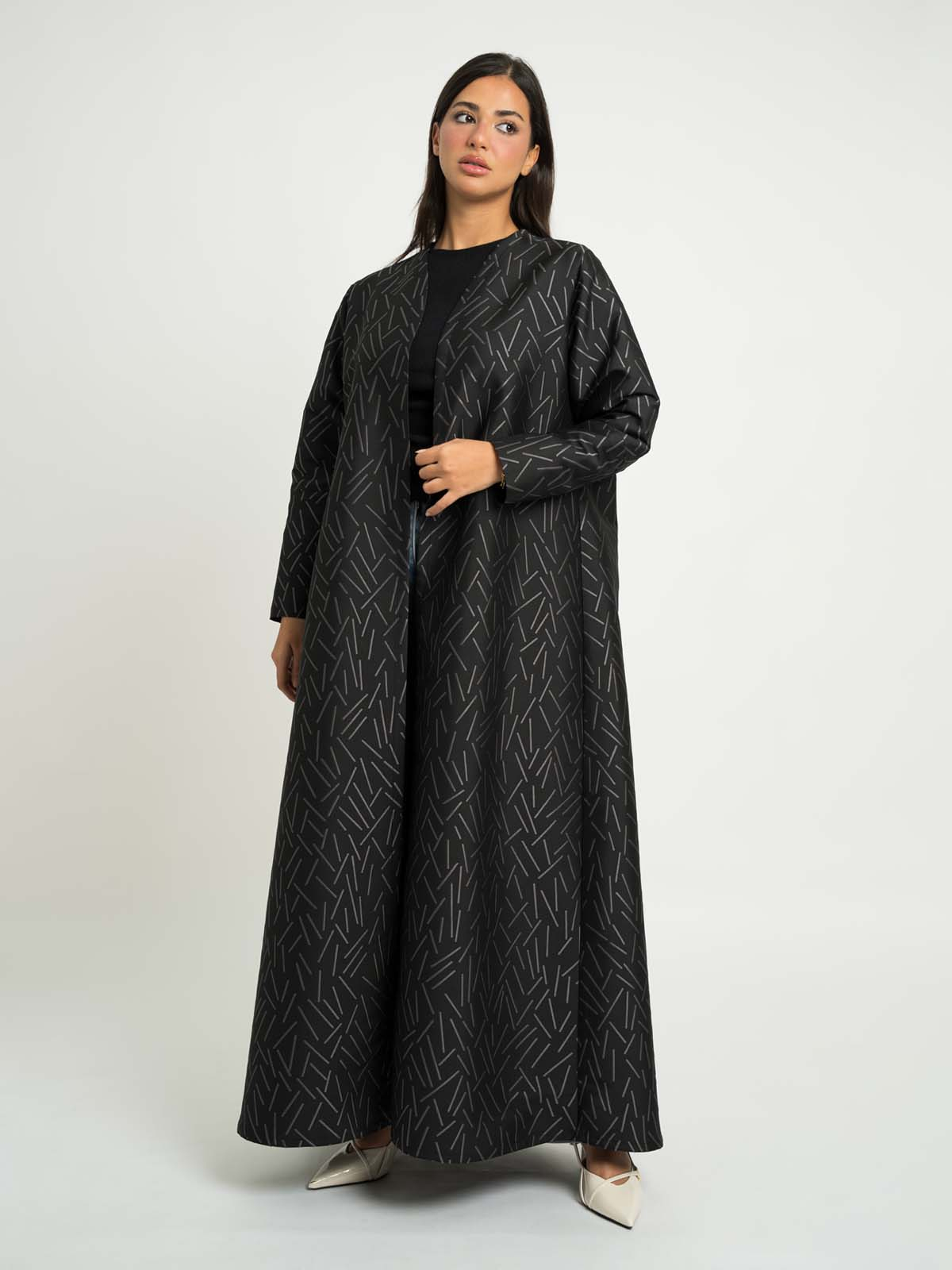 Half Cloche A-Cut Long Open Abaya in Jacquard Fabric