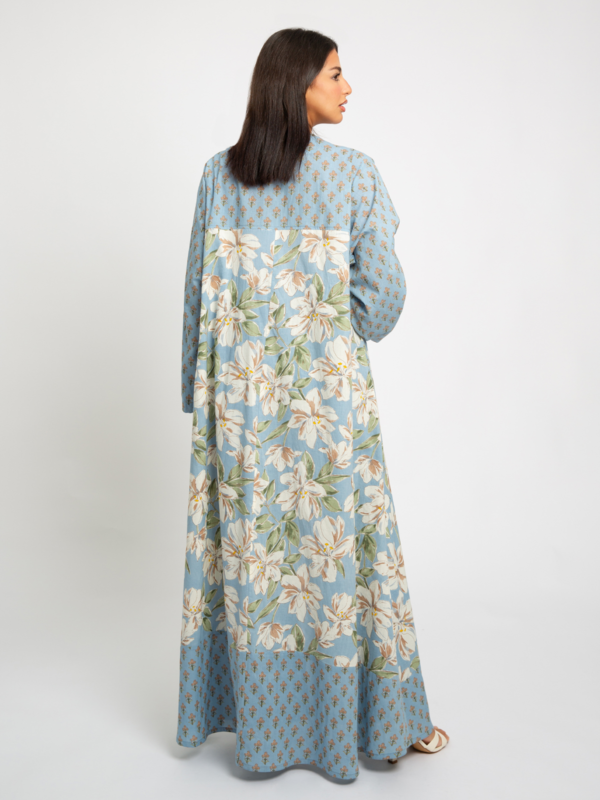 Half Cloche A-Cut Long Open Abaya in Printed Cotton Fabric