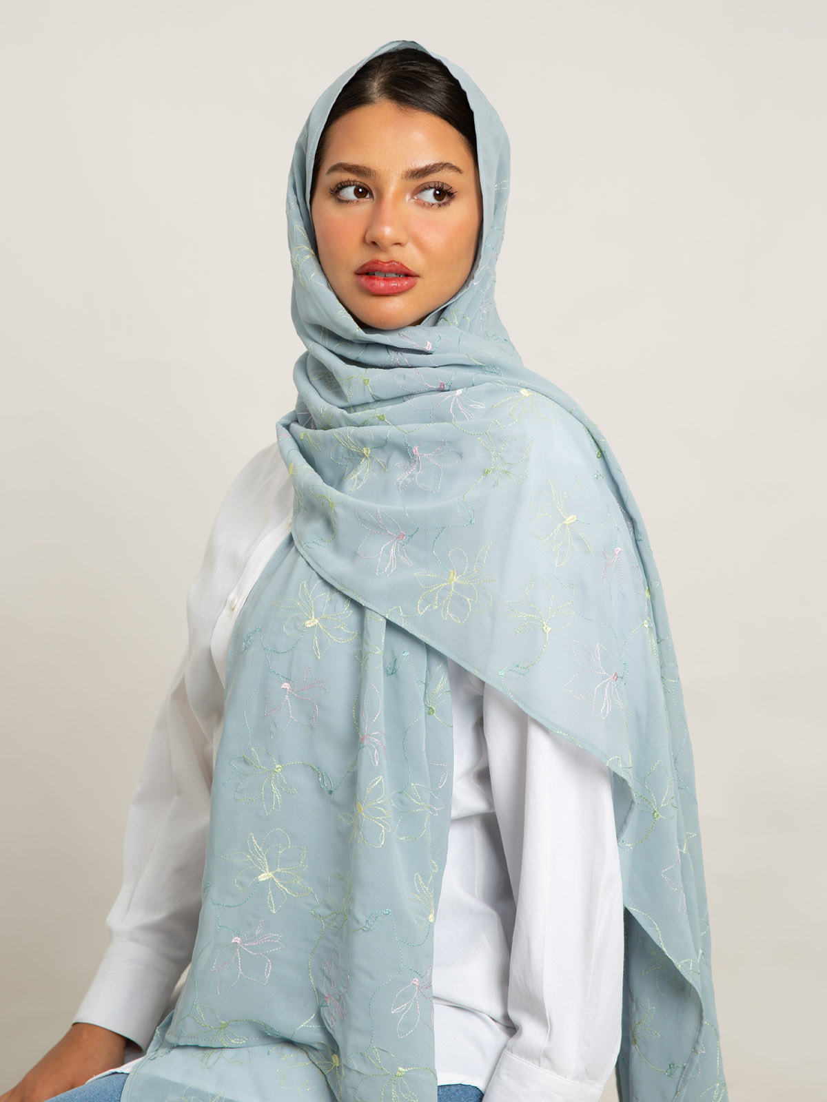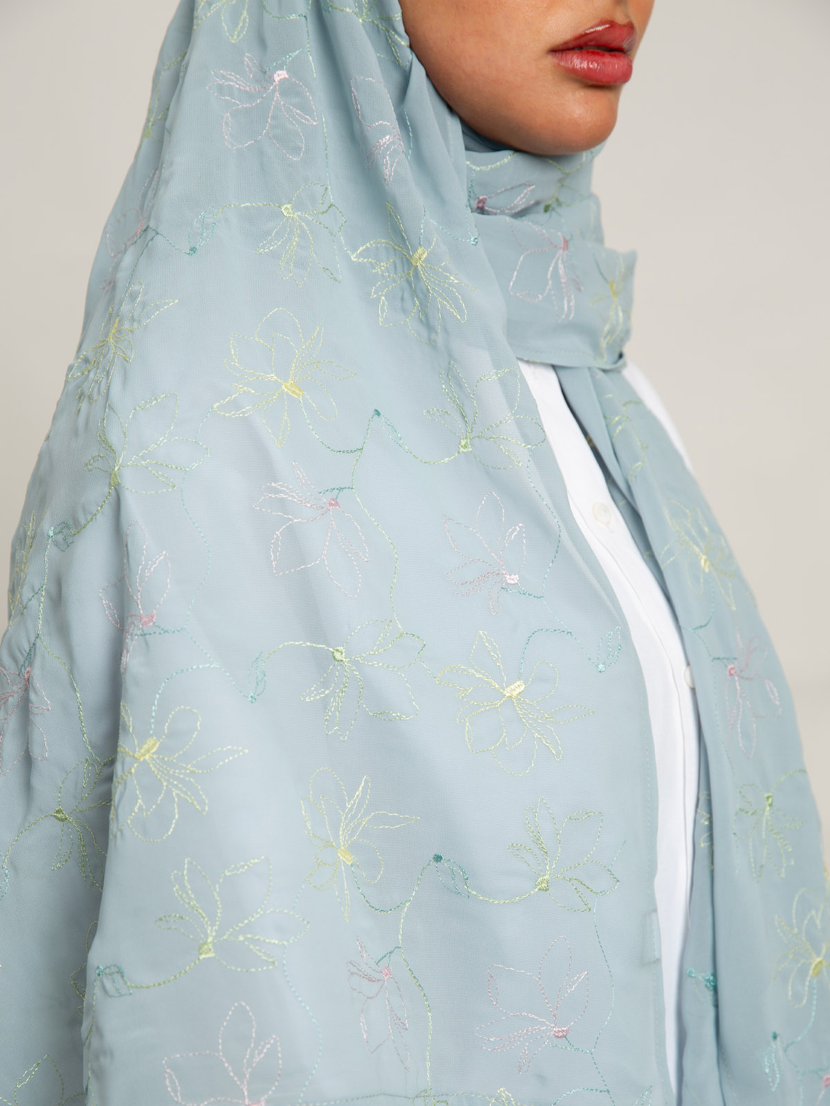 From the heart of our Nourishing 10 Collection comes a hijab that continues the story, a limited-edition laser tarha, delicately embroidered with soft pastel flowers.