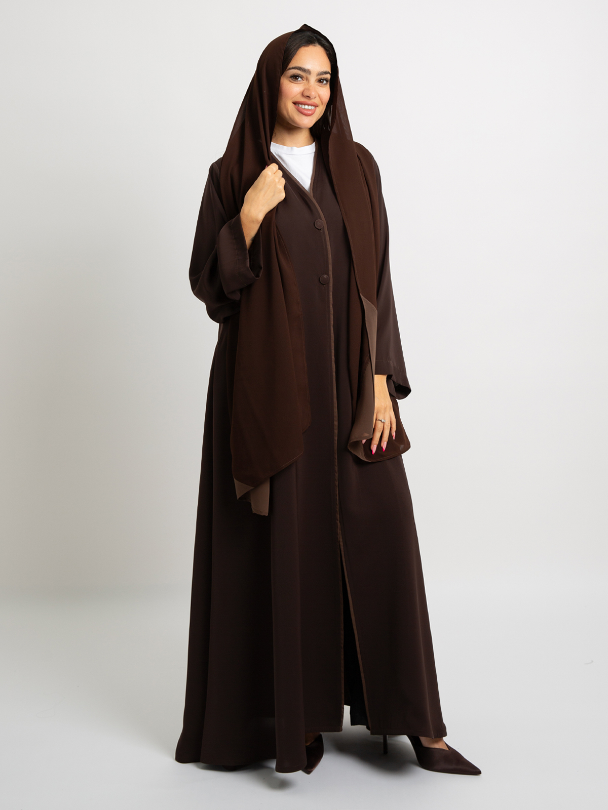 Half Cloche A-Cut Long Closed Abaya in Crepe Fabric