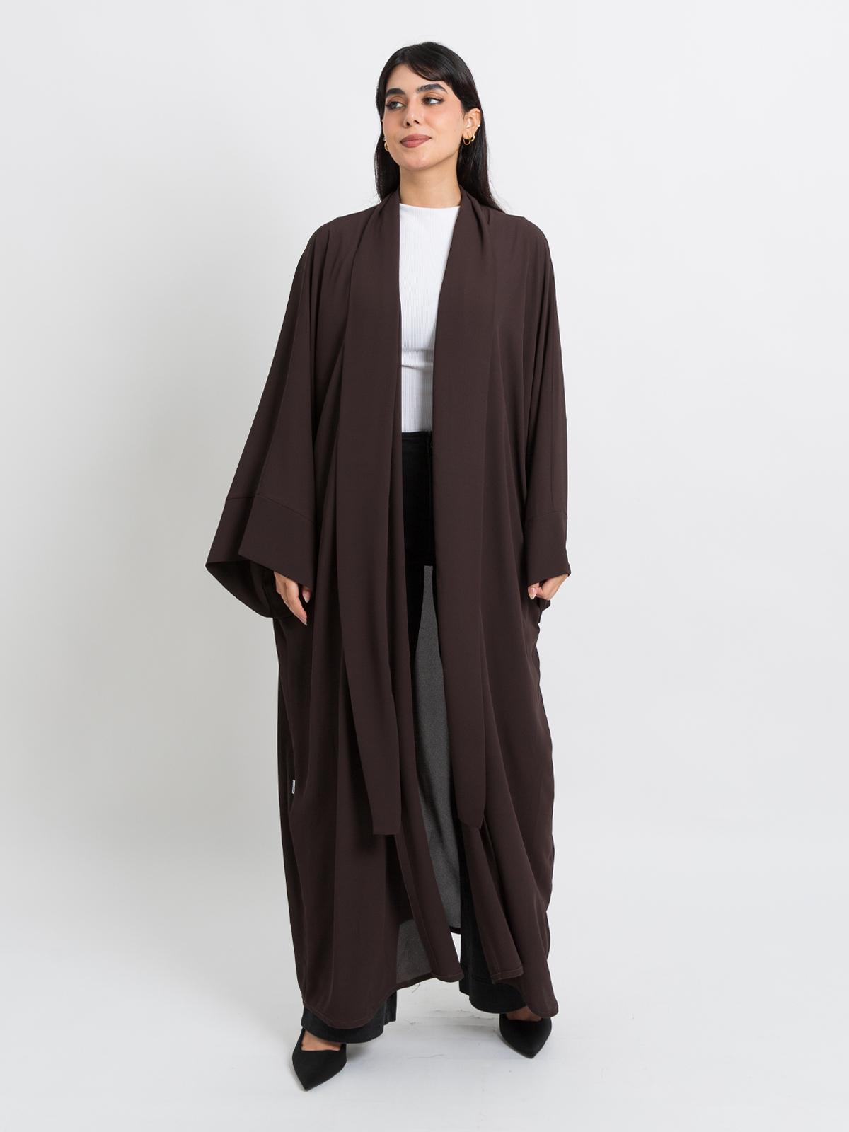 Dark Brown on Dark Brown Flowstyle Abaya Without Tarha