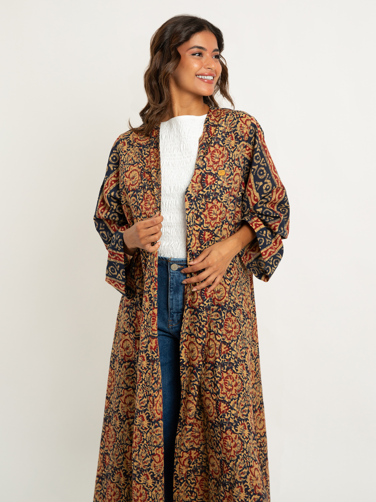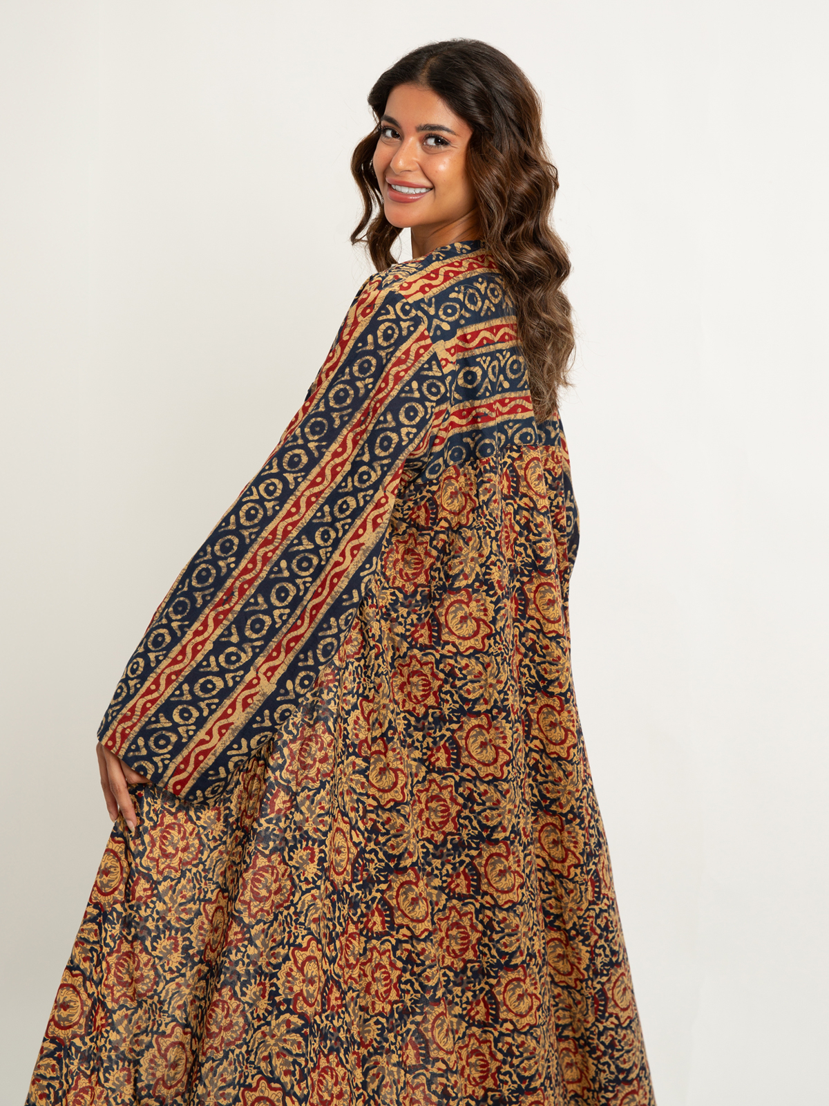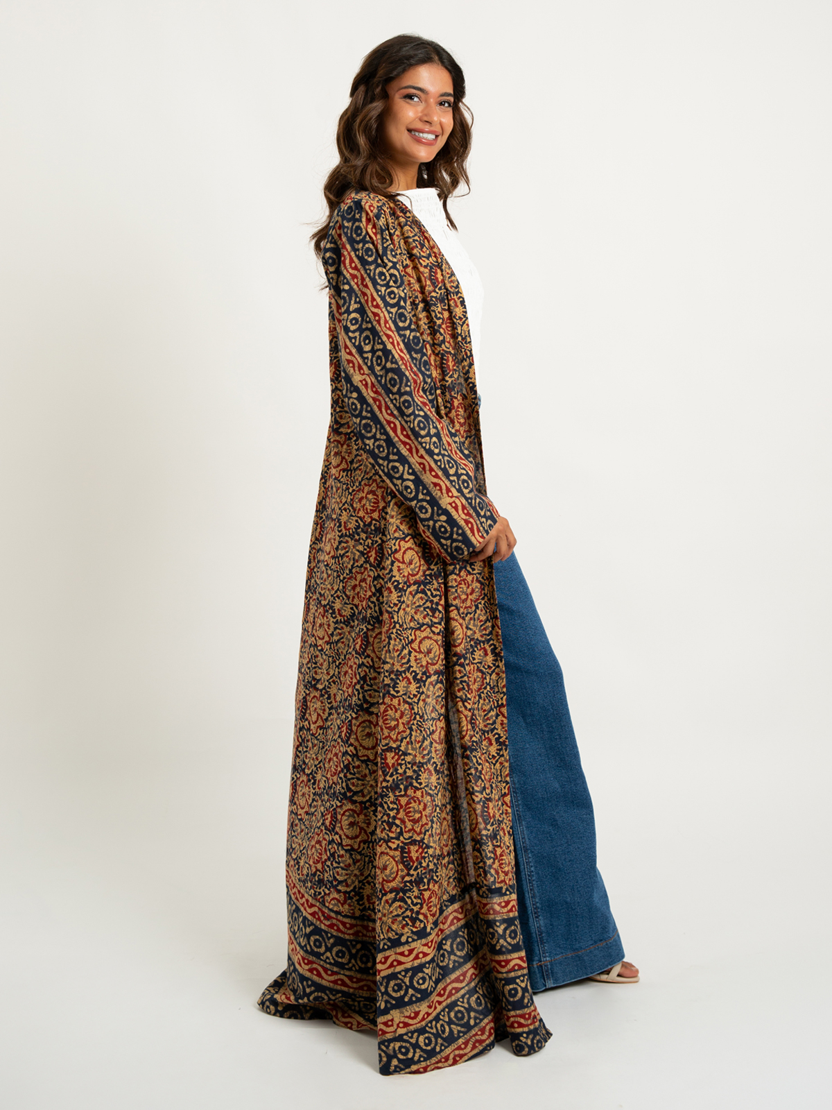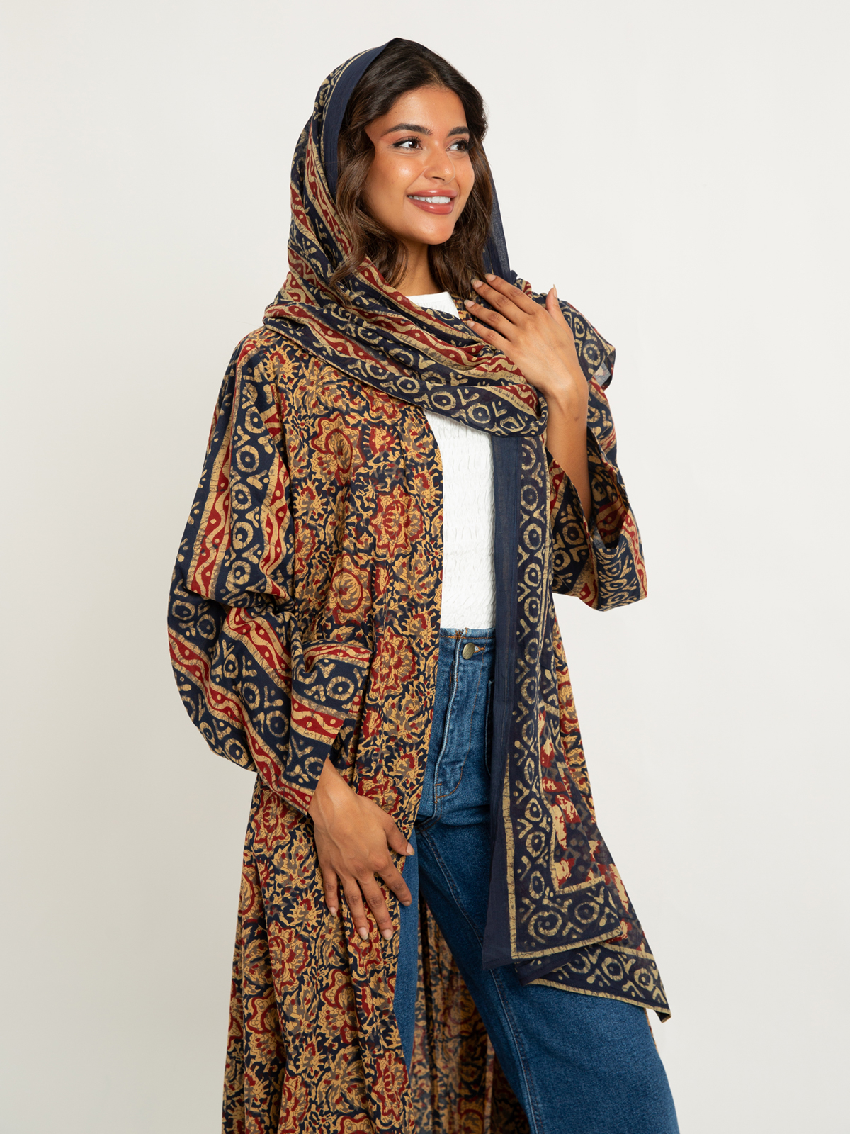 Half Cloche A-Cut Long Open Abaya in Printed Cotton Fabric