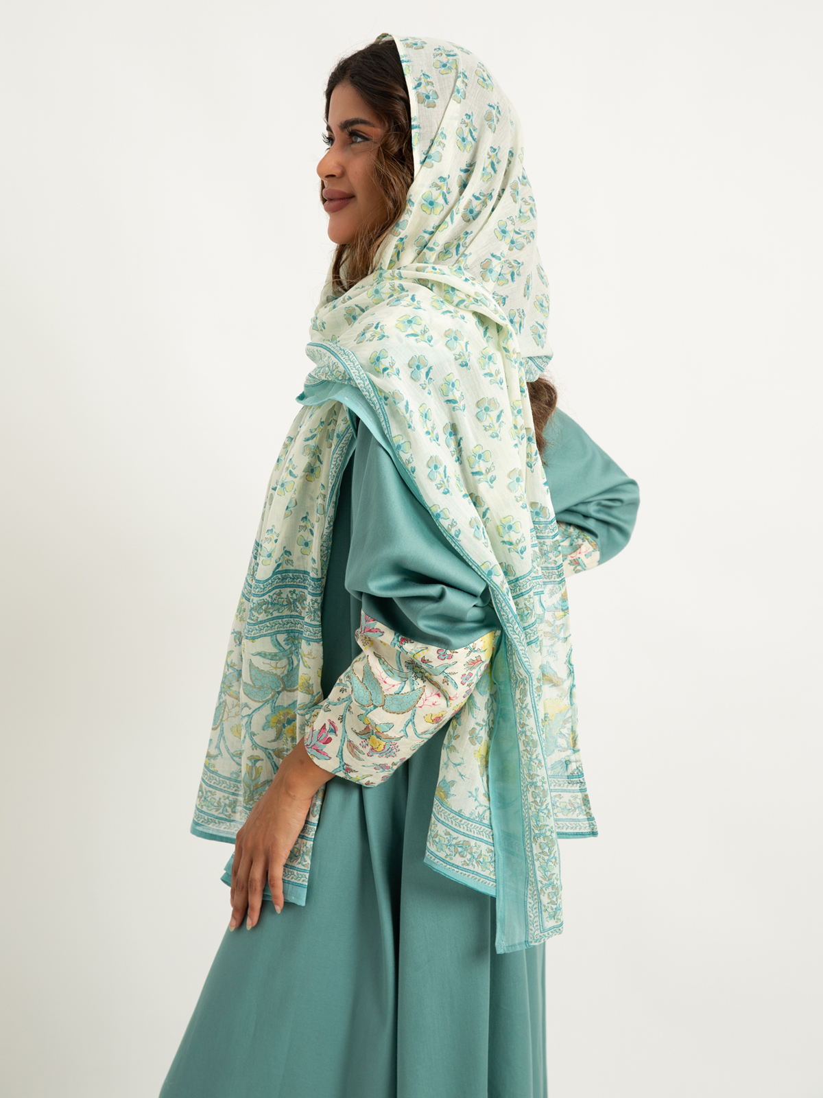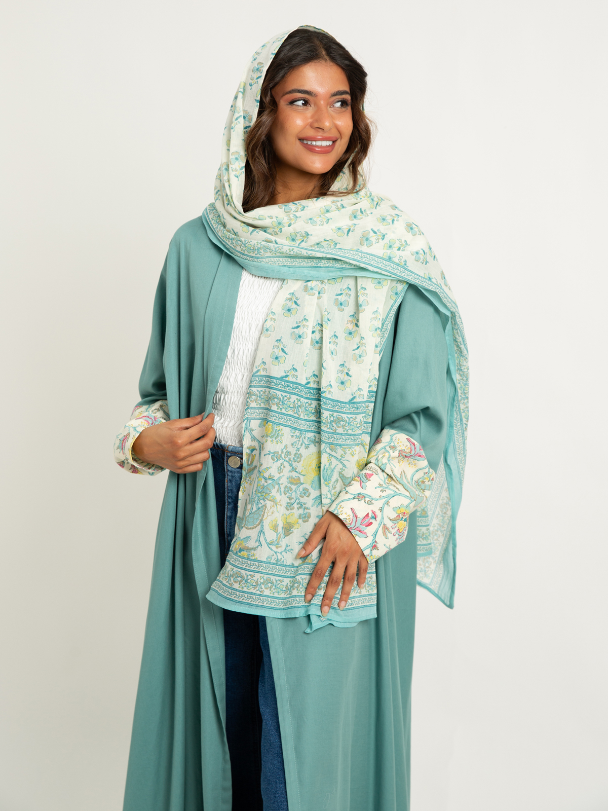 Abaya comes with its matching full printed Cotton Tarha (Headscarf).