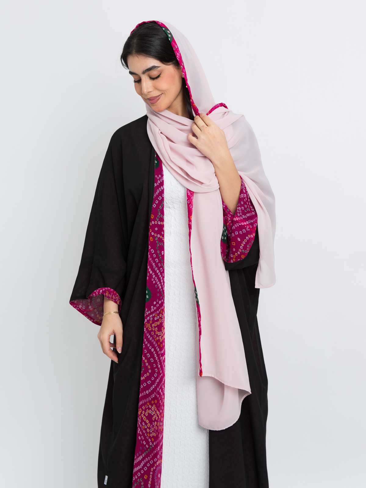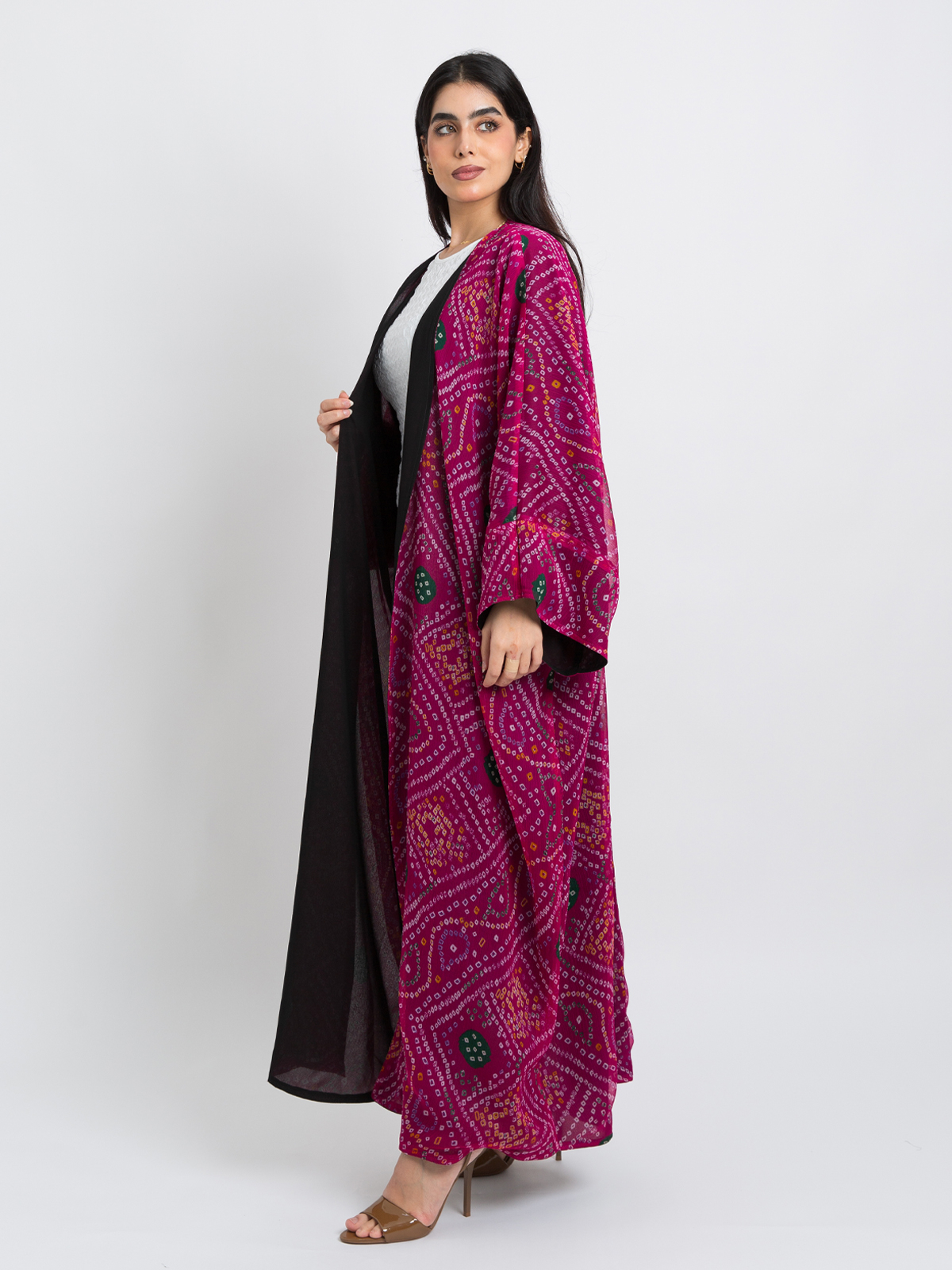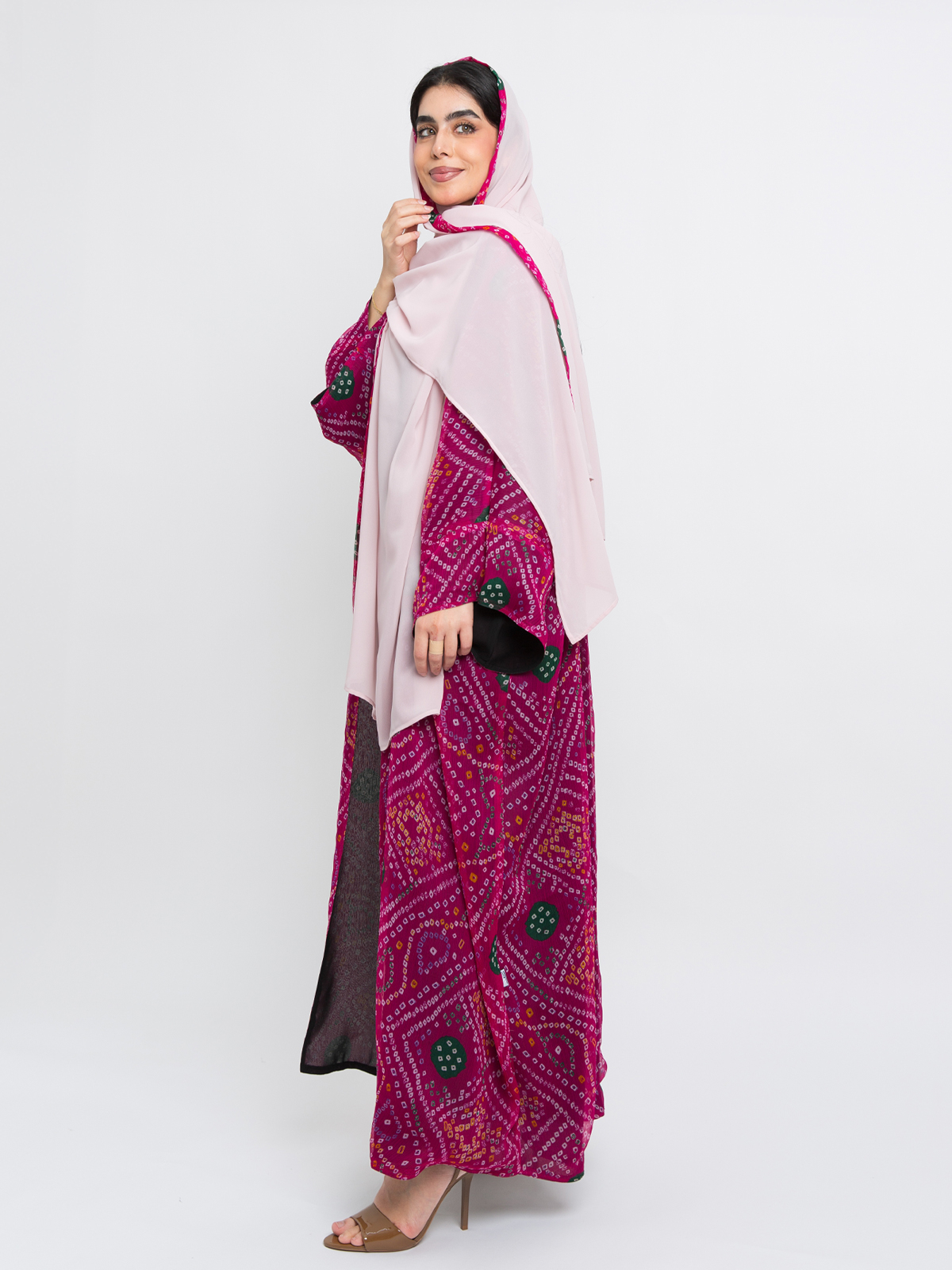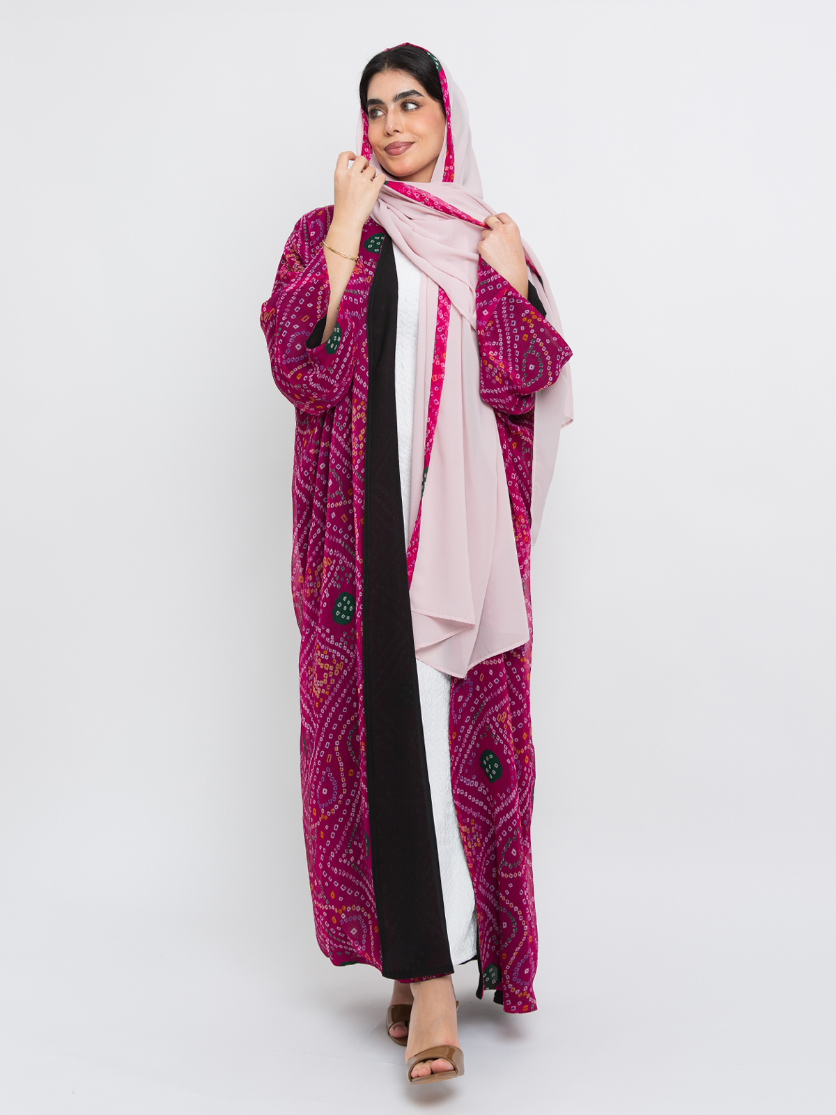Double Face Wide fit Long Open Abaya in Printed Chiffon Fabric