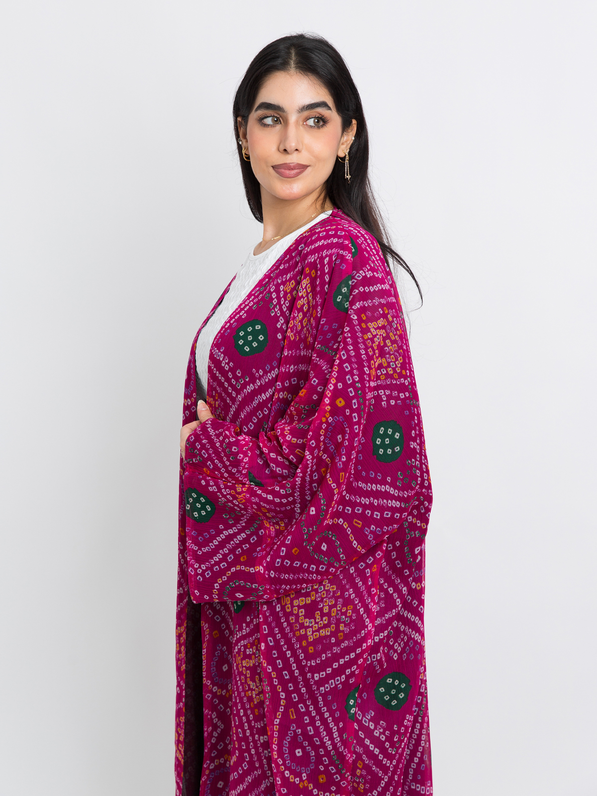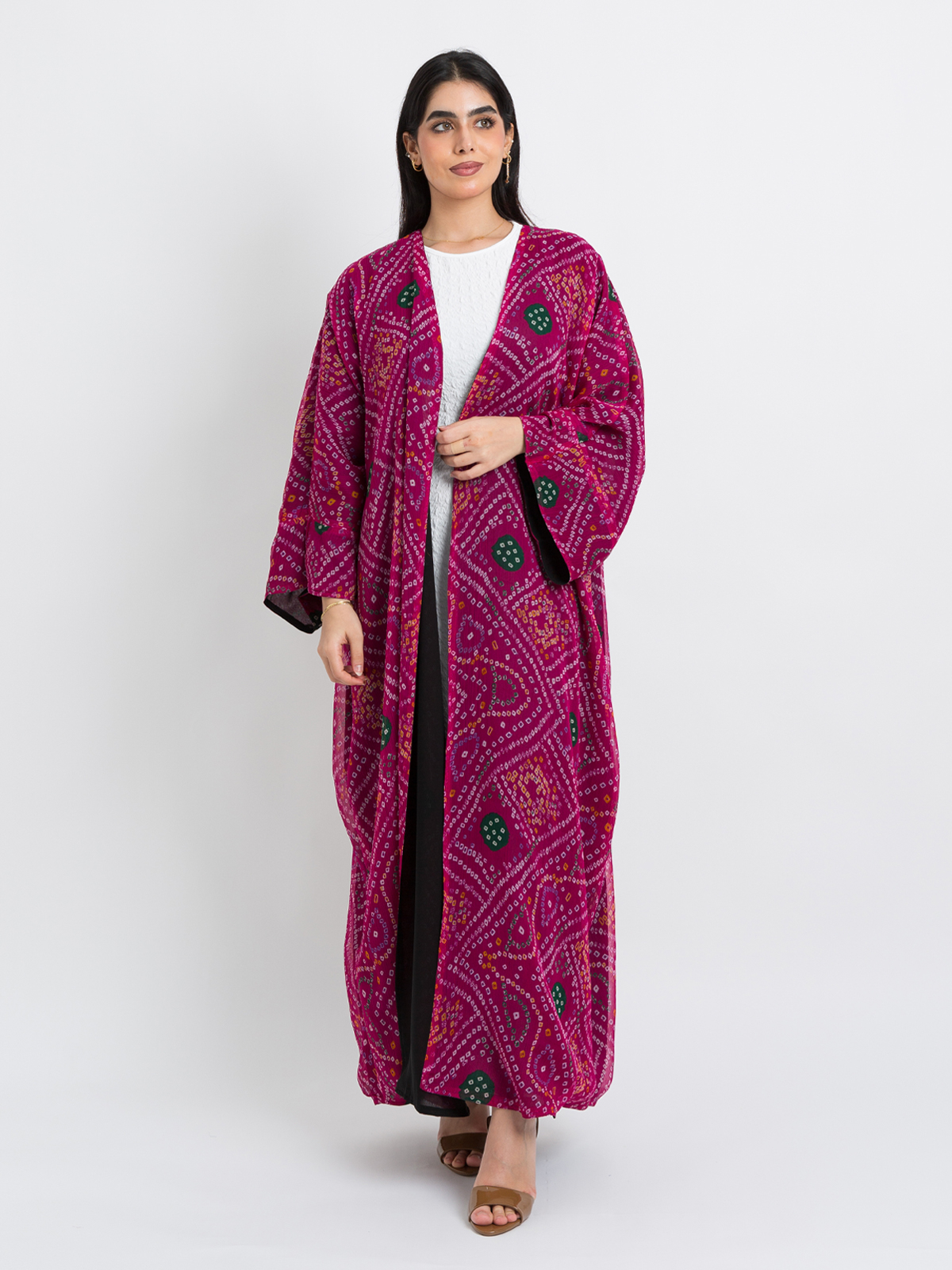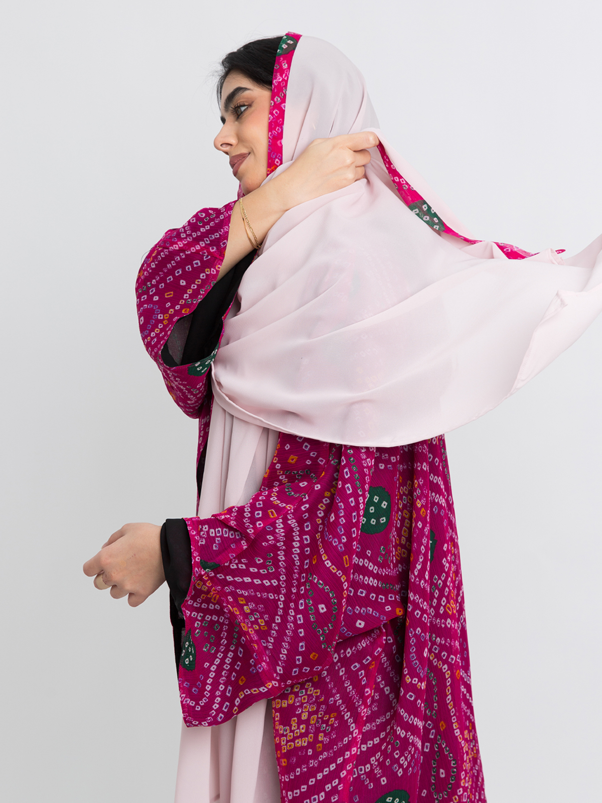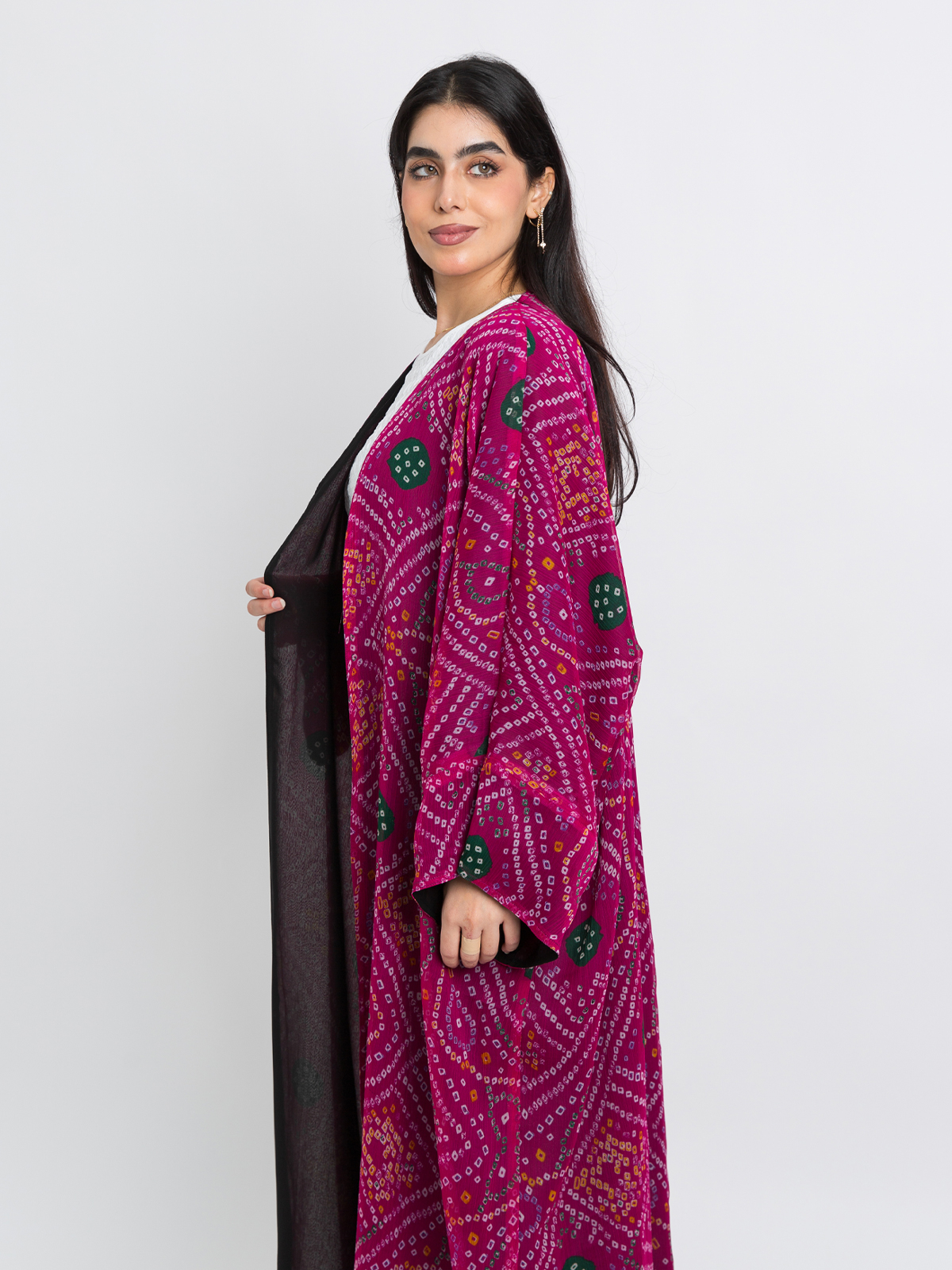 Double Face Wide fit Long Open Abaya in Printed Chiffon Fabric