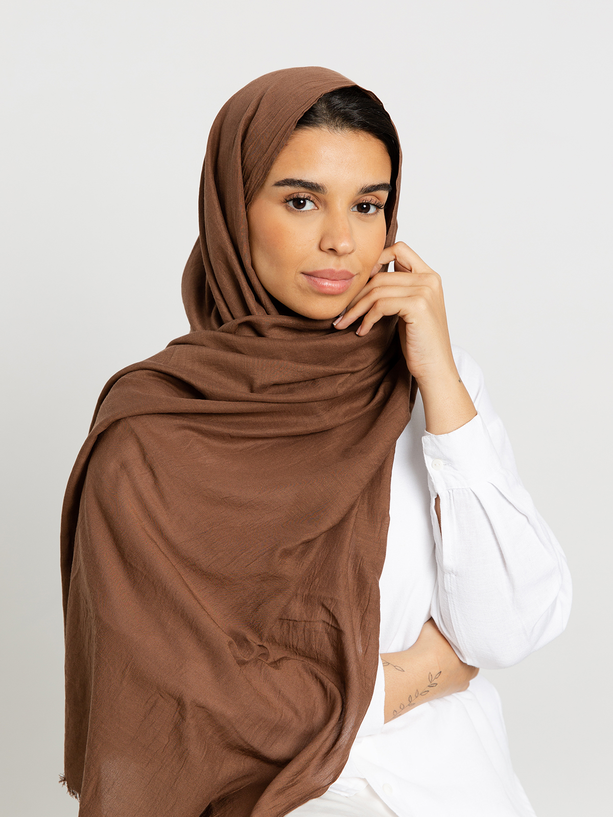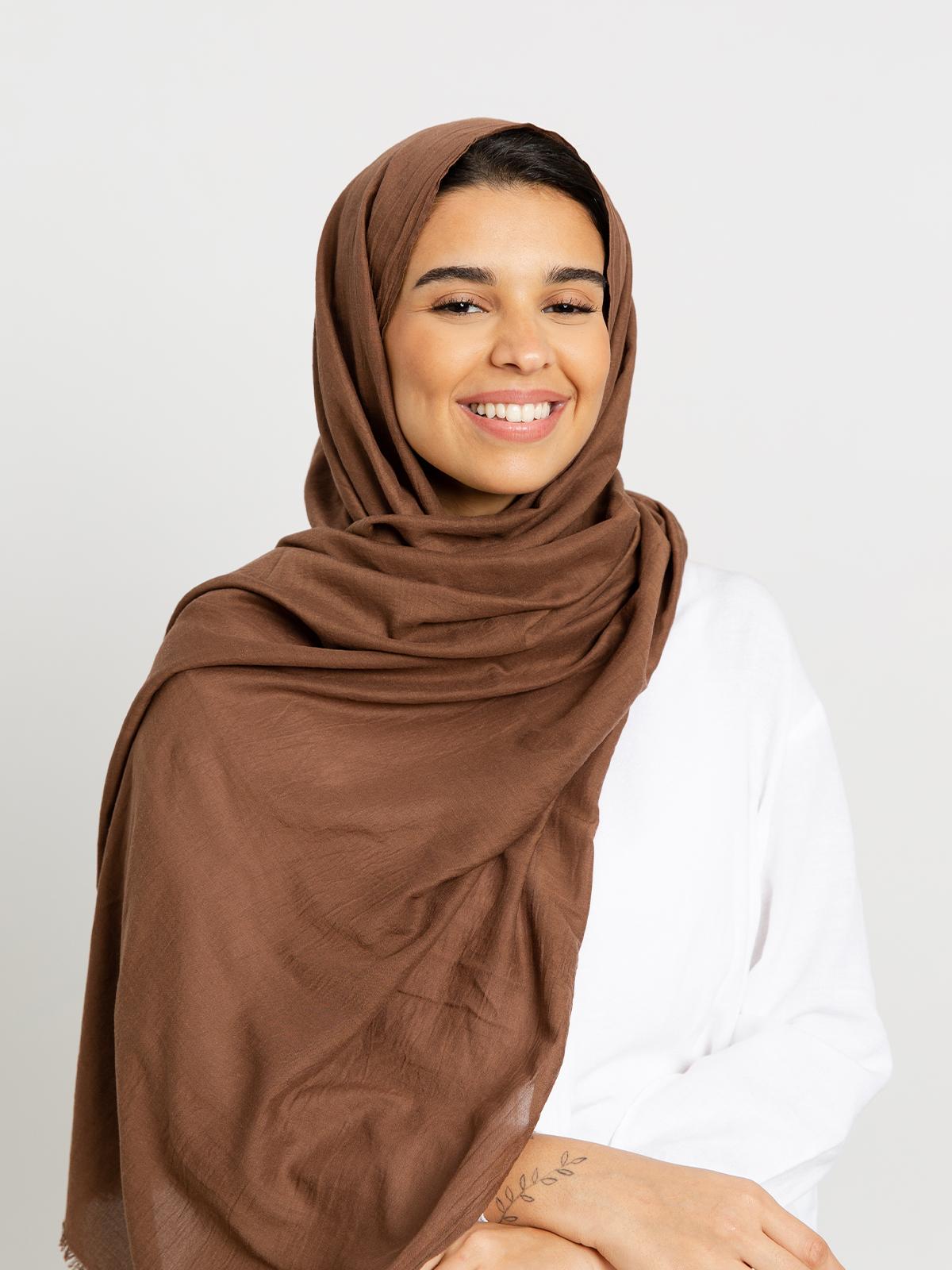 Super Light and Comfy, the basic plain cotton Tarha (Headscarf). Your go-to Tarha for everyday wear, made of 40% cotton. Easy to maintain and light to wear with a steady wrap aroud the head.
