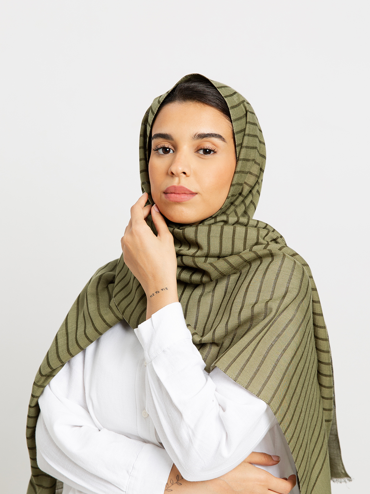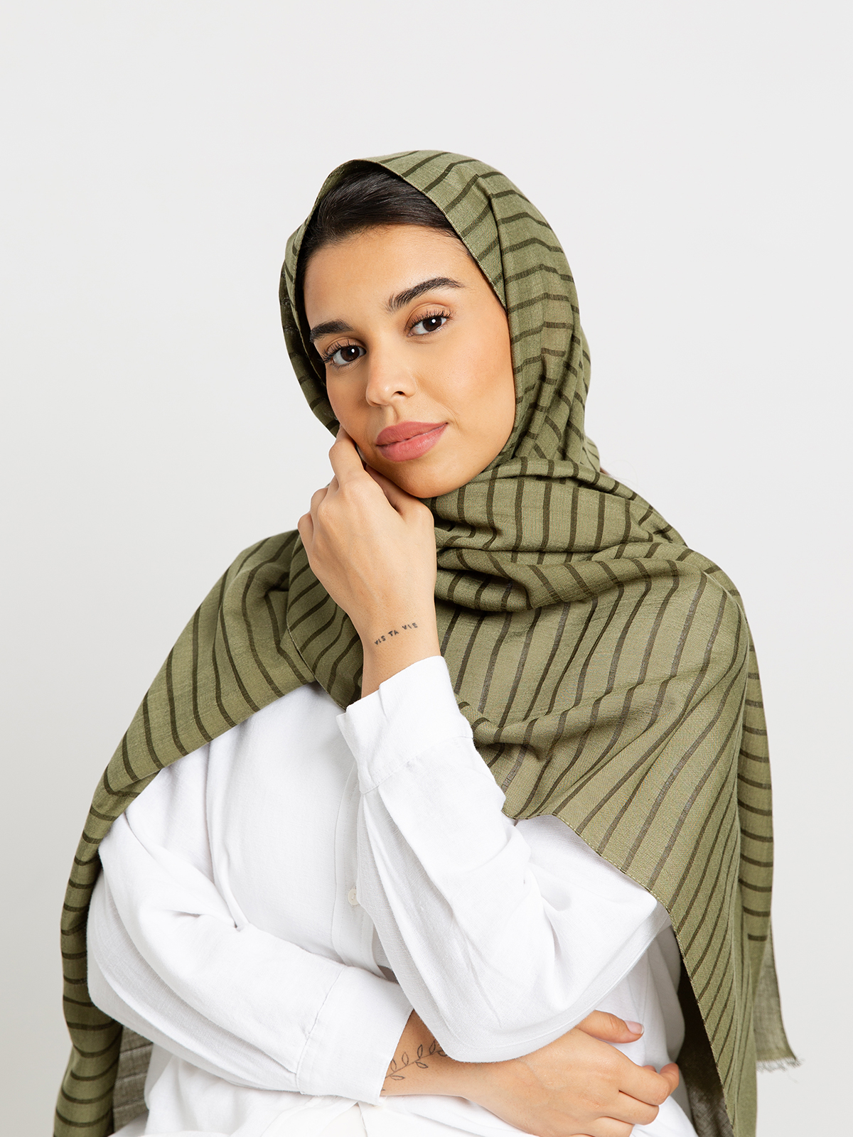 The striped cotton Tarha (Headscarf) is one of the basic tarhas with a light comfy fabric for your daily looks. Made of 40% cotton and very practical to wear due to the light fabric and perfect size for one wrap around the head.