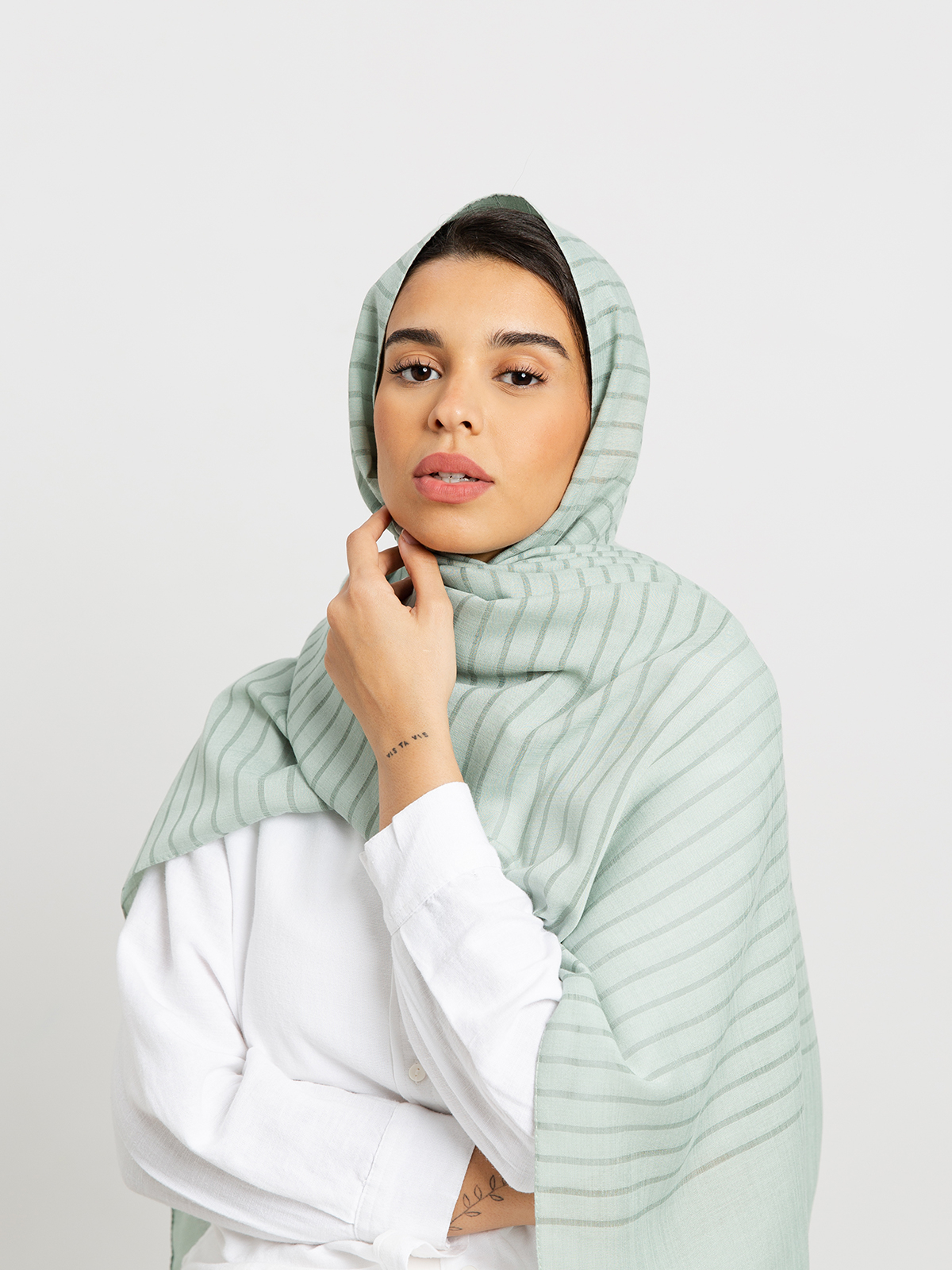 The striped cotton Tarha (Headscarf) is one of the basic tarhas with a light comfy fabric for your daily looks. Made of 40% cotton and very practical to wear due to the light fabric and perfect size for one wrap around the head.