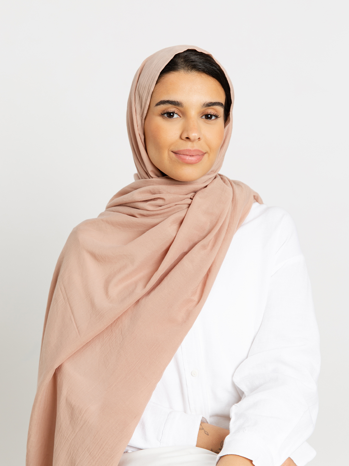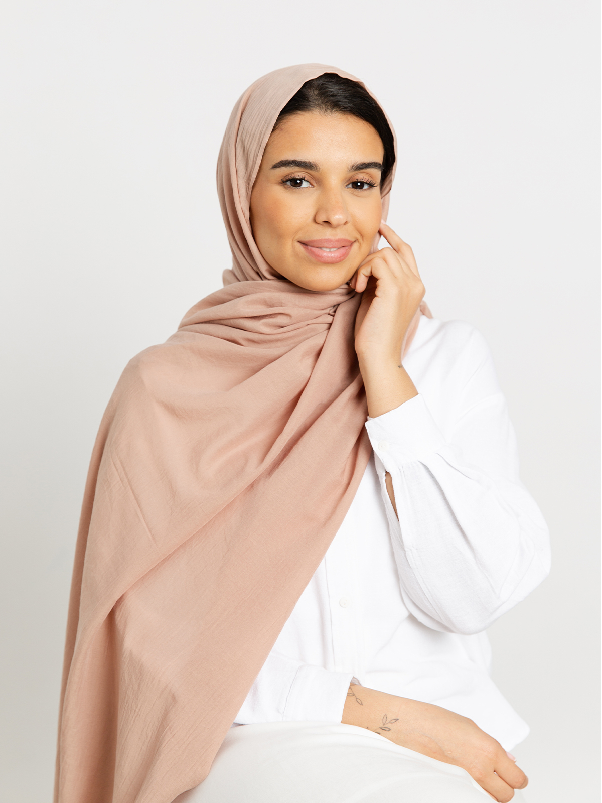 Super Light and Comfy, the basic plain cotton Tarha (Headscarf). Your go-to Tarha for everyday wear, made of 40% cotton. Easy to maintain and light to wear with a steady wrap aroud the head.