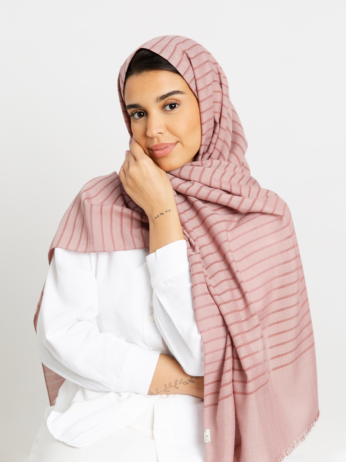 The striped cotton Tarha (Headscarf) is one of the basic tarhas with a light comfy fabric for your daily looks. Made of 40% cotton and very practical to wear due to the light fabric and perfect size for one wrap around the head.