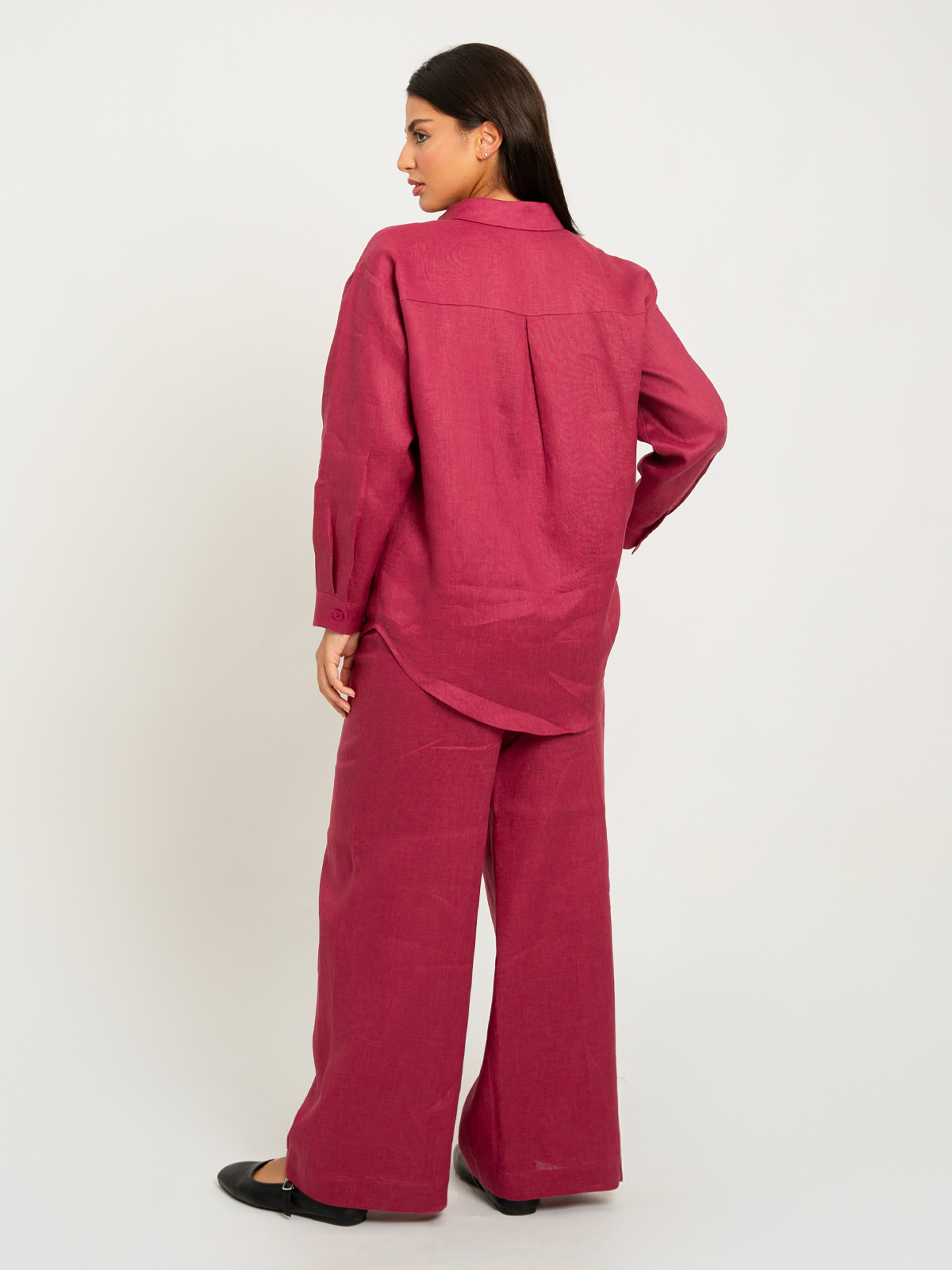 2-Piece Set of Loose-fit Buttoned Shirt and Pants in Linen Fabric