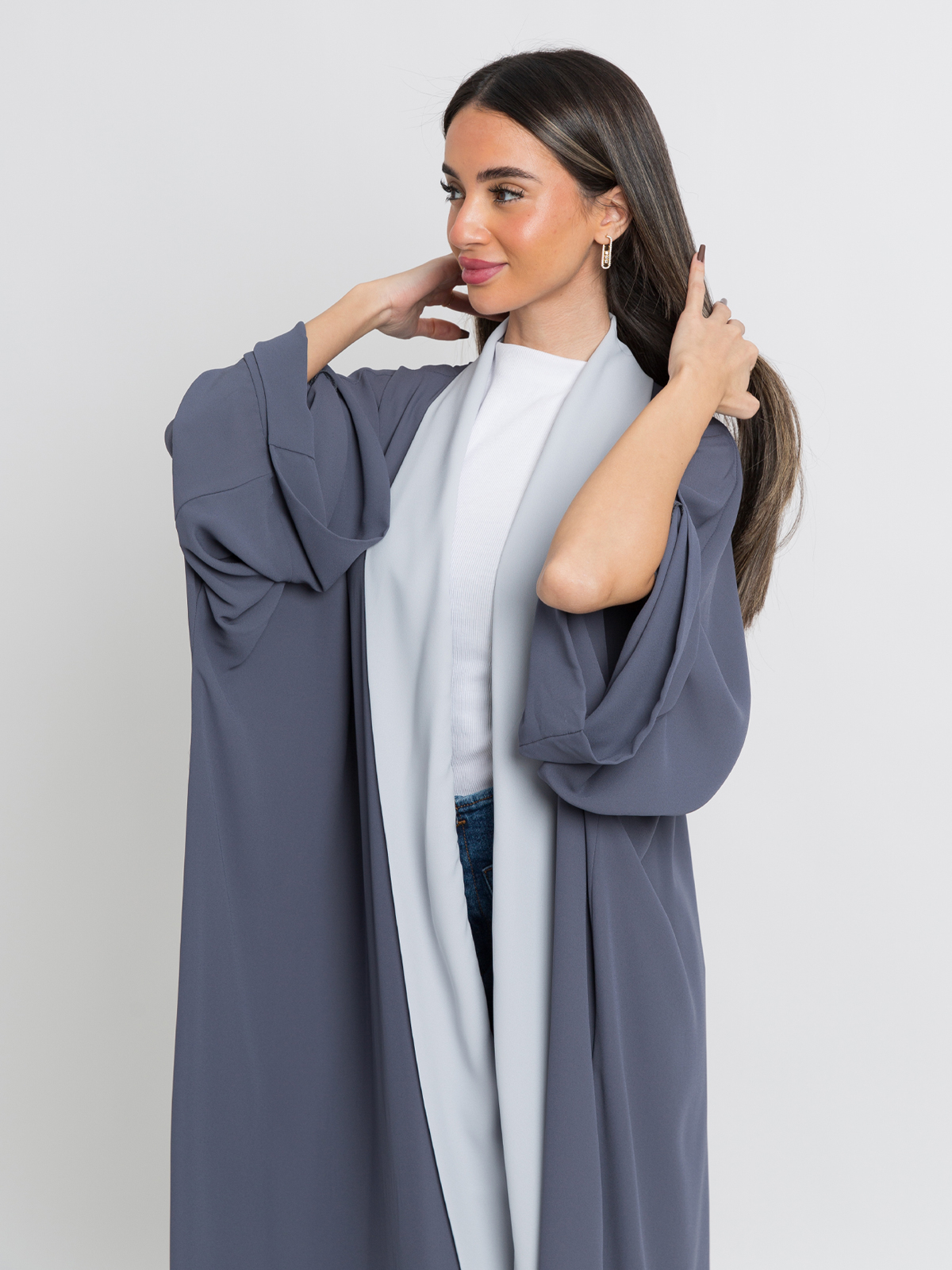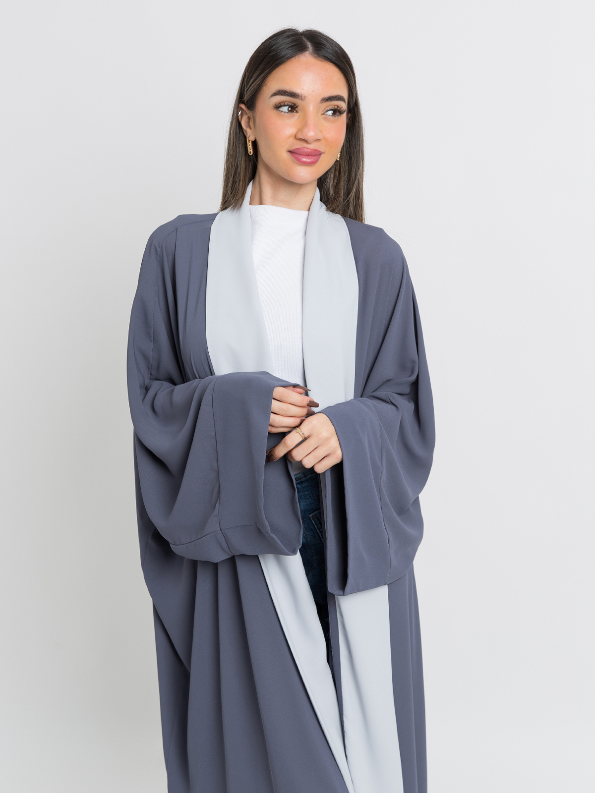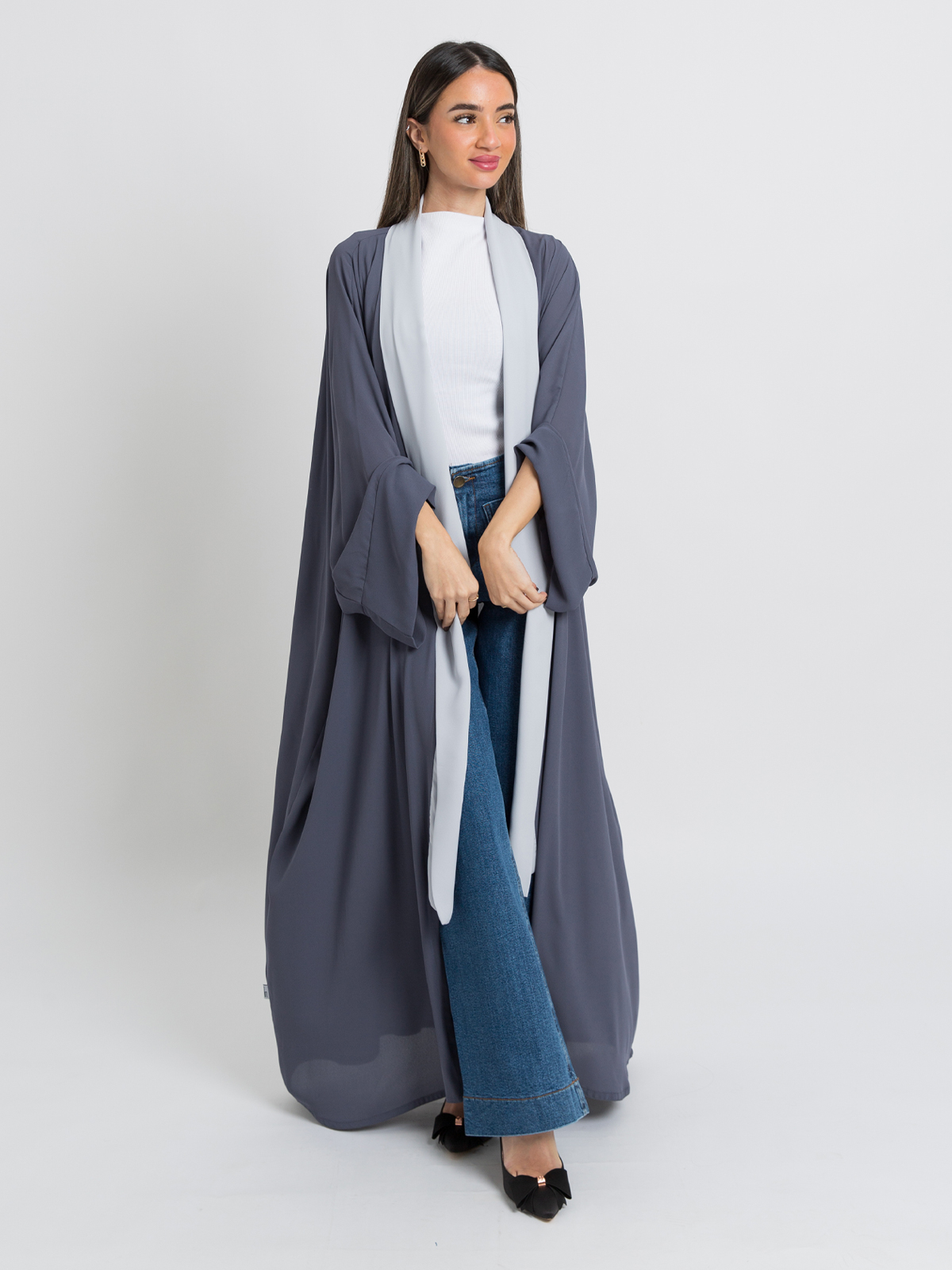 Gray on Light Gray Flowstyle Abaya