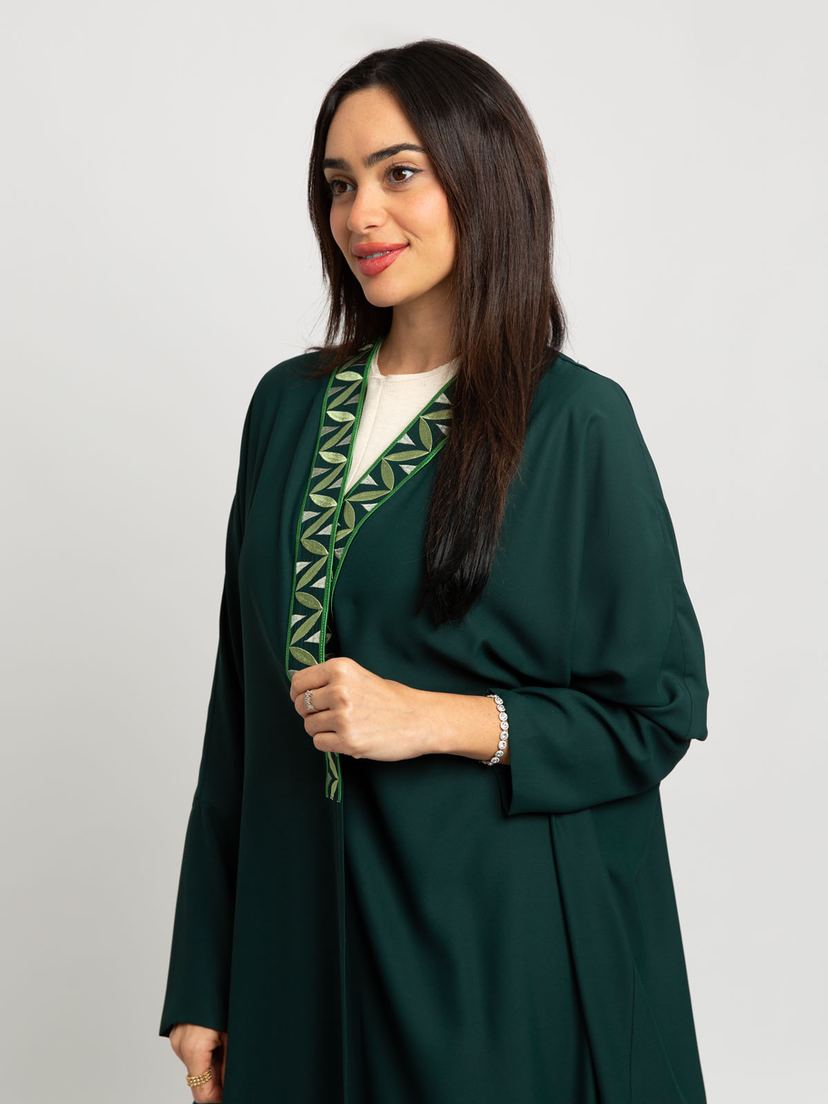 Half Bisht Long Open Abaya in Embroidered Crepe Fabric