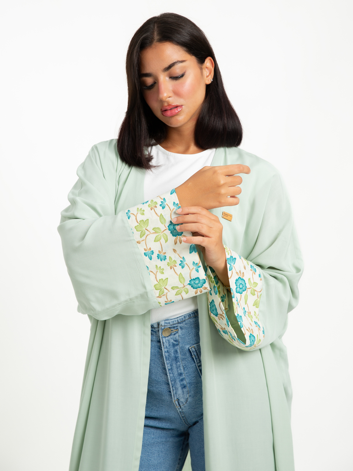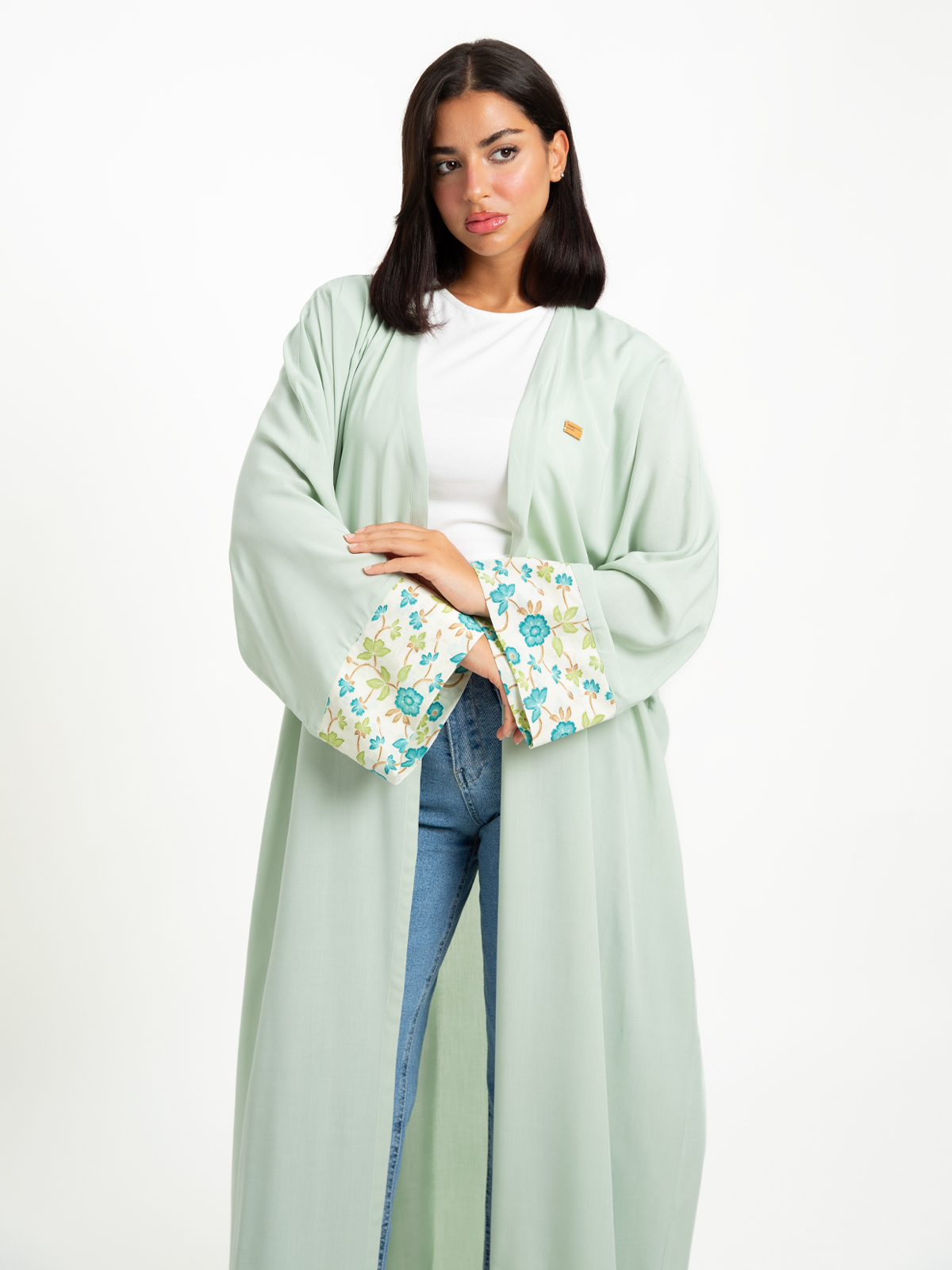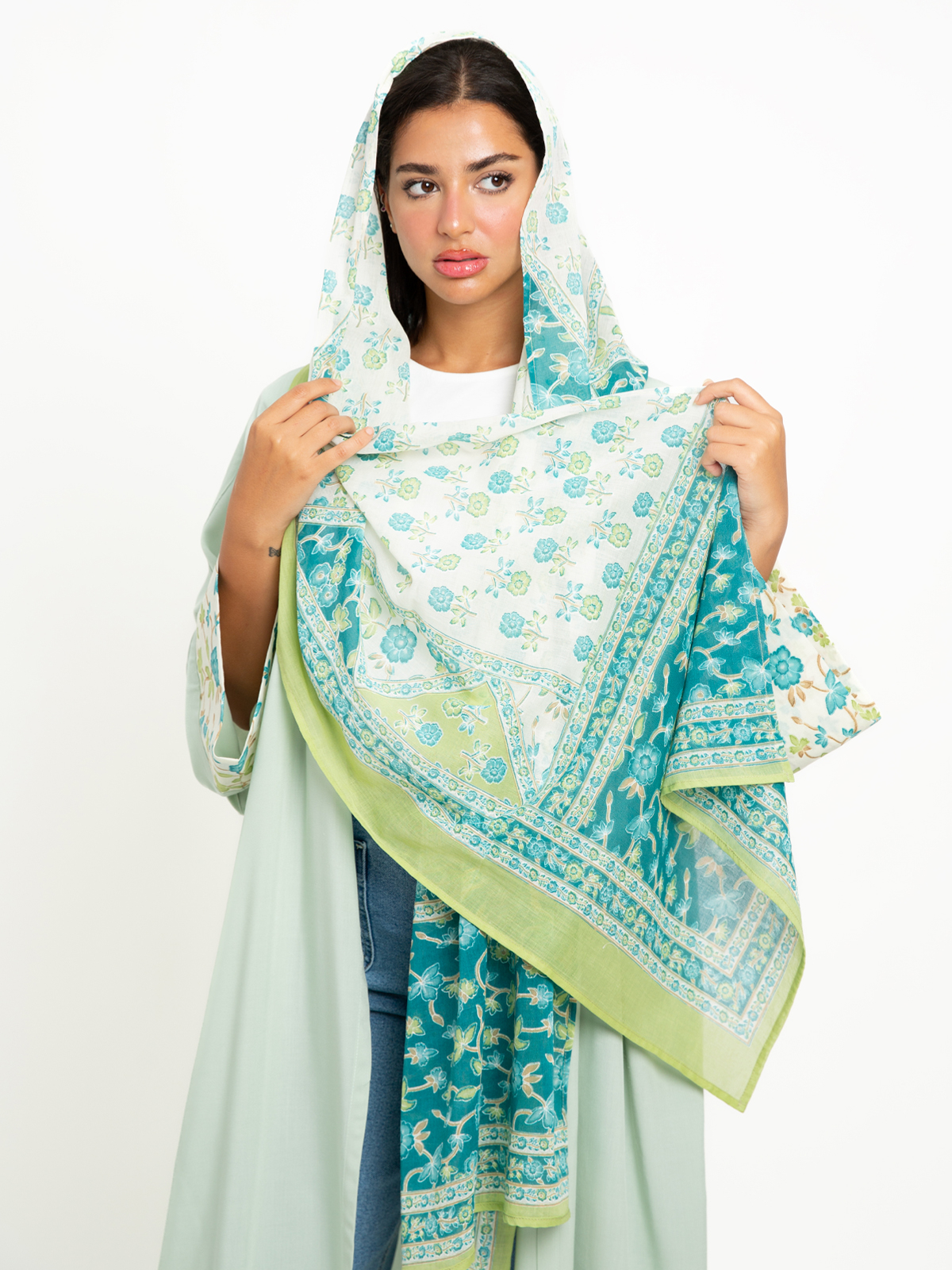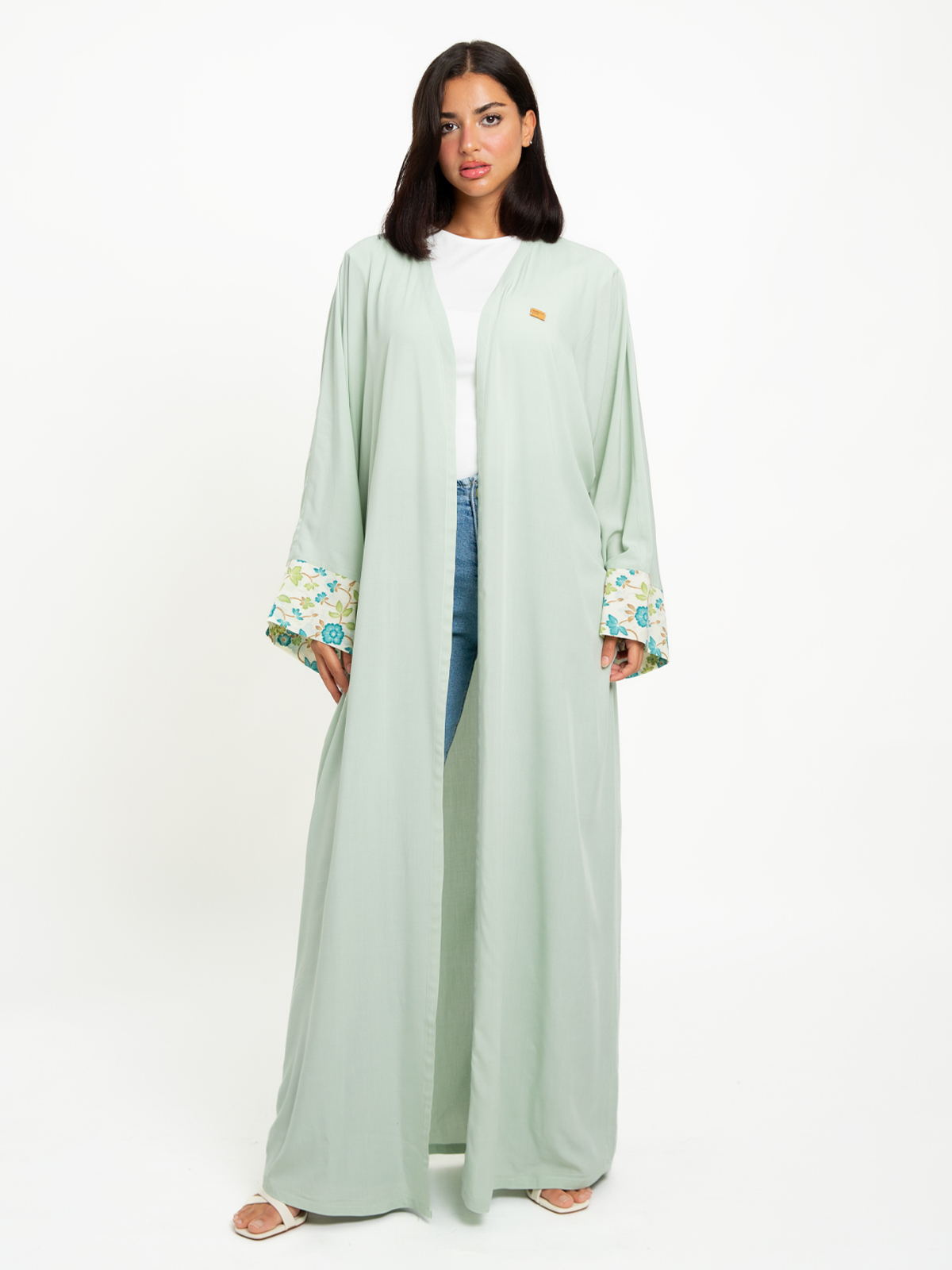 Wide-fit Long Open Abaya in Printed Cotton Fabric
