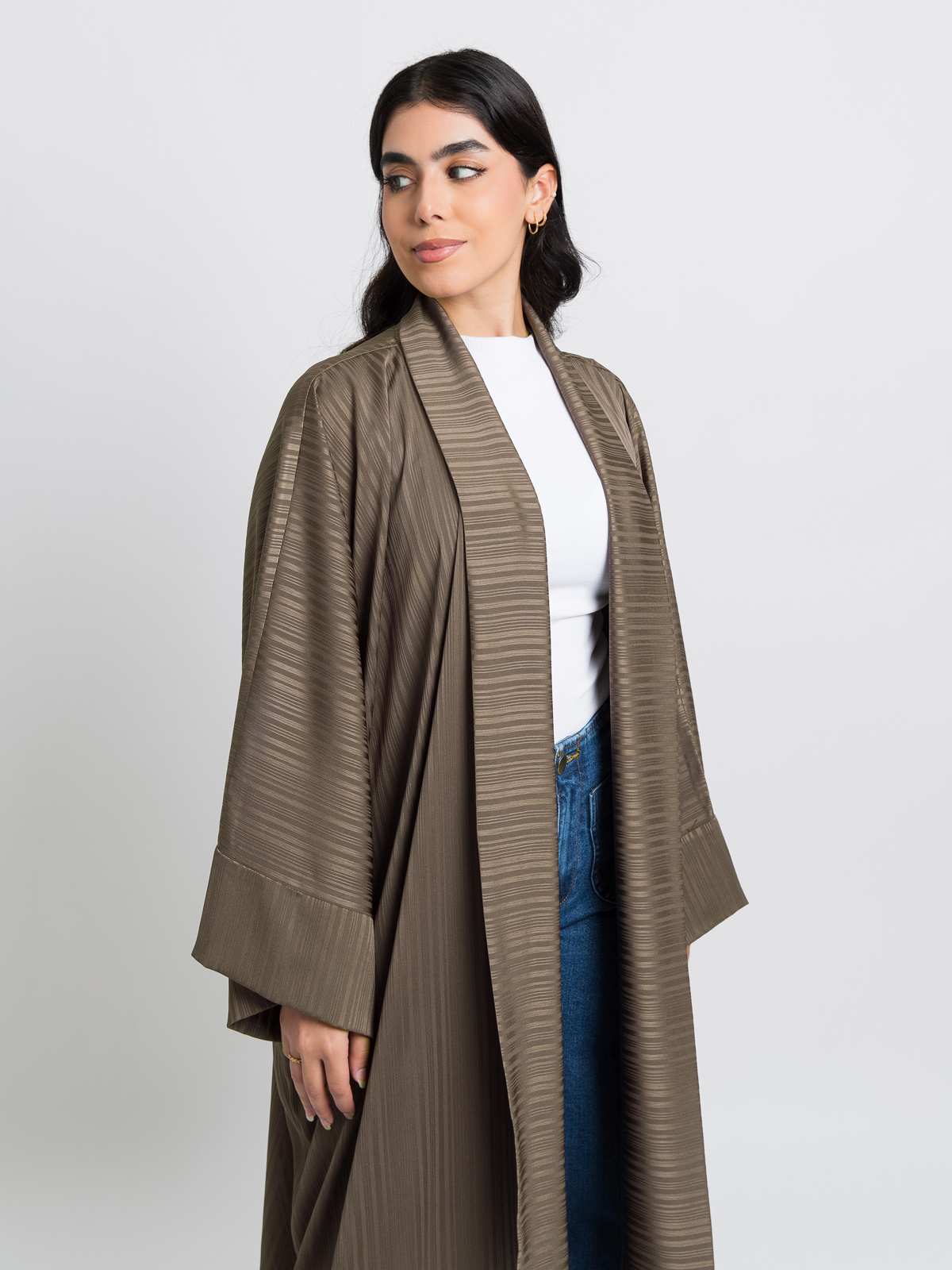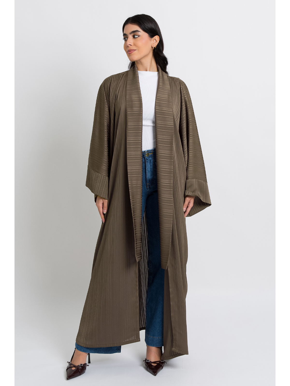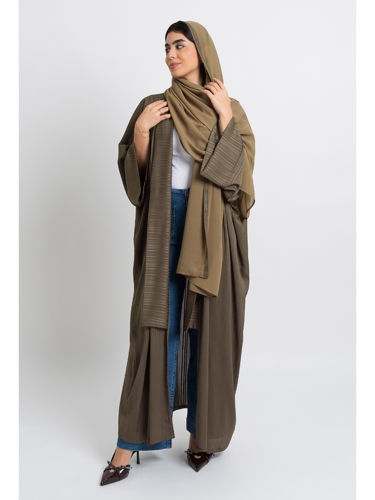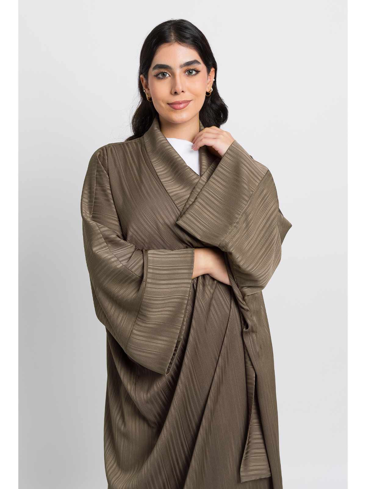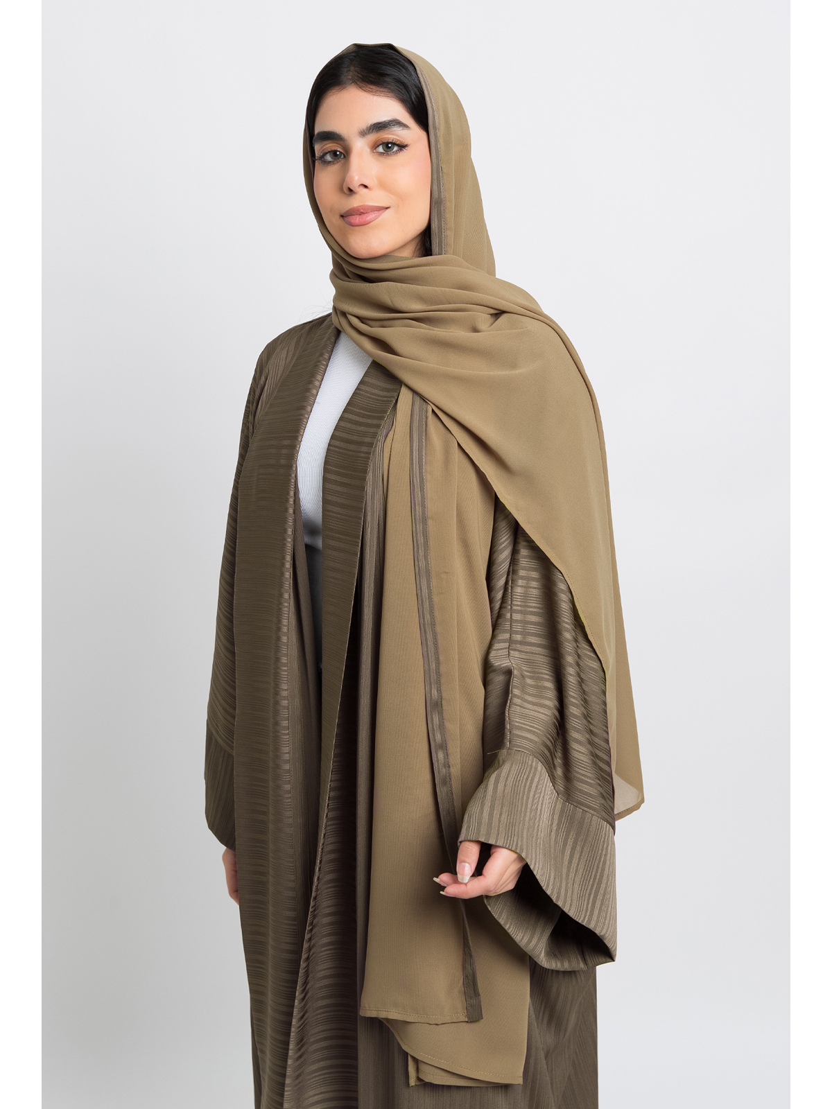 Plain Wide-Fit Long Open Abaya in Light Fabric