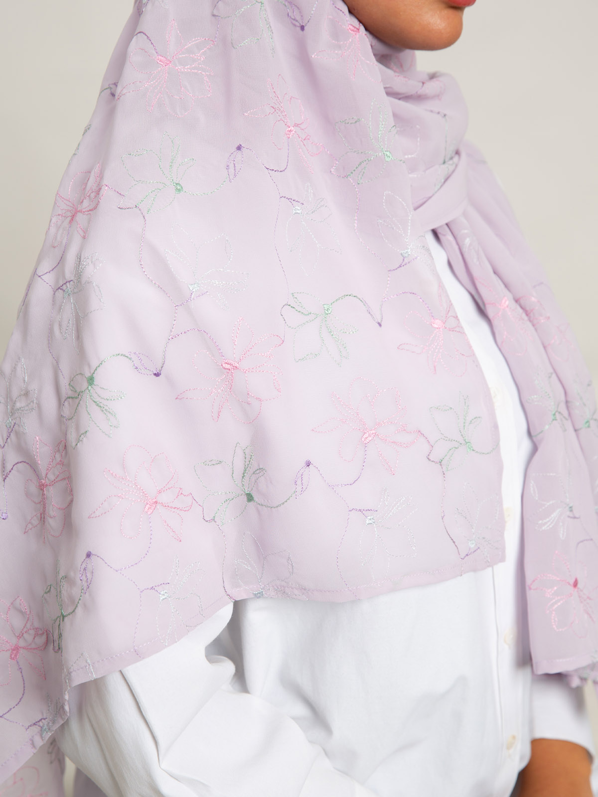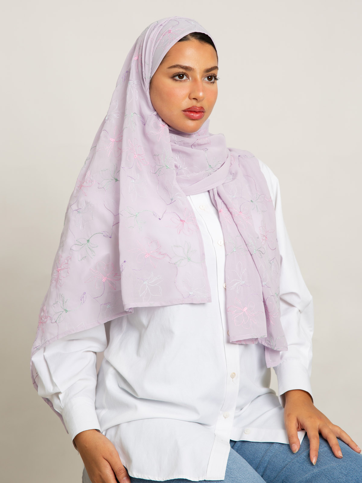 From the heart of our Nourishing 10 Collection comes a hijab that continues the story, a limited-edition laser tarha, delicately embroidered with soft pastel flowers.