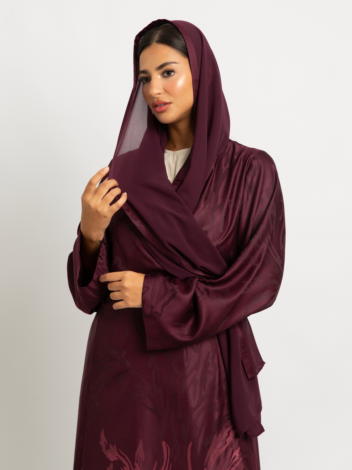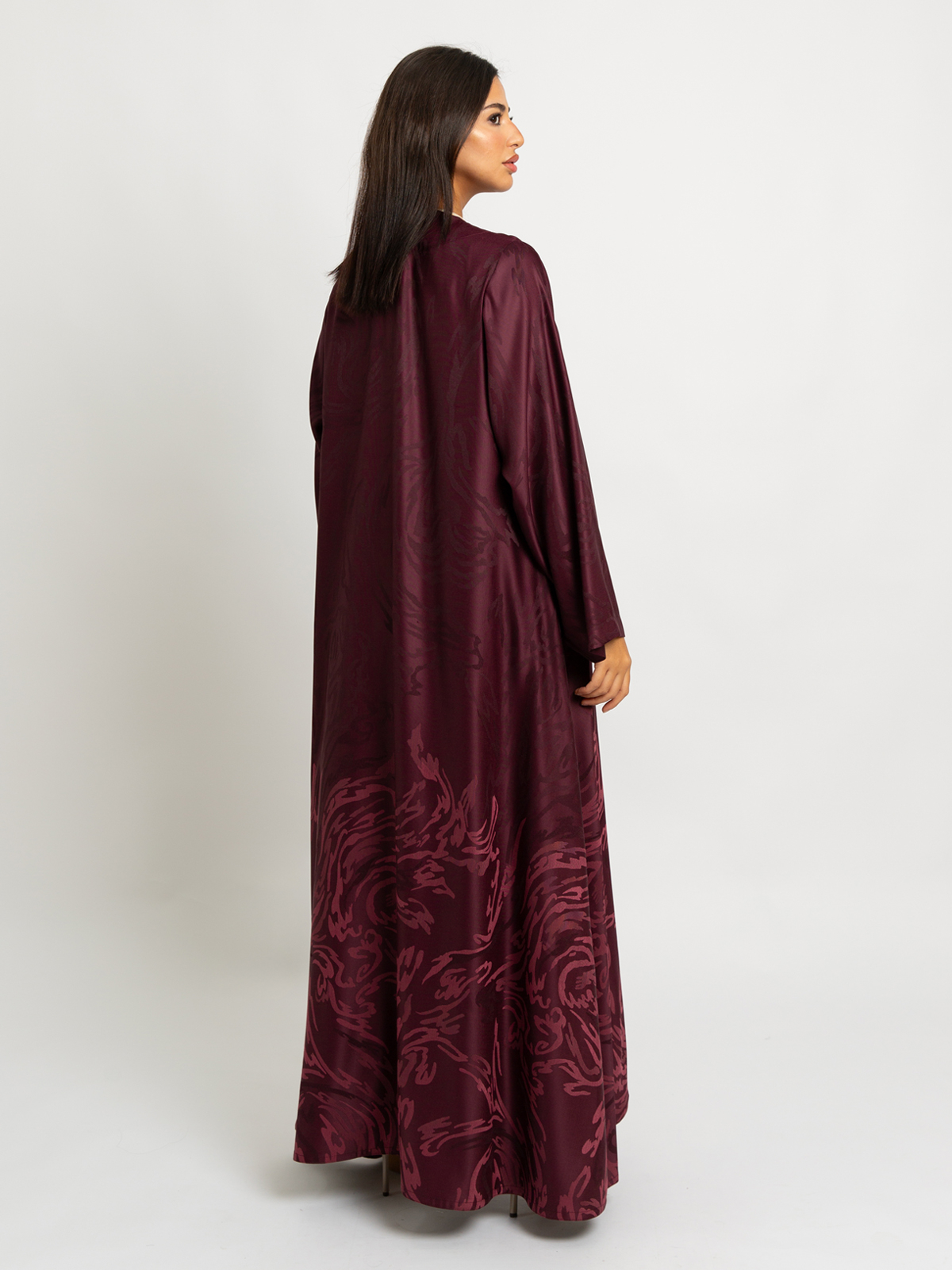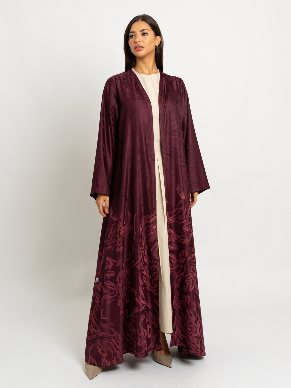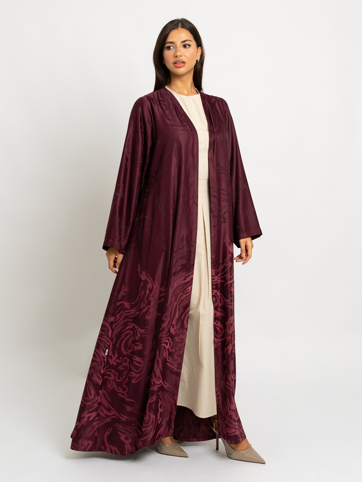 Half Cloche A-Cut Long Open Abaya in Mixed Woven Fabric