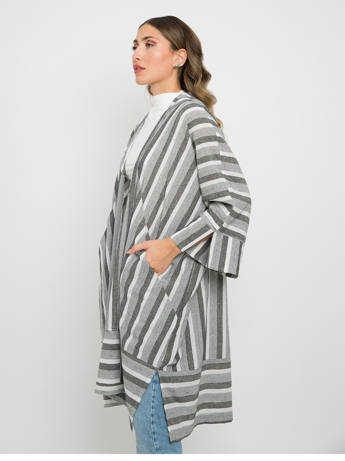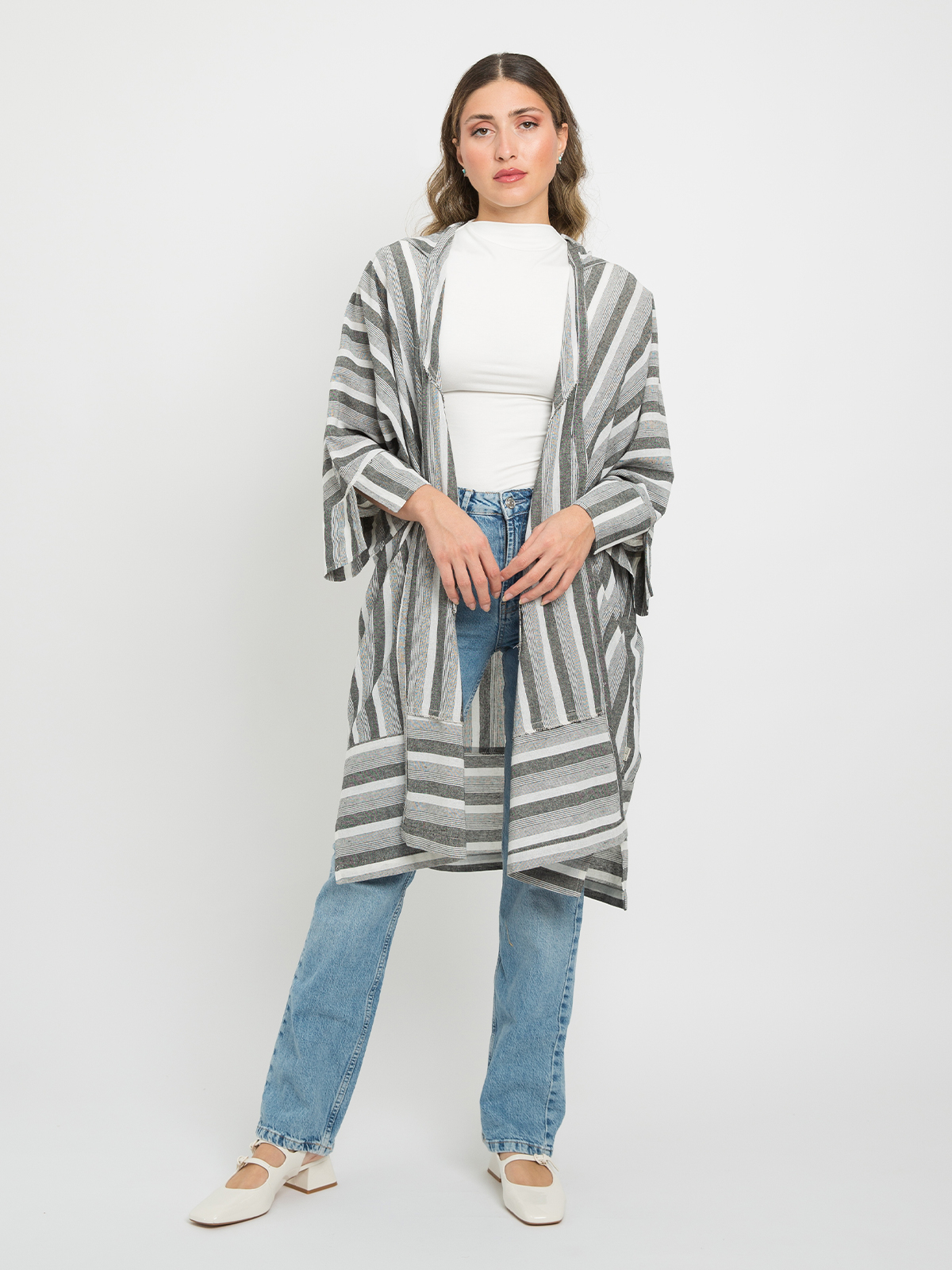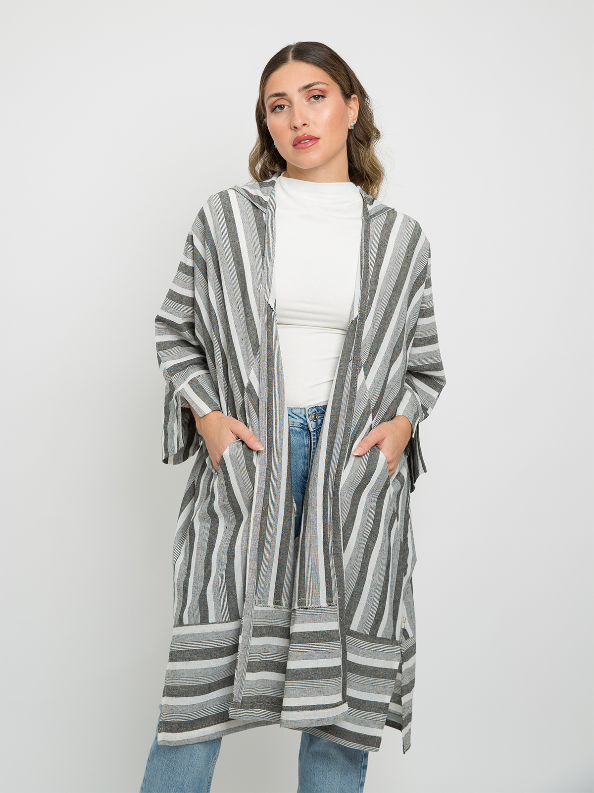 Mexico - Midi Hoodie Kimono in Linen Fabric
