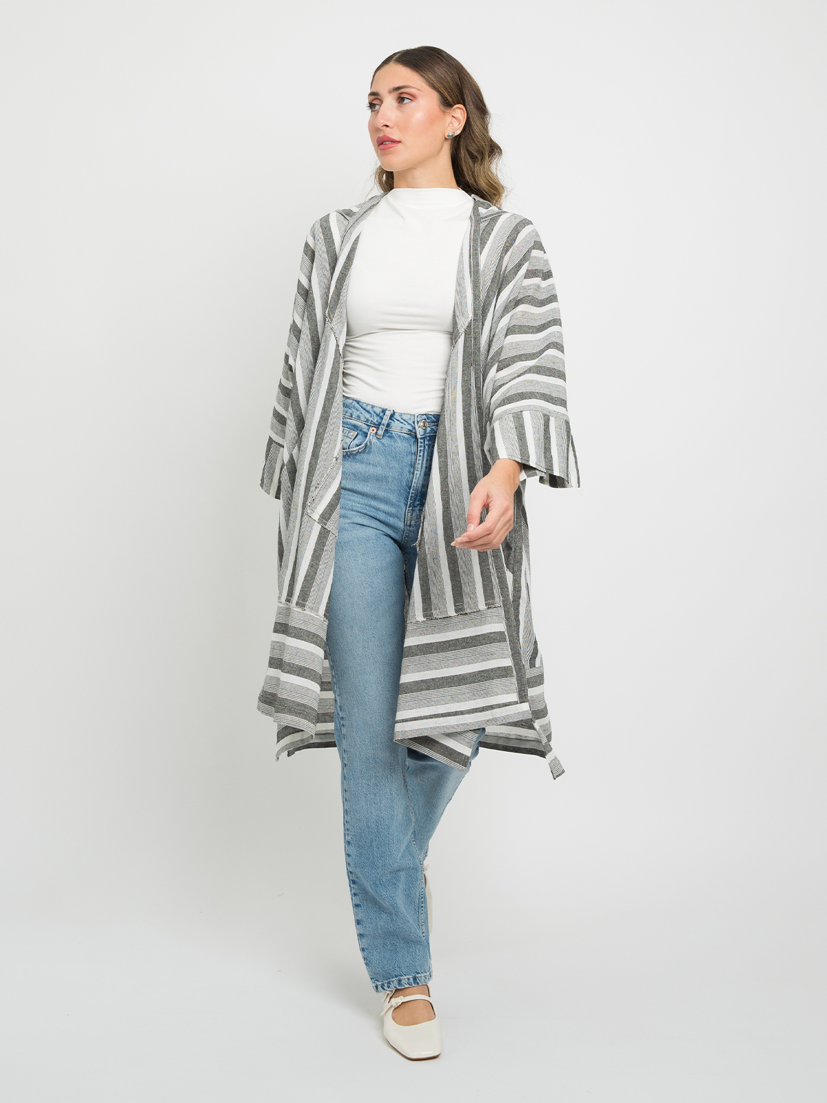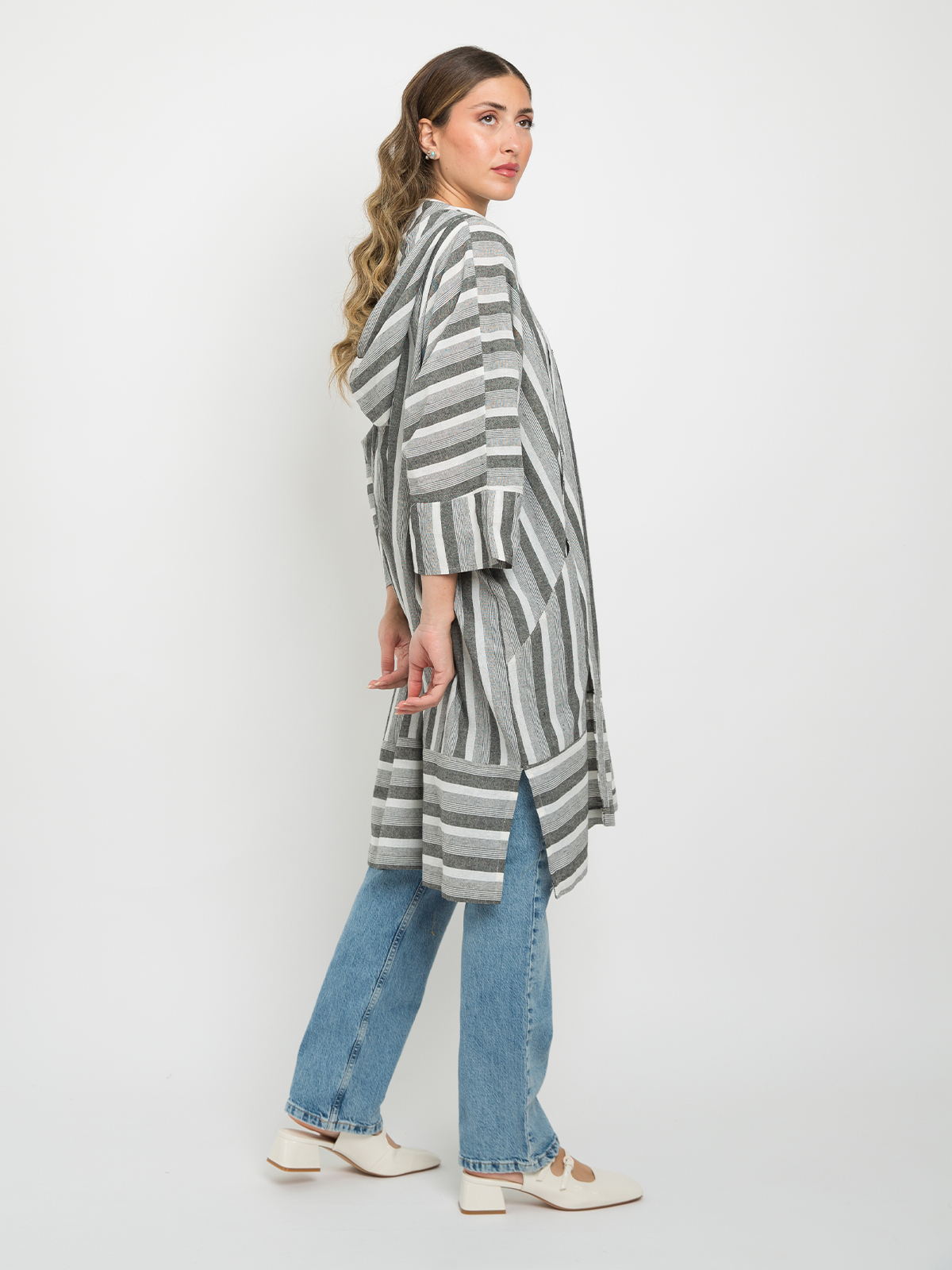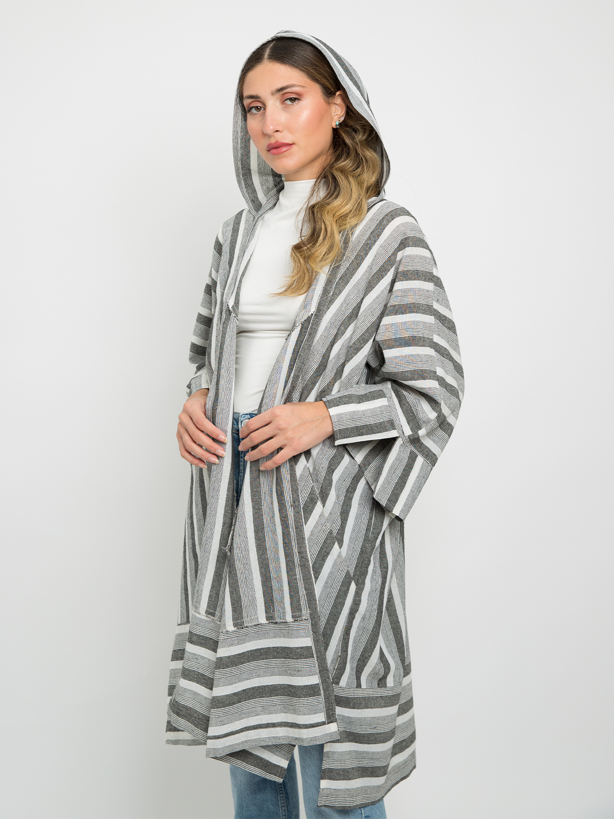 Mexico - Midi Hoodie Kimono in Linen Fabric