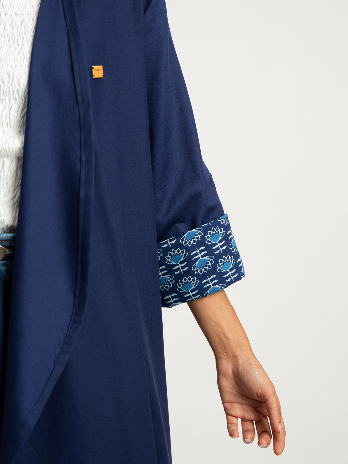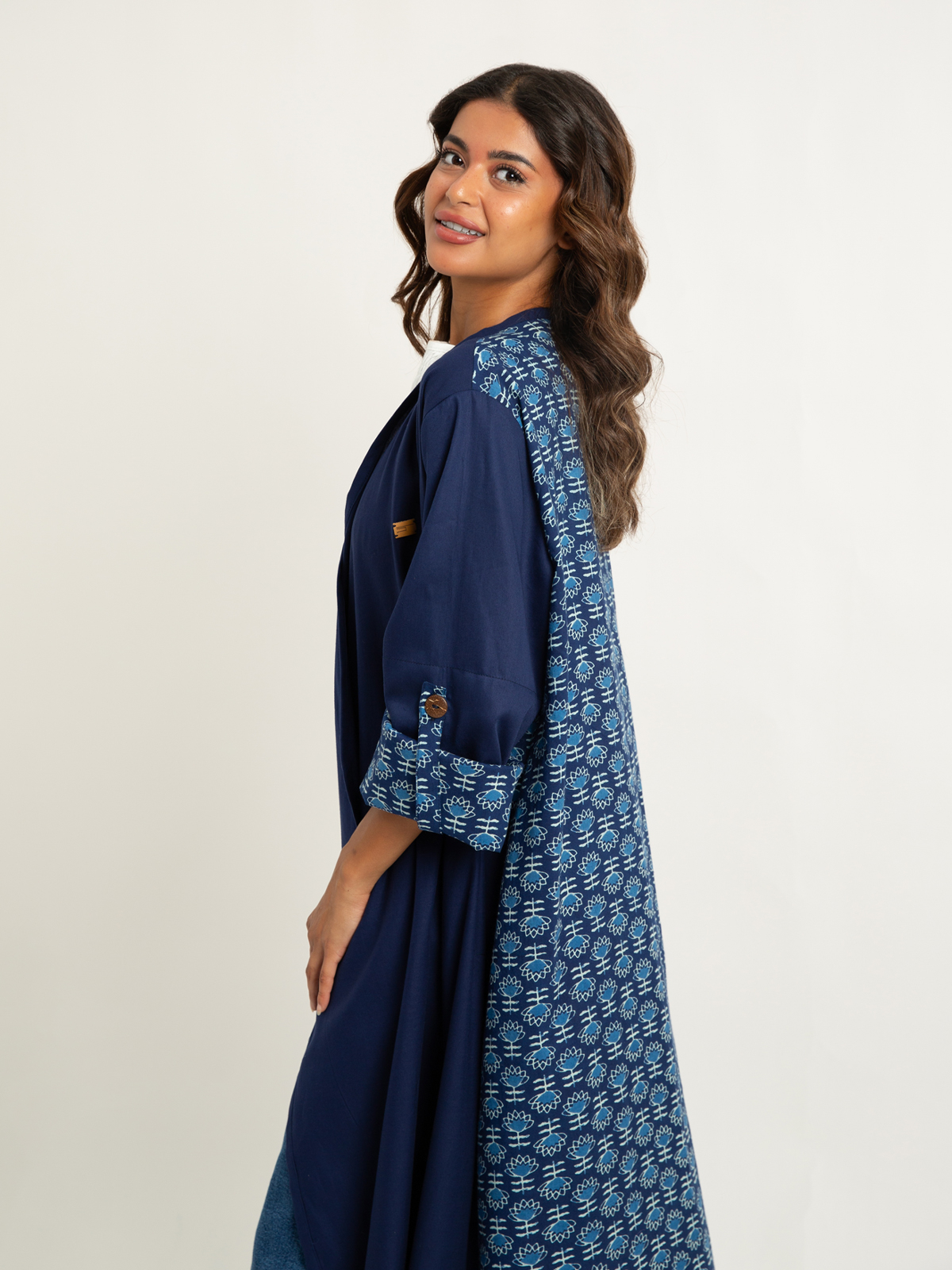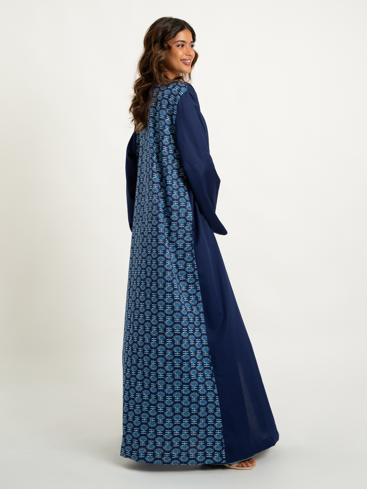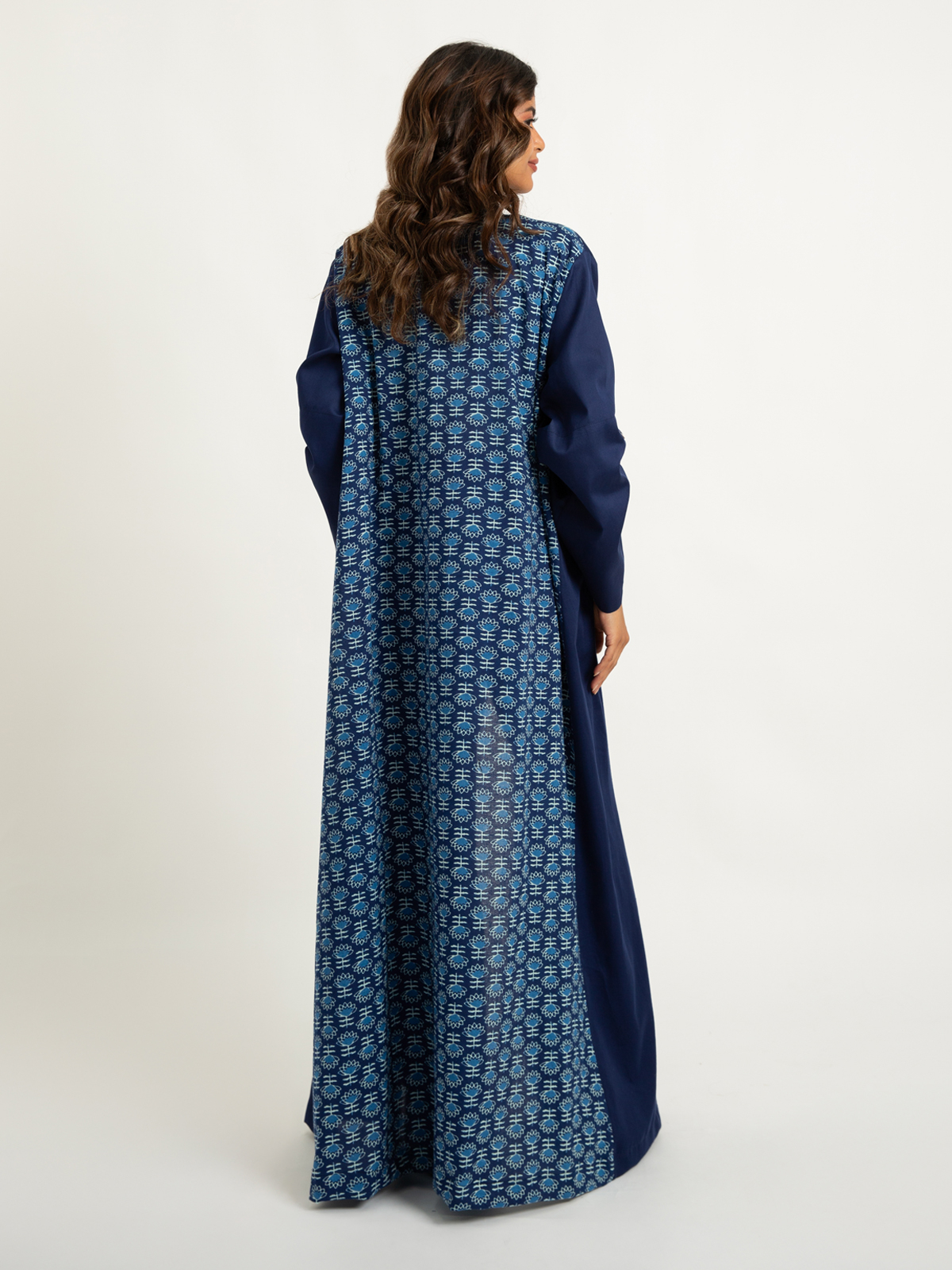 Reguler-fit Long Open Abaya in Printed Cotton Fabric