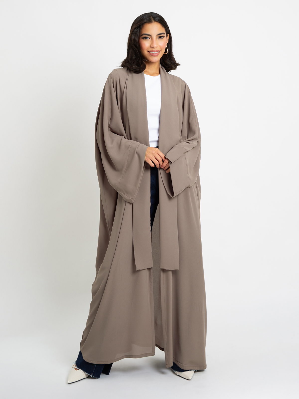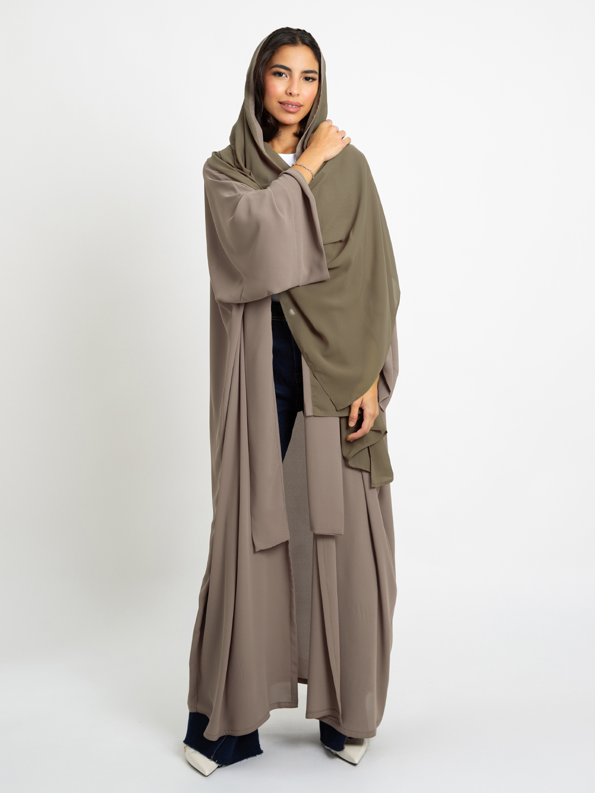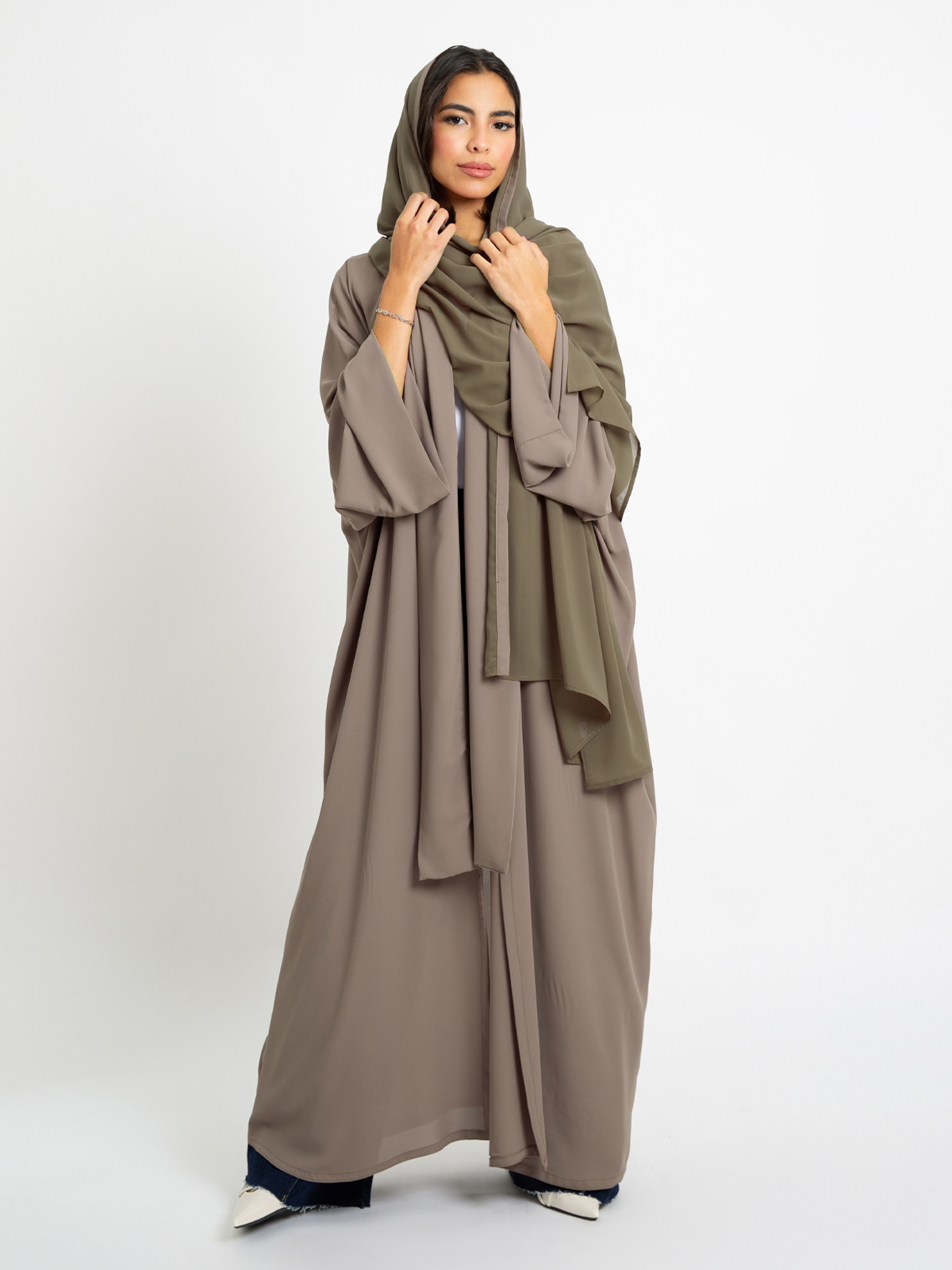 Plain Flowstyle Wide-Fit Long Open Abaya in Light Fabric