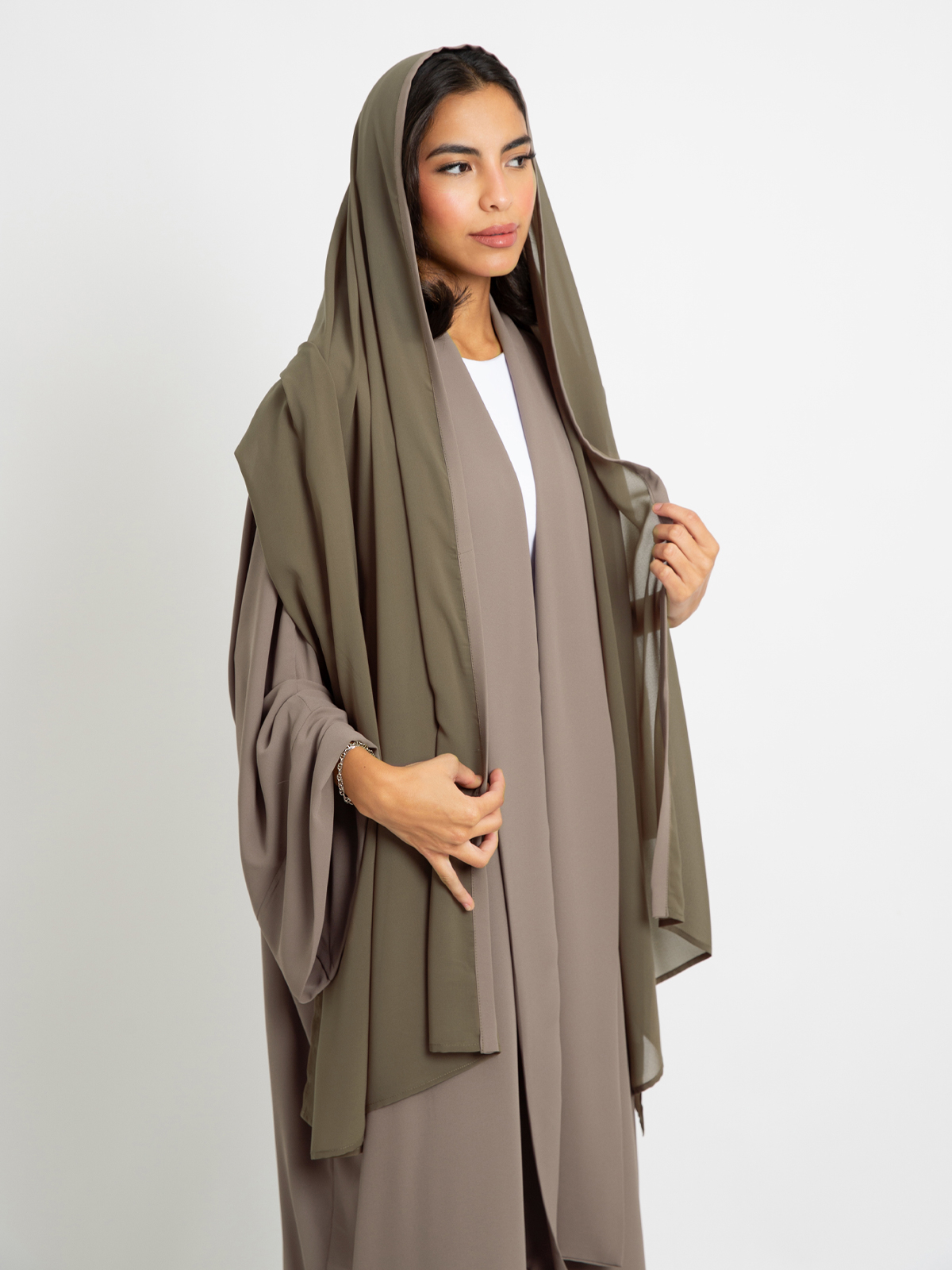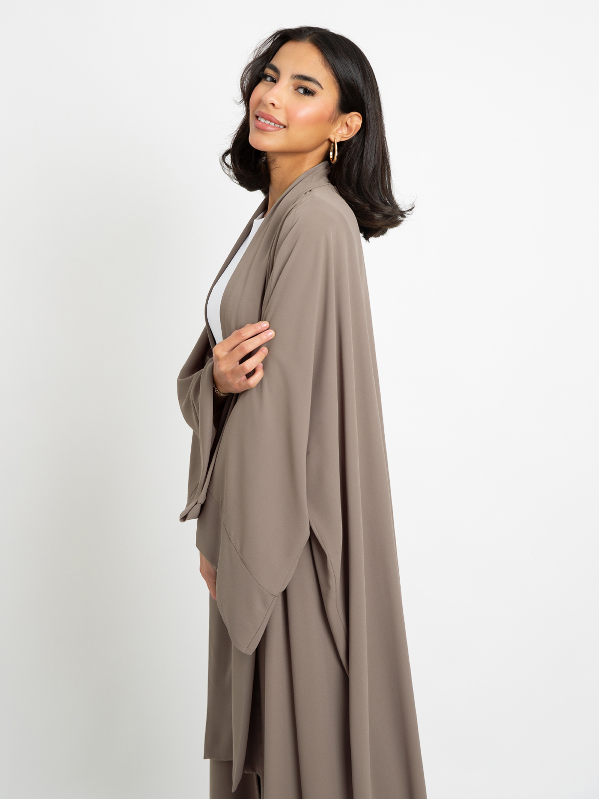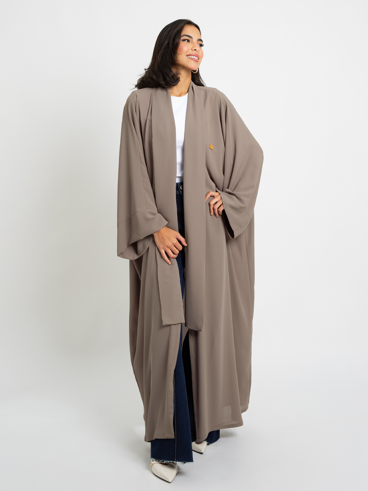 Plain Flowstyle Wide-Fit Long Open Abaya in Light Fabric