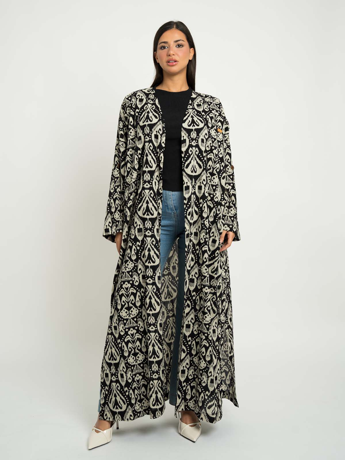 Abaya Color: Black & White Abaya with Prints.