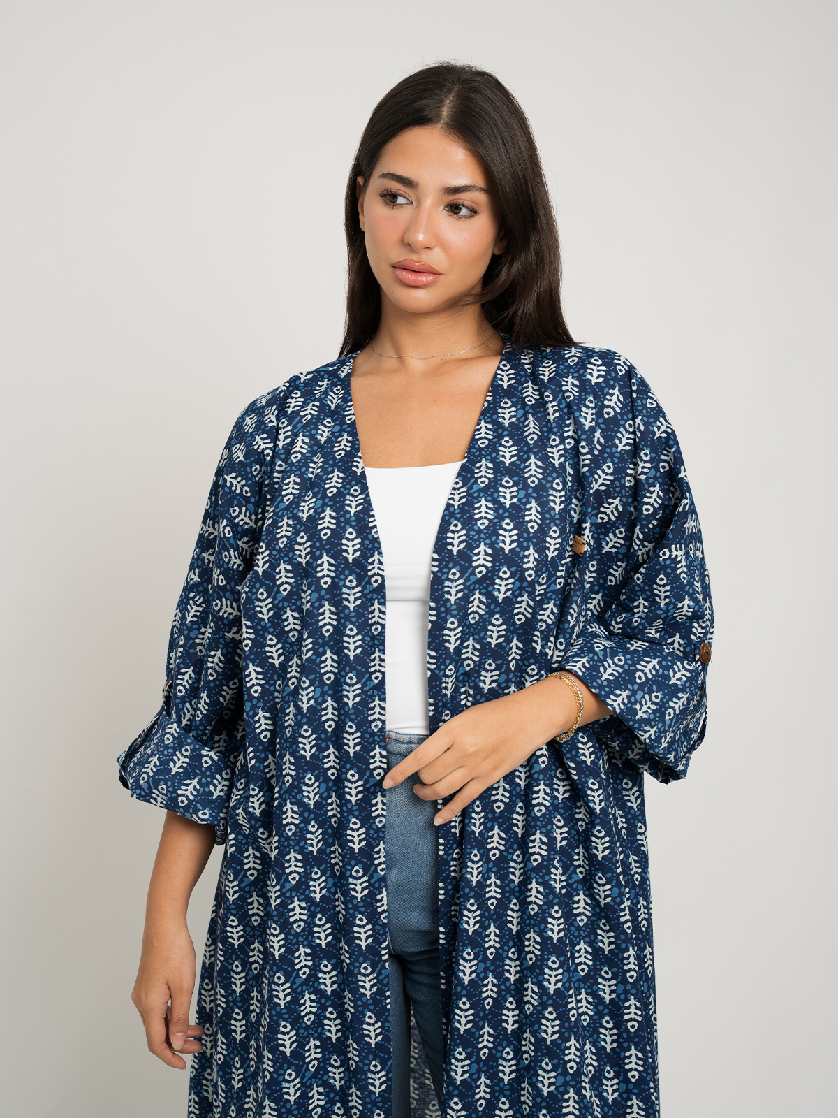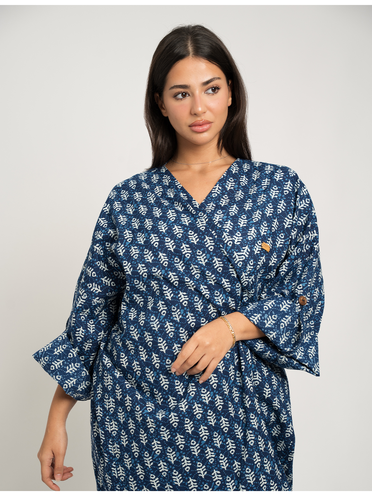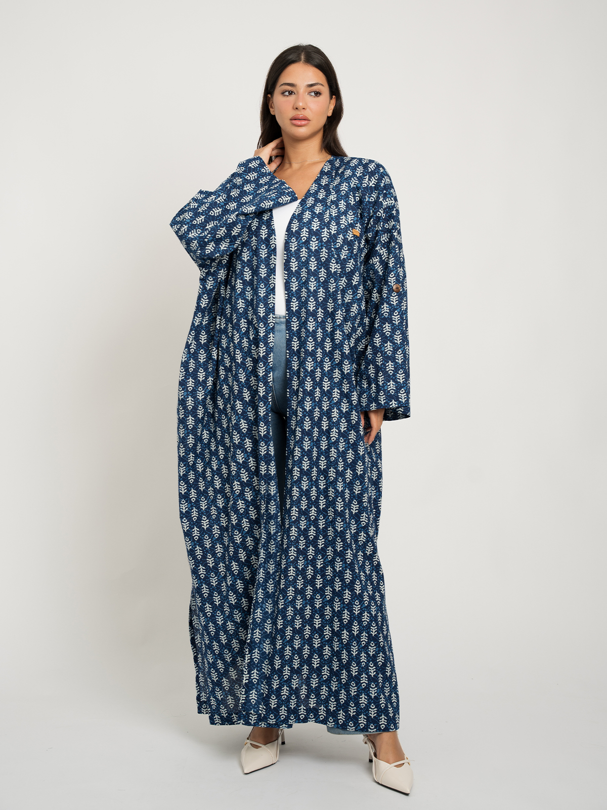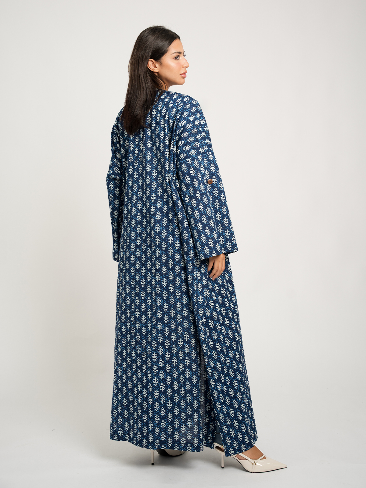 A breezy, bohemian abaya made of 100% natural cotton fabric, designed with comfort and attention to detail in mind.