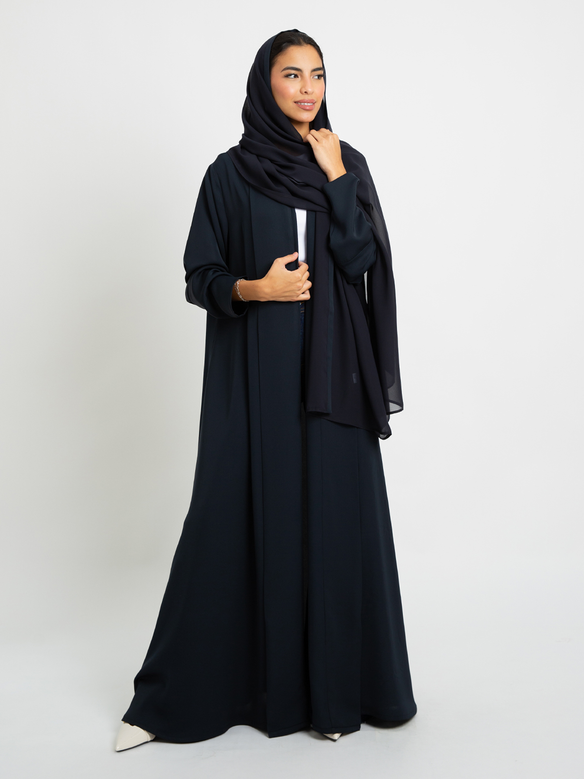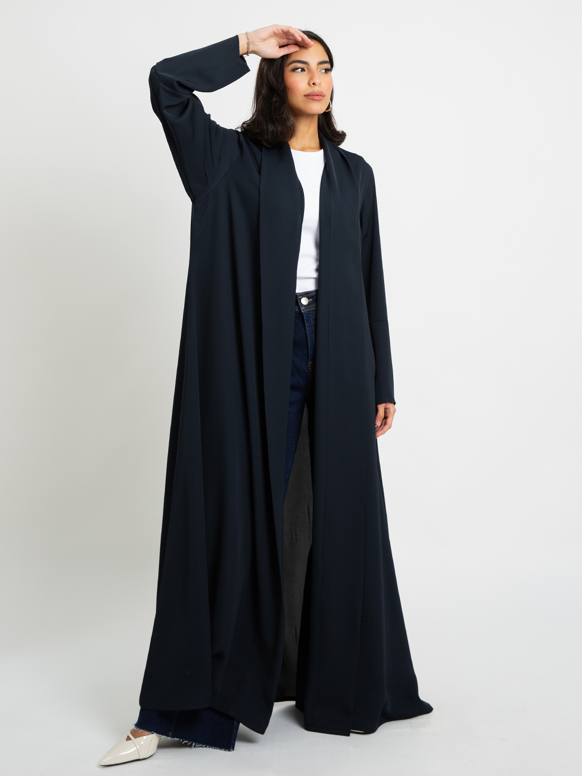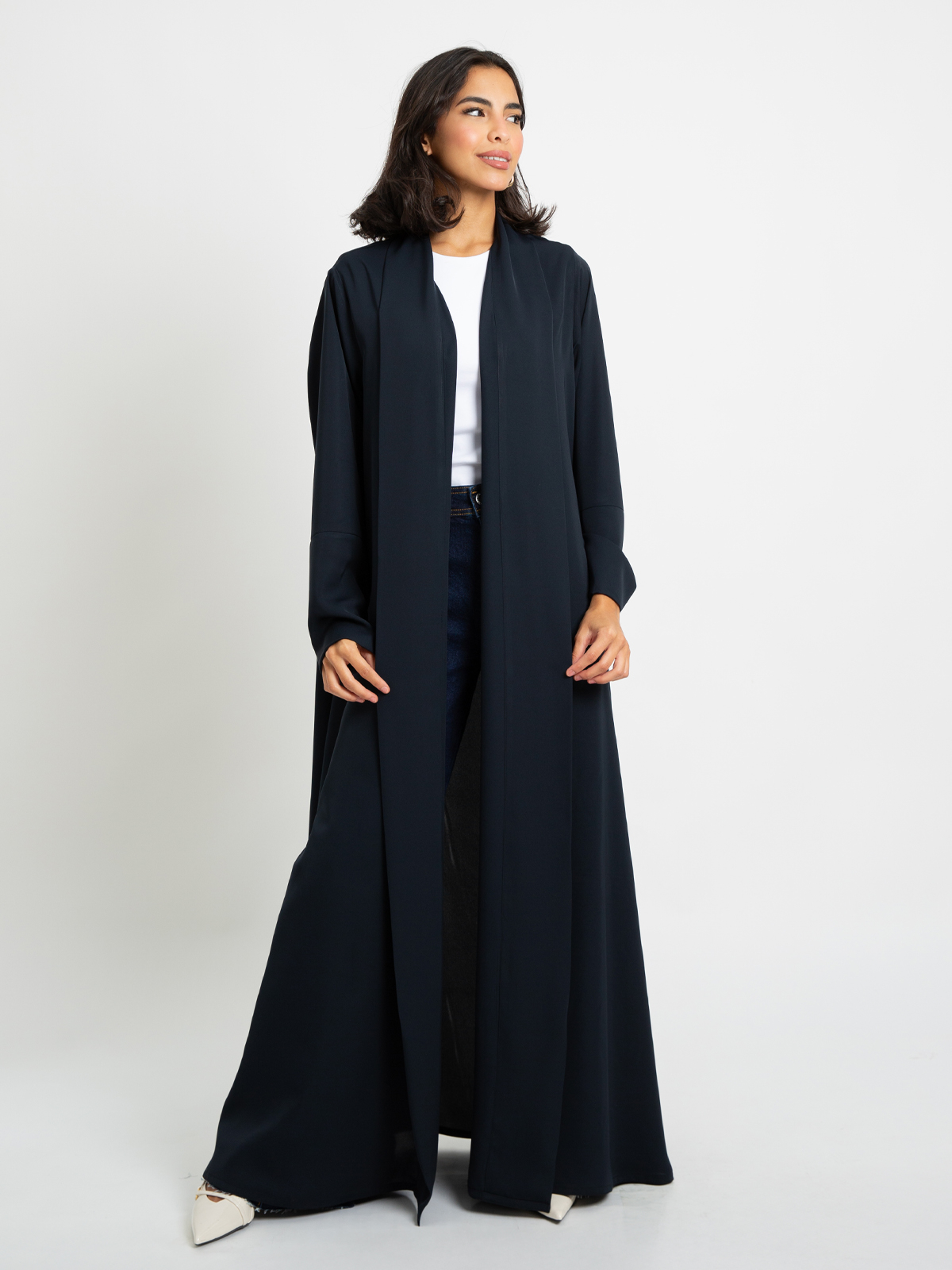 Plain Half Cloche A-Cut Long Open Abaya in Crepe Fabric